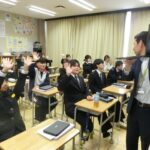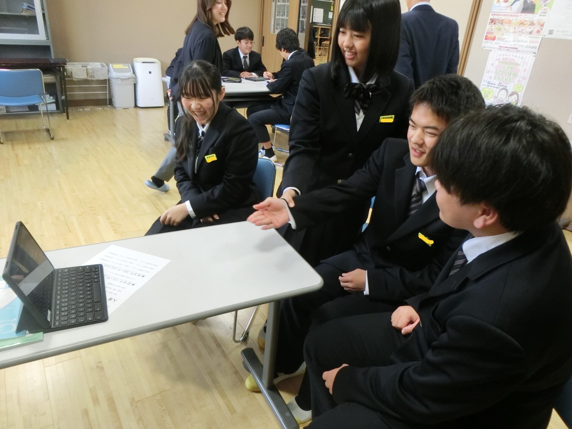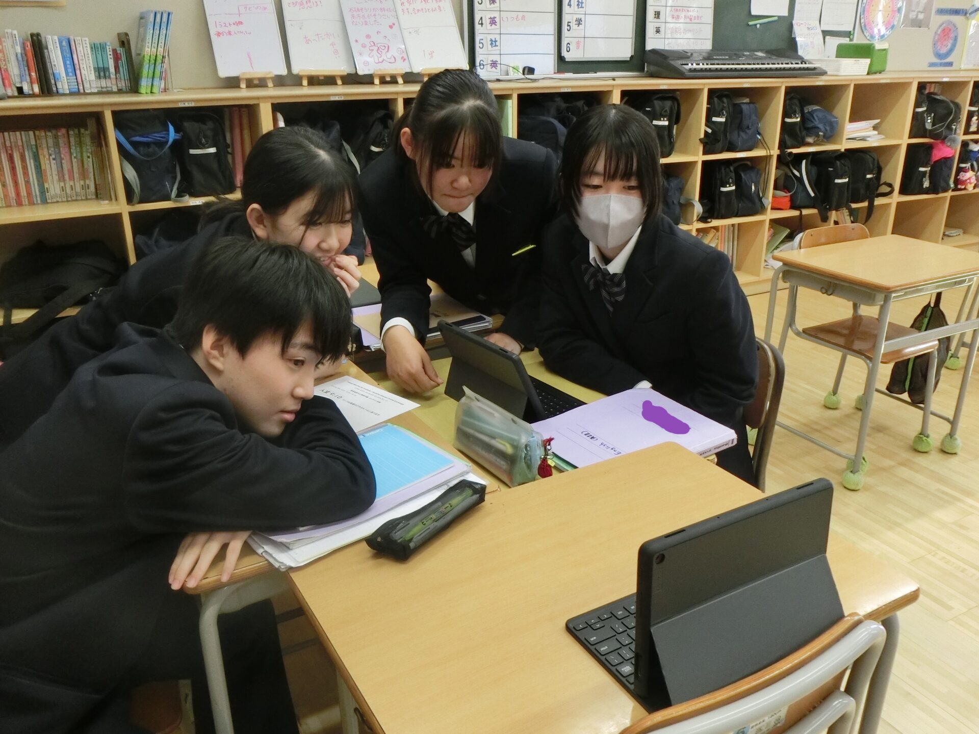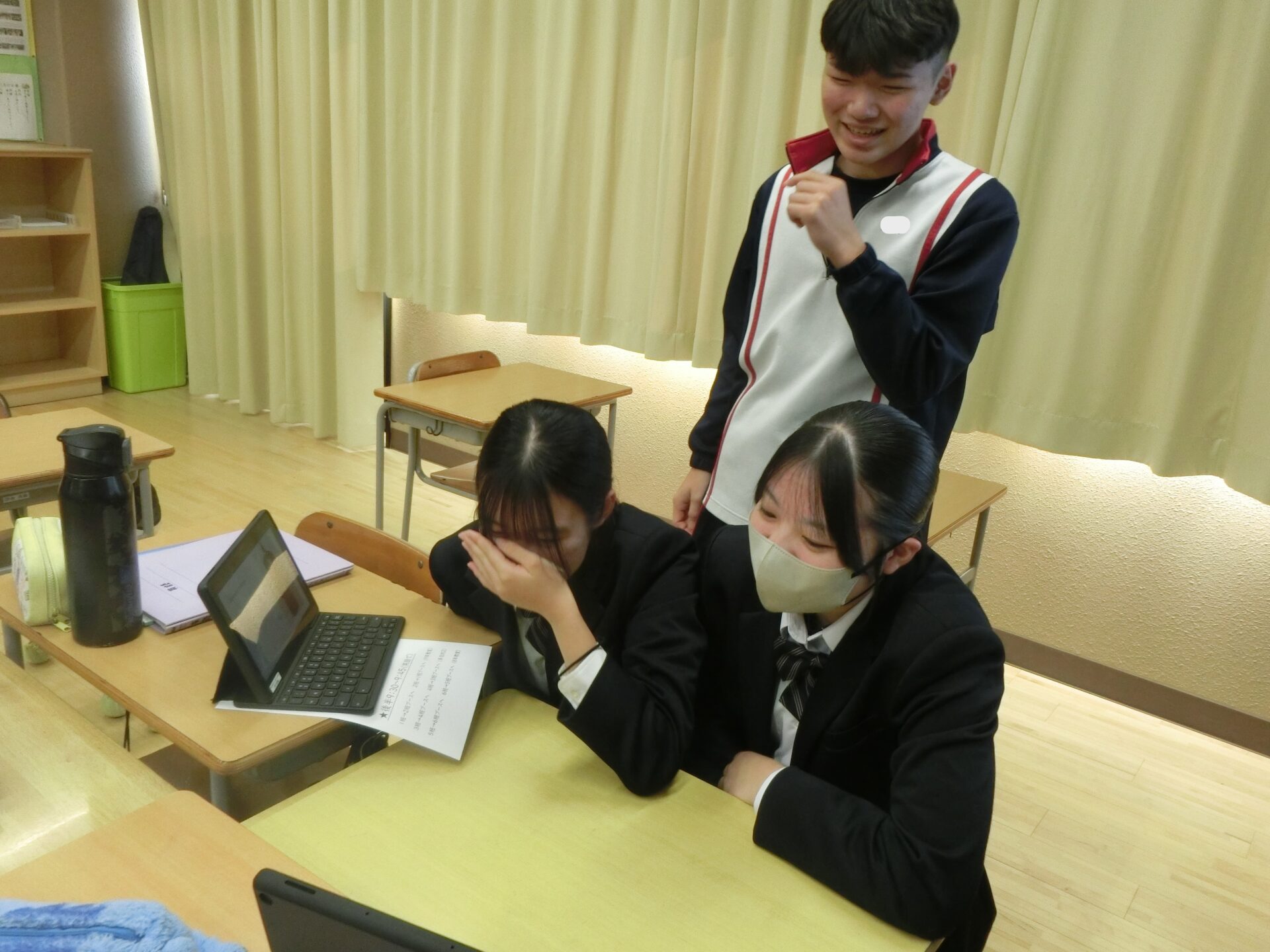 今日は英語の授業でハワイの学校とのオンライン交流会を行いました。以前、本校の様子を見に来られたハワイの学校の先生と現地の生徒とグループごとにリモートで自己紹介と文化紹介をしました。