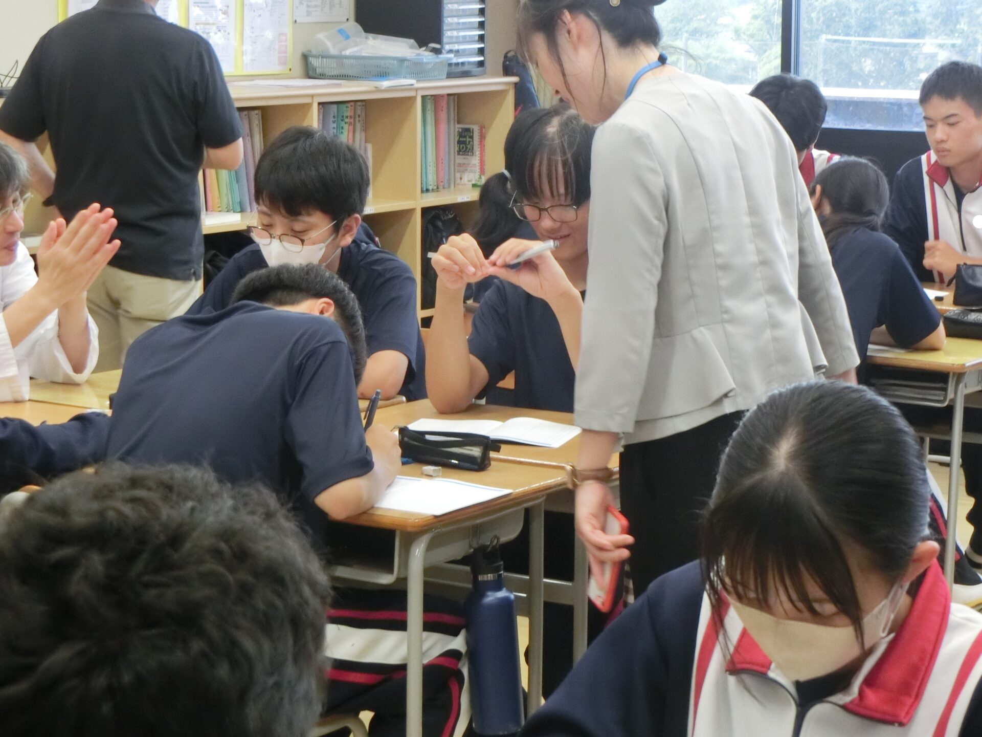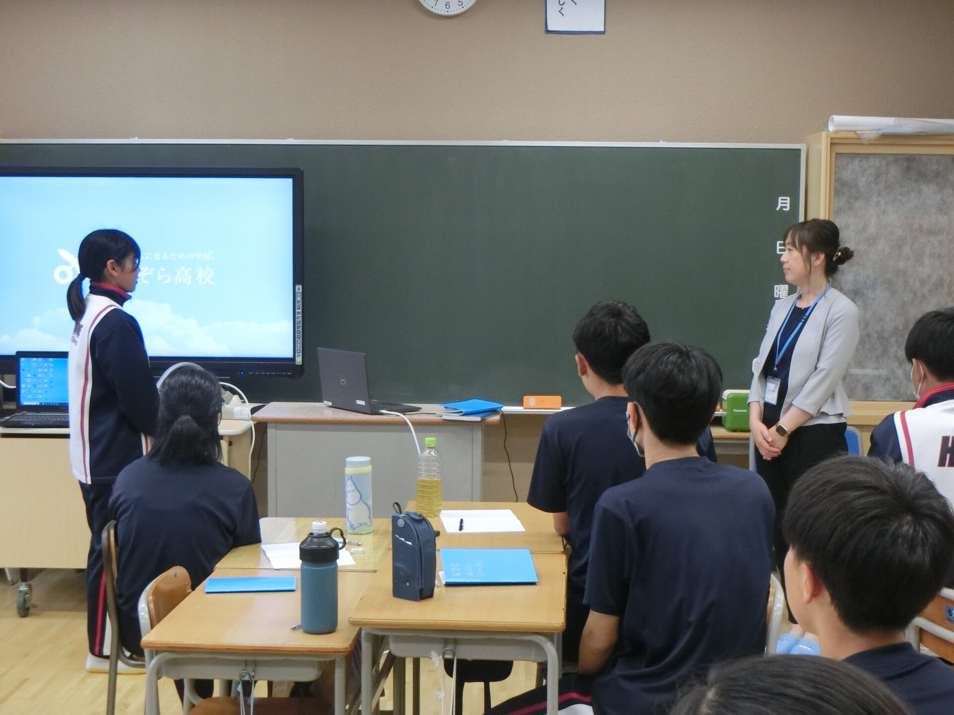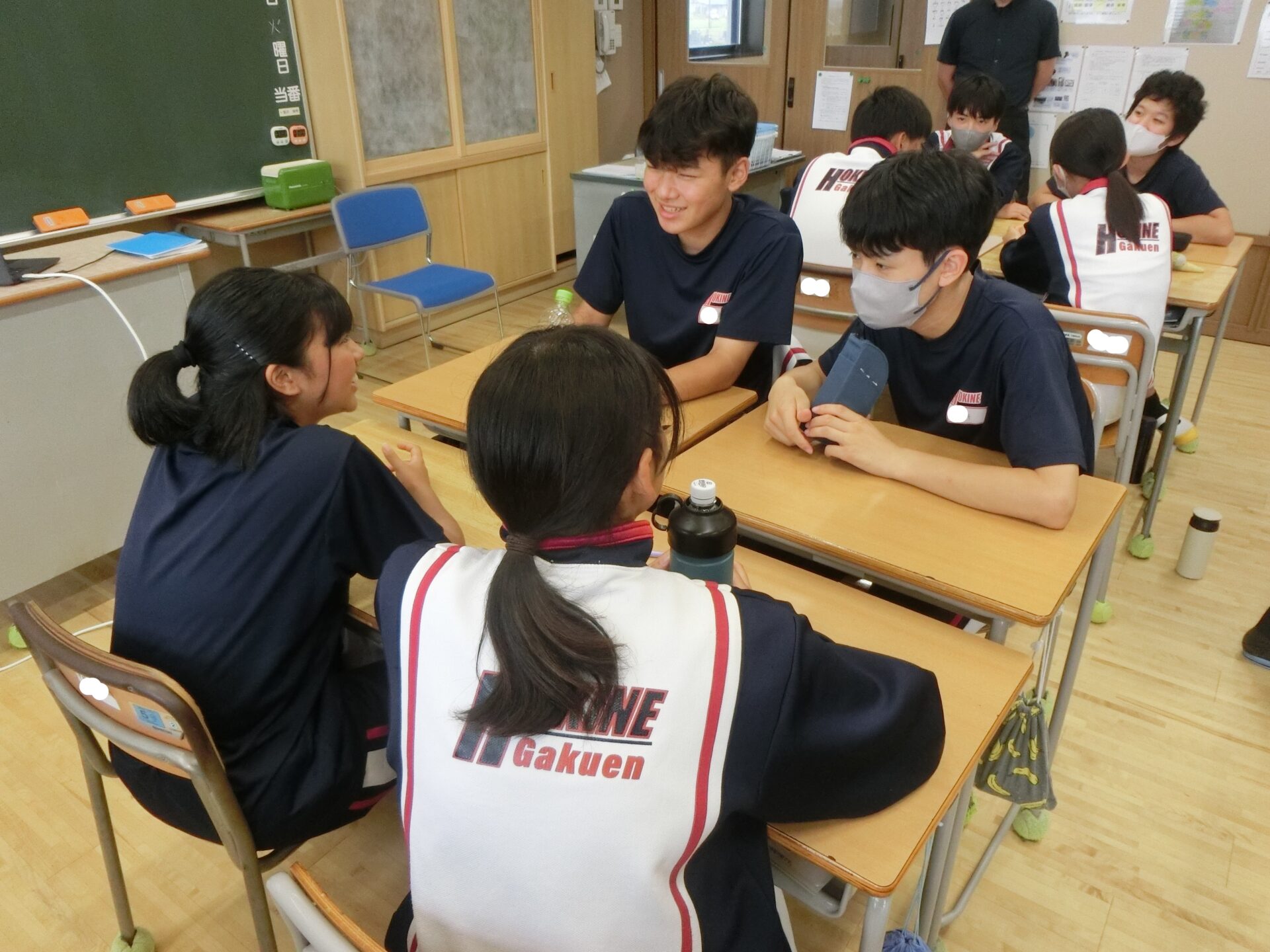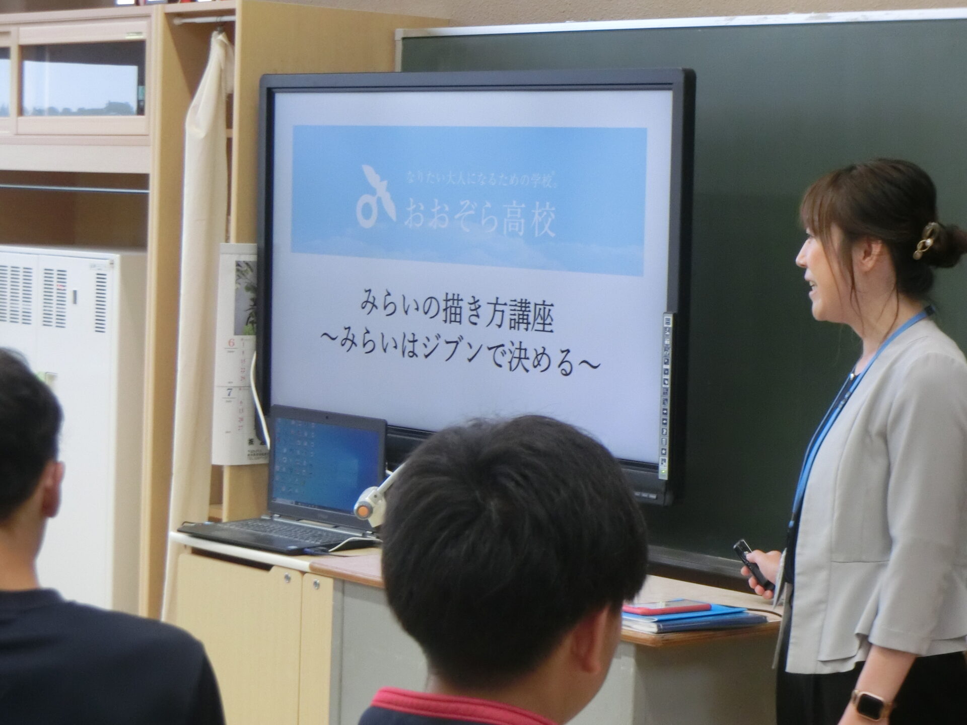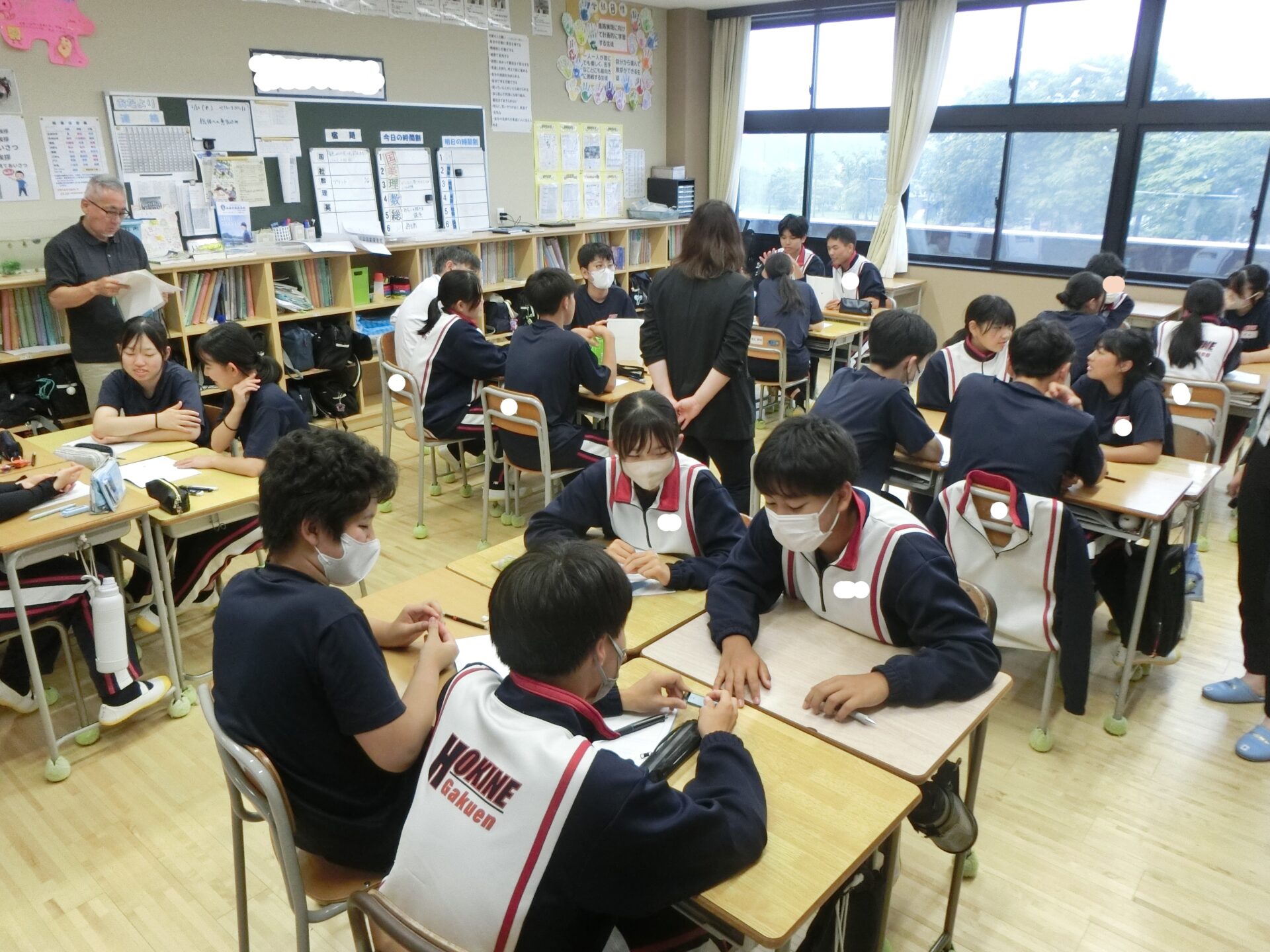 2025.06.26 9年生 今日の9年生☀ 管理者学校 壮行会の後の5校時、おおぞら高校の先生方による講話がありました。 テーマは、「なりたい大人」でした。激動の時代の中、10年後になくなる仕事や予測できない将来を想像しながら、ジブンたちがどう行きたいか、どんな大人になりたいかについて考えました。 講話の中では、「みらいノート」を活用しながら、グループで対話したり質問したりして、ジブンの考えを深めながら将来について考える良い機会となりました。 おおぞら高校の先生方、本日はお忙しい中ありがとうございました。 #9年生