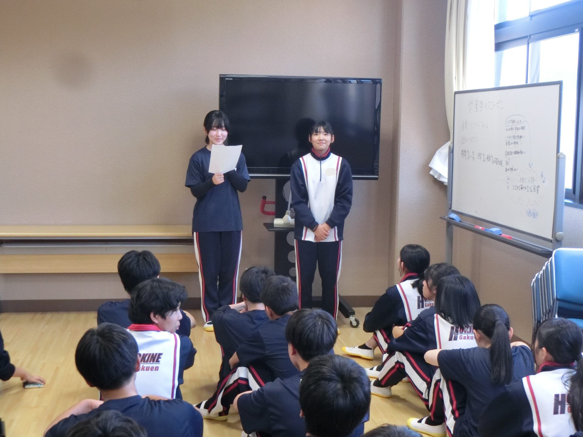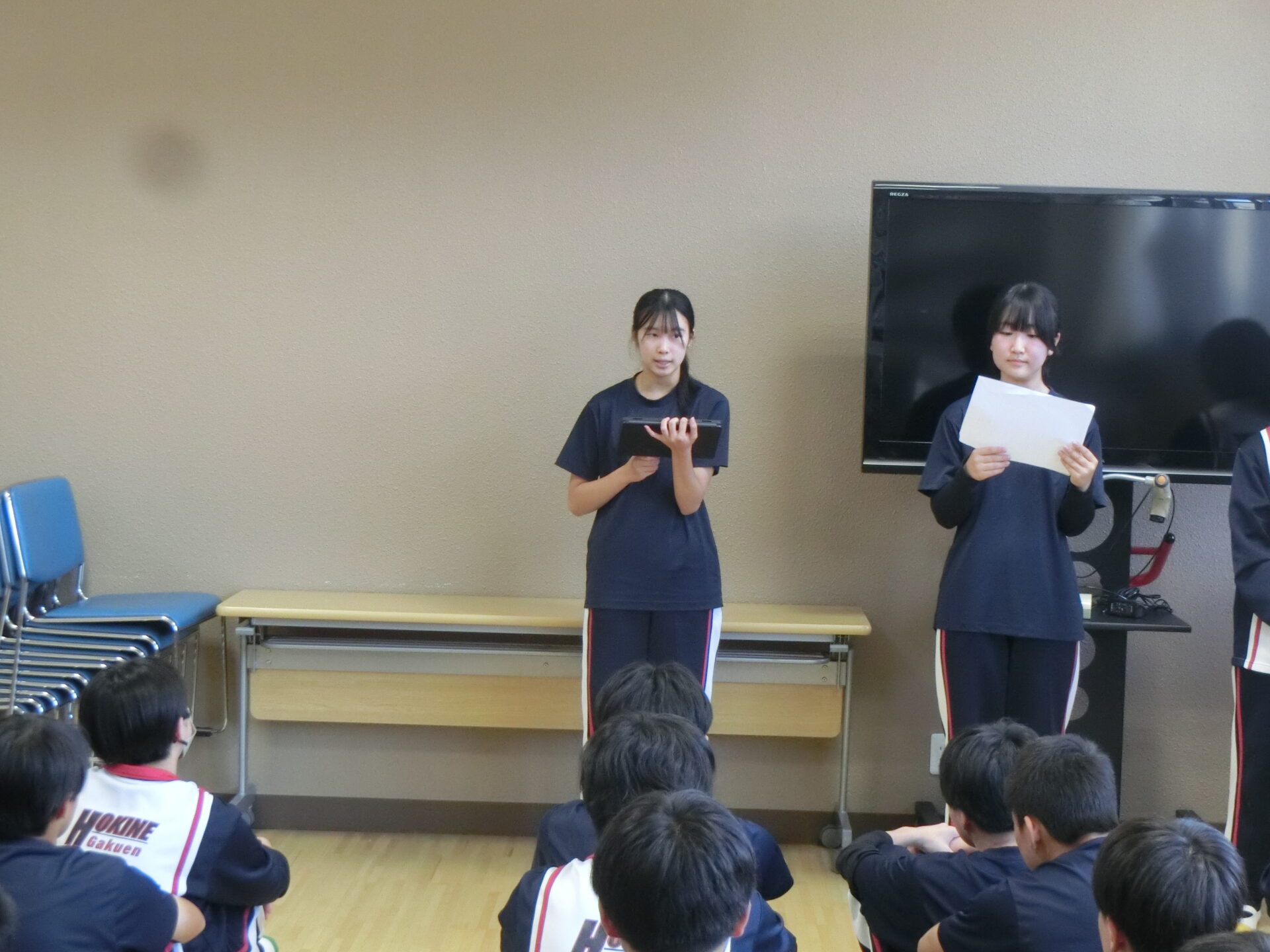 2025.10.02 9年生 今日の9年生♪ 管理者学校 今日は昼休みにブロック集会がありました。三期ブロックでは、新人戦の結果や今週末に大会を控える駅伝部、先日学校音楽祭を終えた合唱部の部長から、これまでの取組について発表がありました。 司会の2人です。 駅伝部です。 合唱部です。 学園祭のクラス合唱に向けて練習も進んでいます。 昨年度の「ハナミズキ」をさらに超え、感動を与えられる合唱にしてほしいと思います! #9年生