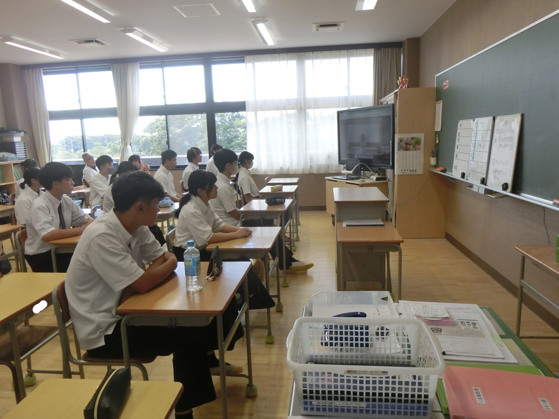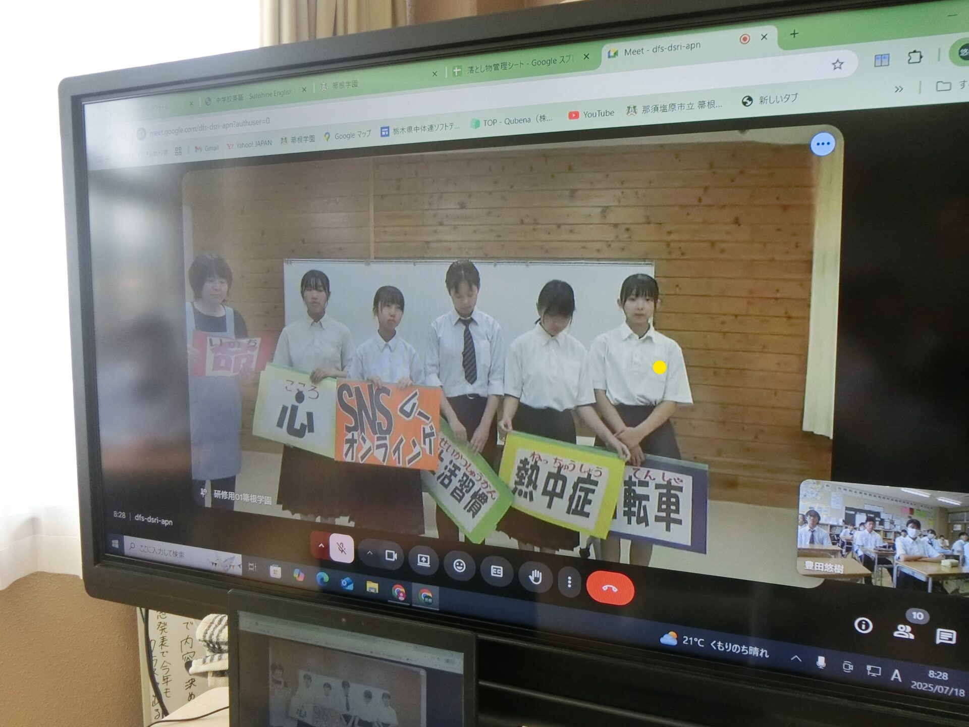 今朝、オンラインで夏休み前全校集会が行われました。