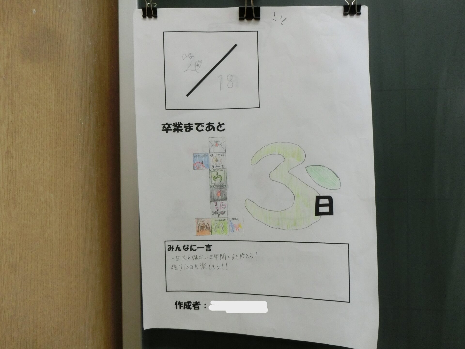 卒業に向けてカレンダーのカウントダウンも進んでいます。