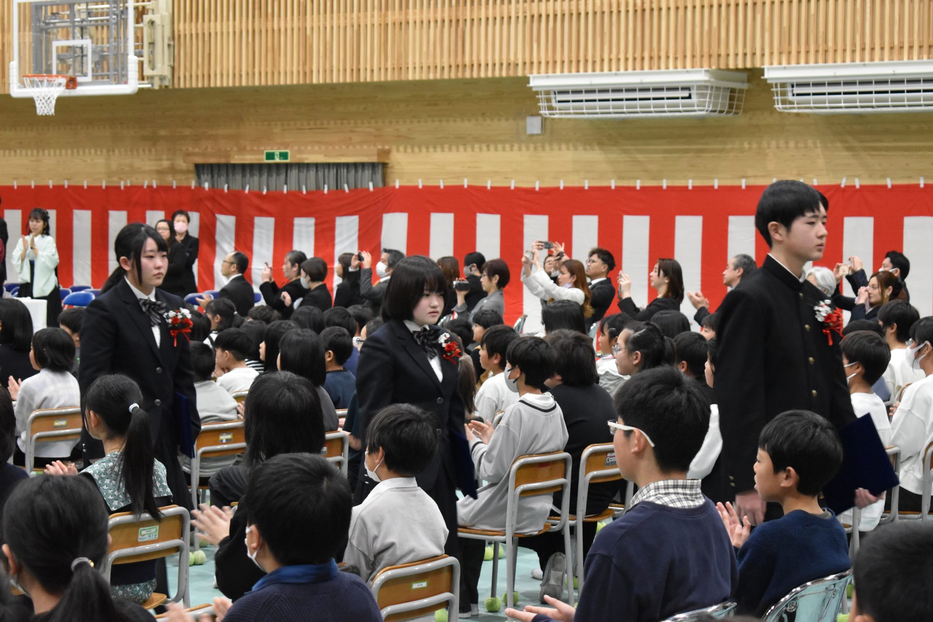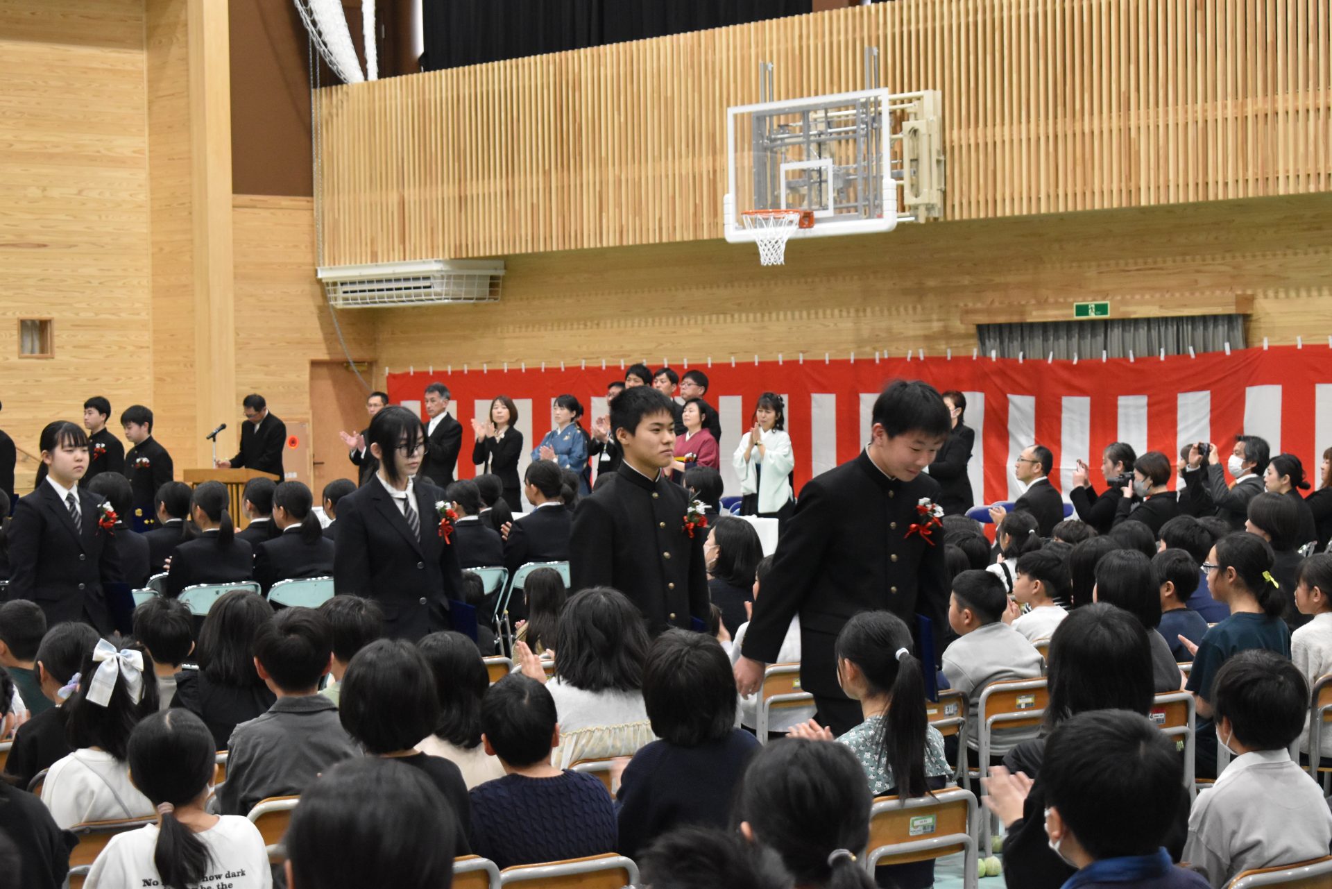 2025.03.11 9年生 卒業の日① 管理者学校 26名の9年生は、とうとう卒業の日を迎えました。 朝、胸章を付け合いました。 感動的な答辞でしたね。 保護者の皆様から黒板アートのプレゼントもありました。 ありがとうございました。 卒業の日②に続きます! #9年生