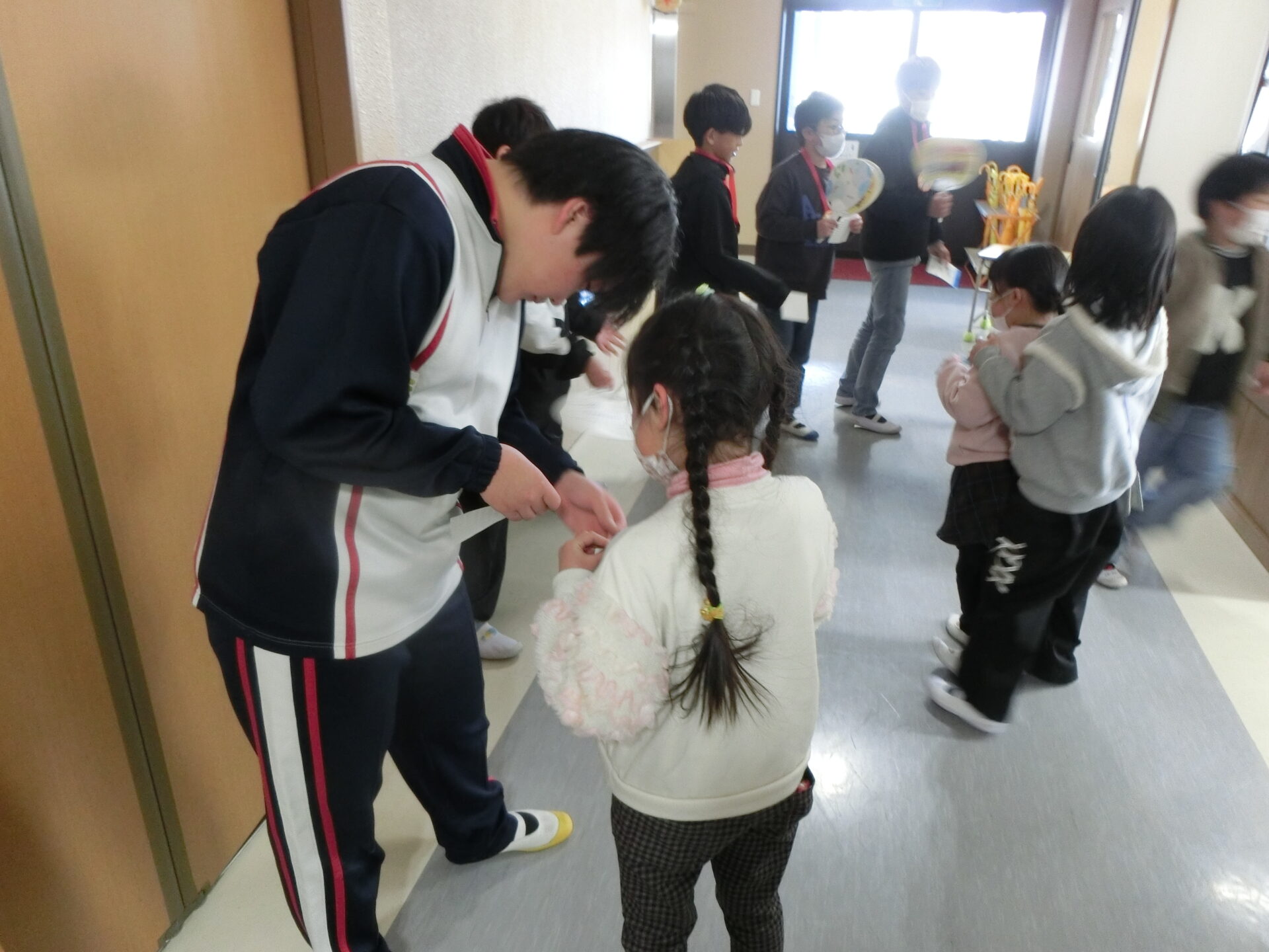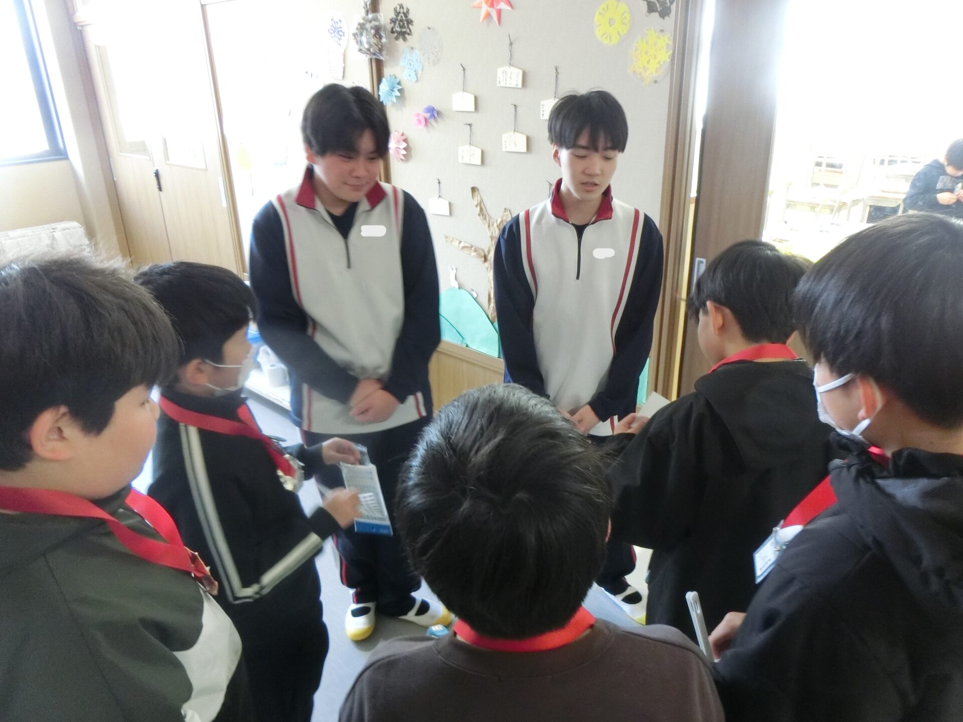 昼休みは、生活委員があいさつ運動を行っていました。