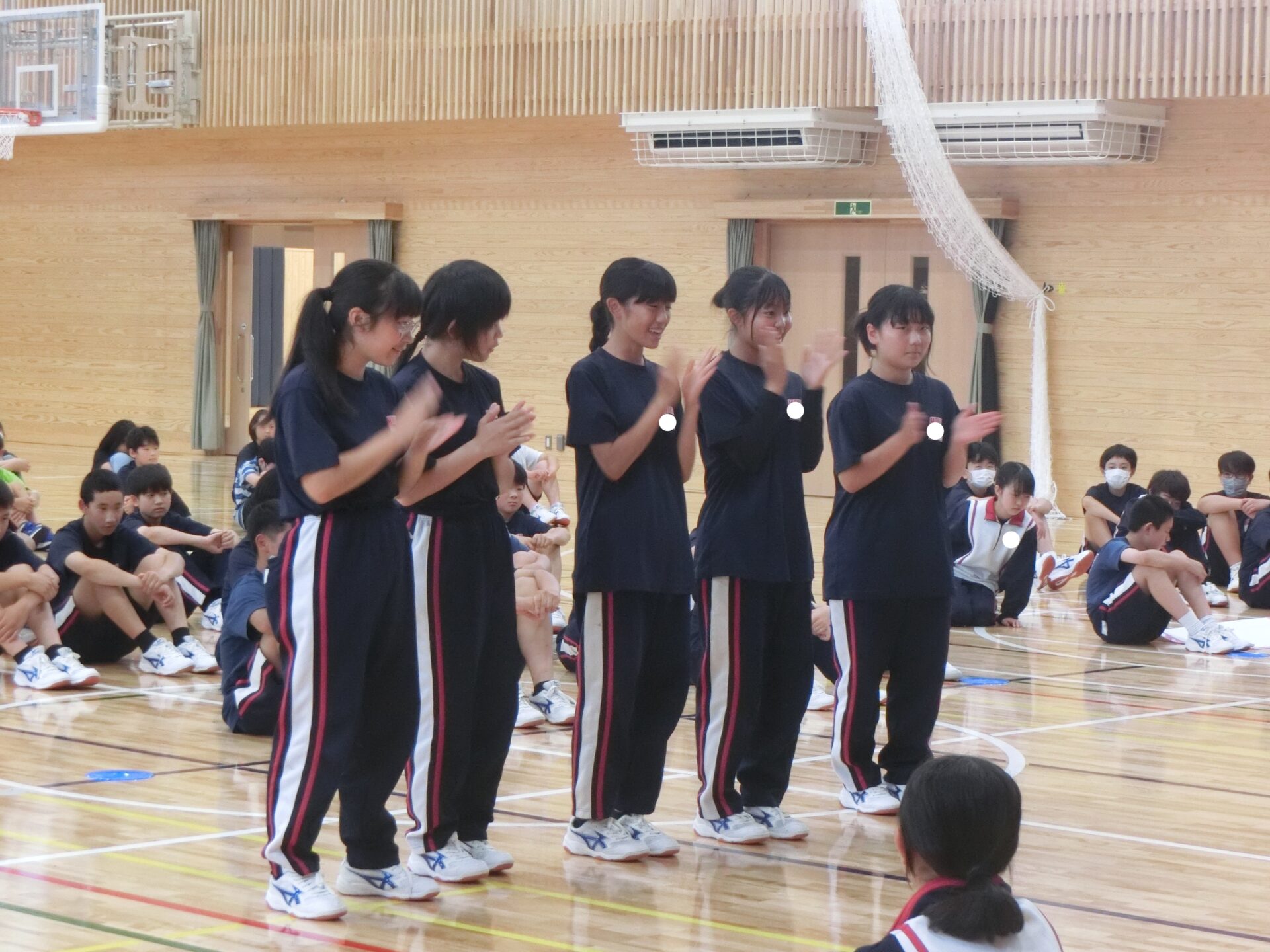 今日は昼休みに、明日から始まる総合体育大会の壮行会が行われました。壮行会に向けて、これまで下級生が時間がない中、9年生のために準備を進めてくれました。
