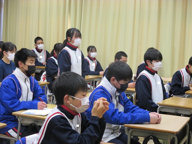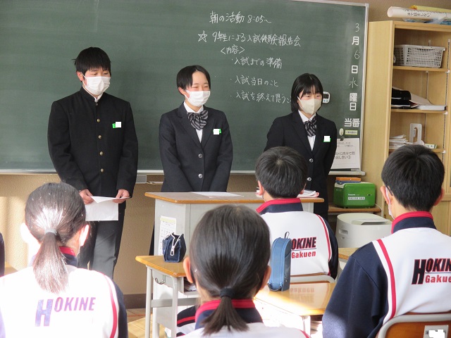 いよいよ卒業式まであと2日となりました。朝の時間に後期課程は9年生が7、8年生の教室で受験の体験報告会を行いました。身近な先輩の実体験は後輩達にも大きな学びになったようです。息をつくことも忘れたように全員が先輩の言葉に集中して耳を傾けていました。