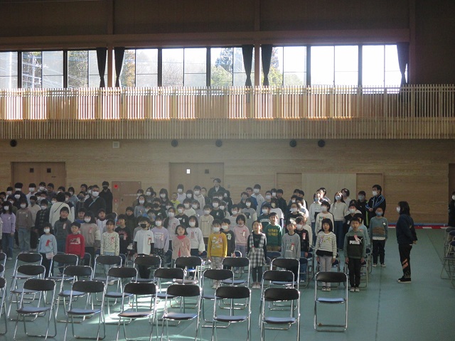 体育館では前期課程の子供たちが卒業式の練習をしました。今年は卒業式や修了式で4年生と6年生の子供たちが国歌斉唱のピアノ伴奏をします。