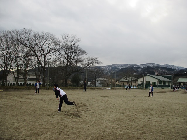 放課後は前・後期の野球部とソフト部が同じ学園のグランドで一緒に練習をしました。旧箒根中へ移動しての部活動は子供たちにとっても負担が大きく、本校の校庭で共存できないかと模索が続いています。その手始めとして初めて一緒に活動してみました。課題はいくつもありますが、和やかな雰囲気で練習することができました。
