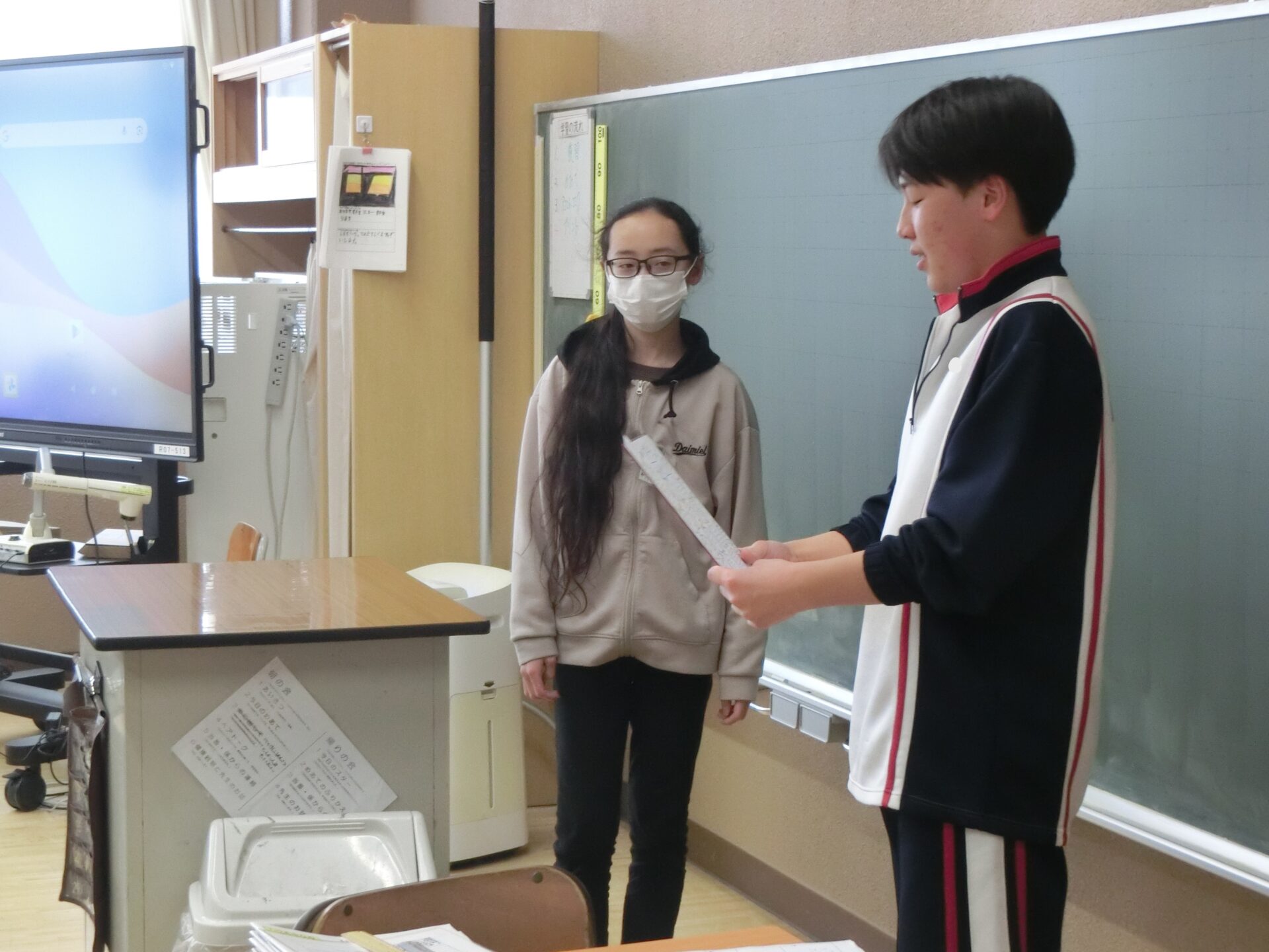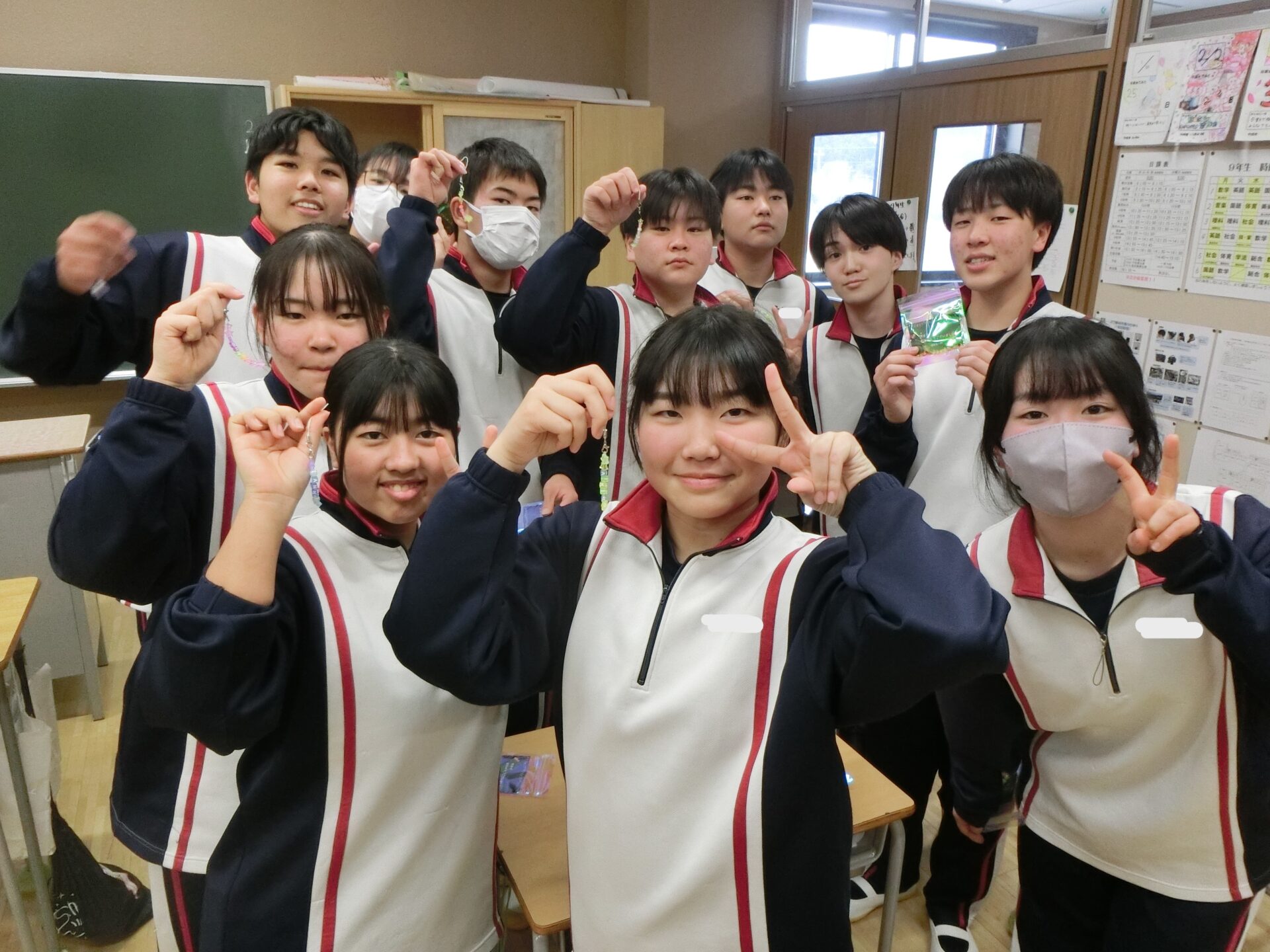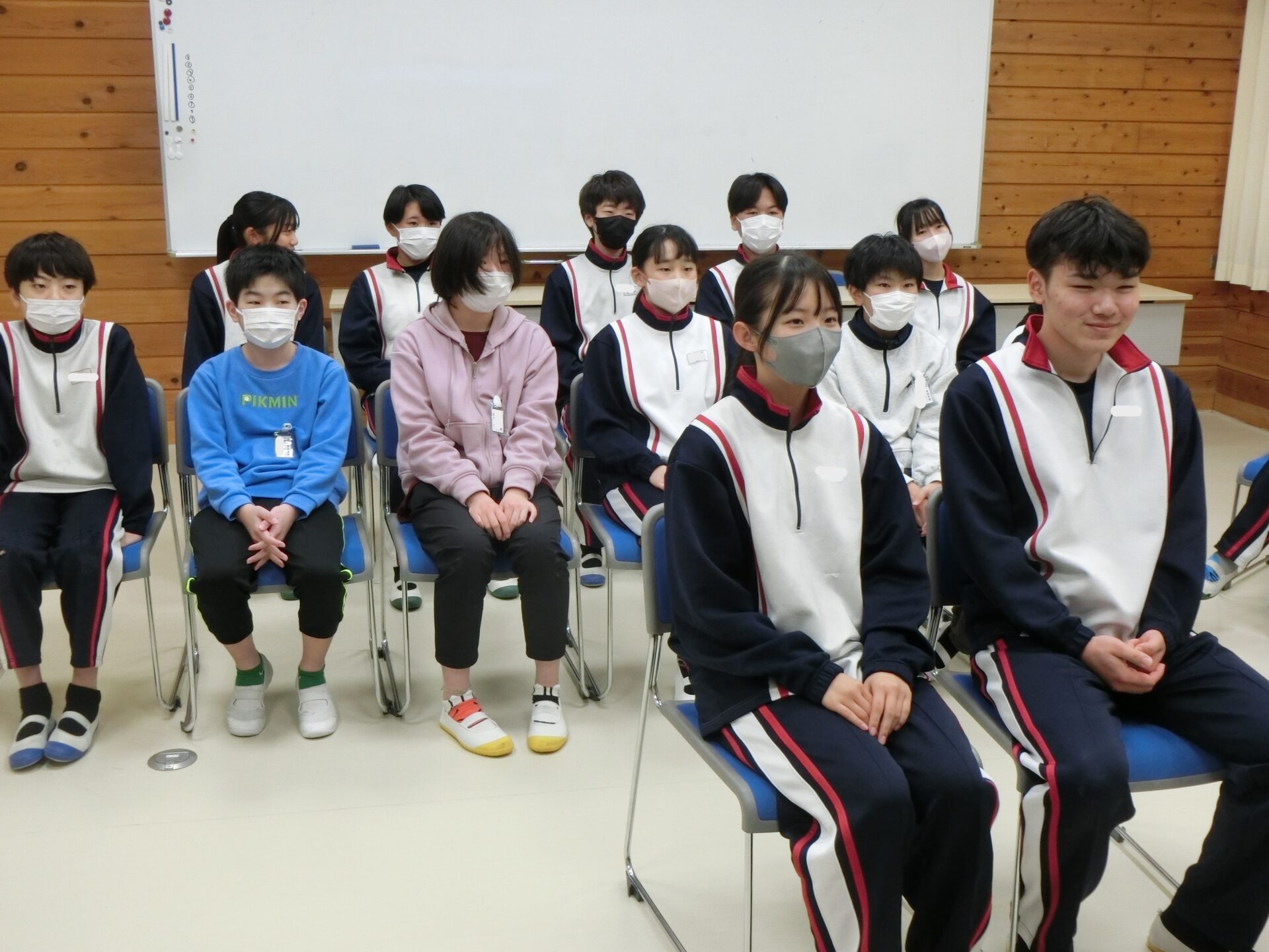 8年生の実行委員を中心に送る会が進められ、9年生の教室では笑い合っていました。また、後輩が9年生への呼びかけを一生懸命に発表する姿に真剣に耳を傾けていました。