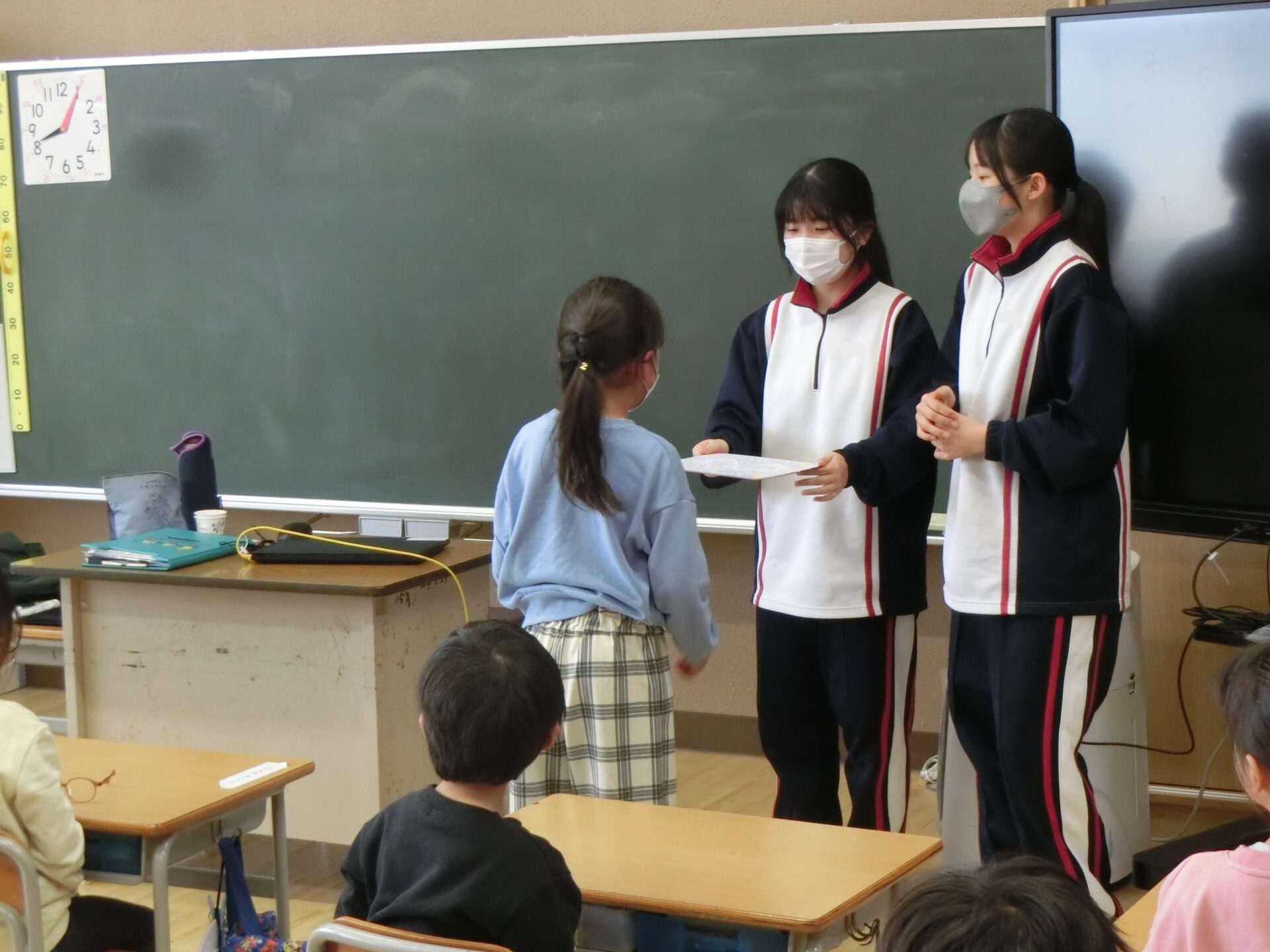 お礼に9年生からは、各学年に色紙をプレゼントしました。