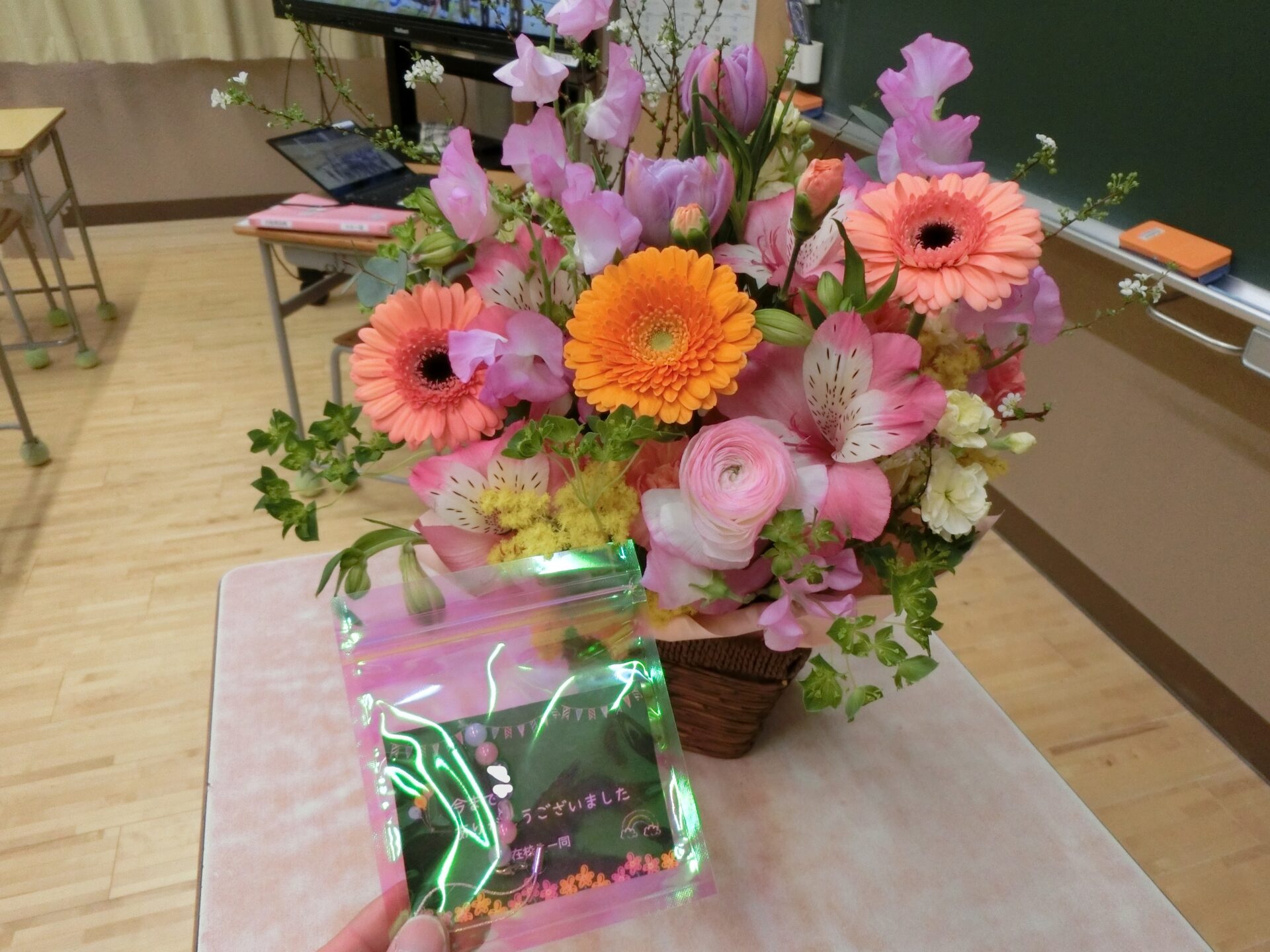 ステキなお花と9年生一人一人にプレゼントをもらいました!