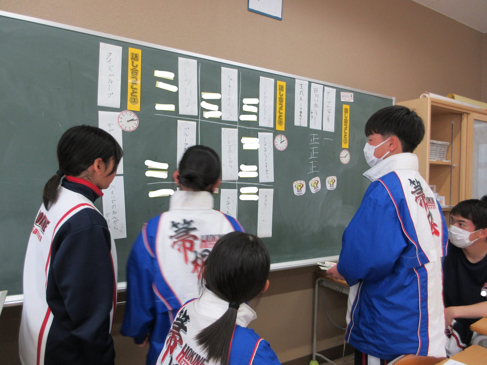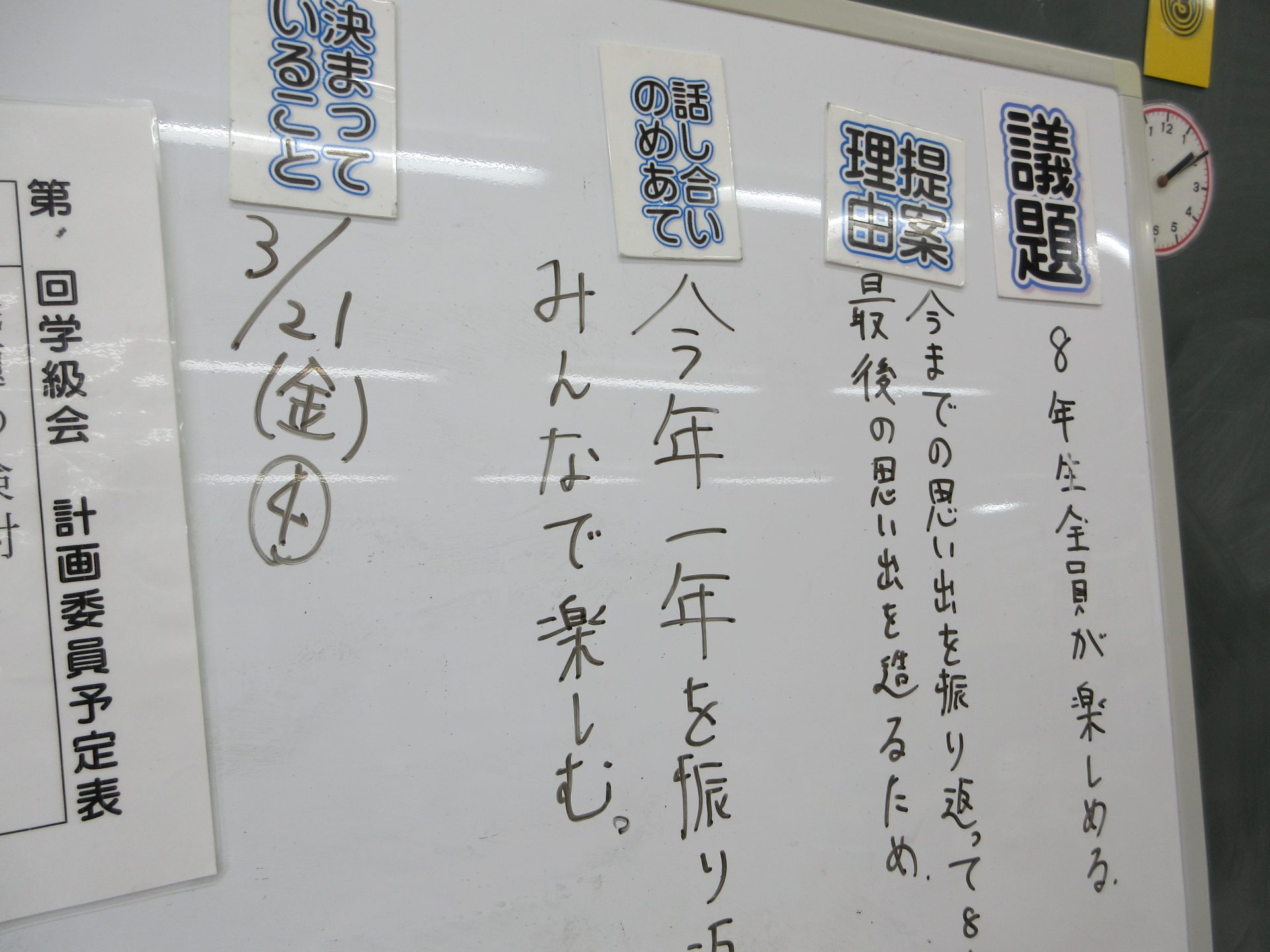 2025.03.12 8年生 今日から最高学年 管理者学校 9年生が卒業し、今日から最高学年となった8年生です。 技術の時間に8年生が育てたキャベツは、とても甘くて美味しくなりました。 昼休みから計画委員の生徒たちは話合いの準備をしました。 今日の学級会では、学級解散会で何をするかを話し合いました。 楽しむための工夫や、役割分担もできました。 計画委員も頑張ってくれました。 楽しい学級解散会になると良いですね。 #8年生