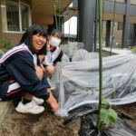 昼休みには、技術の授業で育てている野菜の世話をしている生徒がいました。