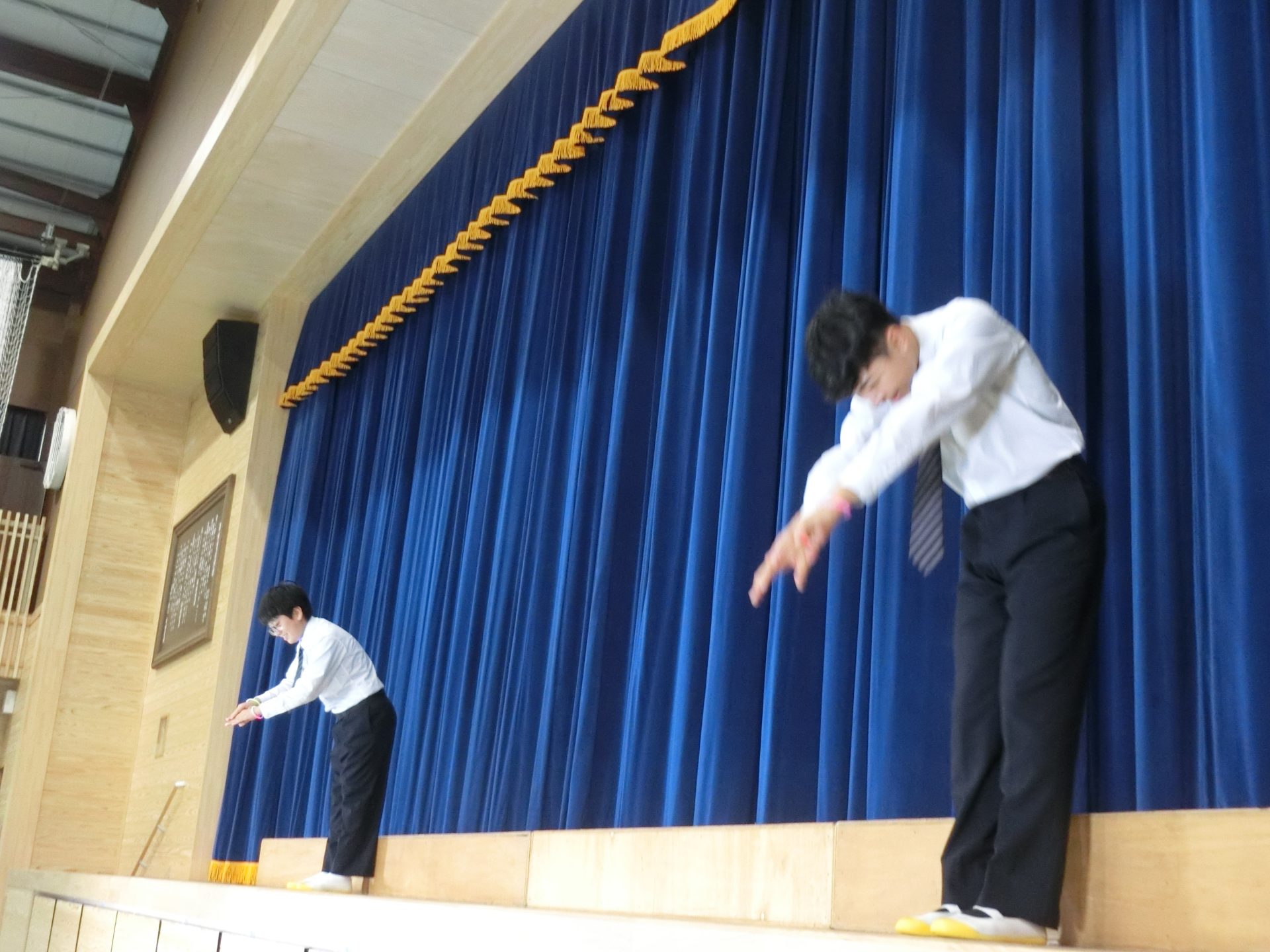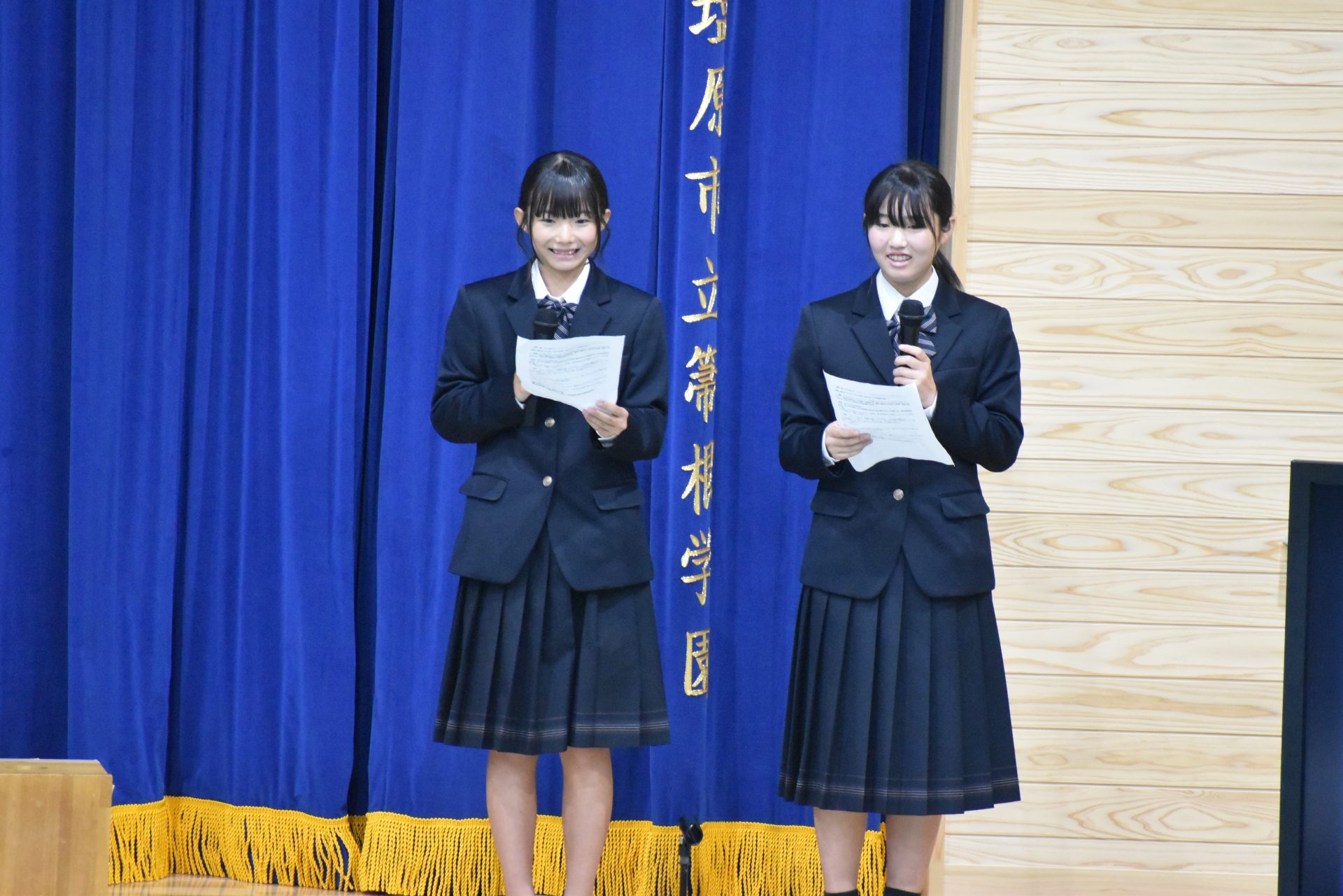 続いて、生徒意見発表の様子です。HくんとHさんは英語スピーチを披露しました。