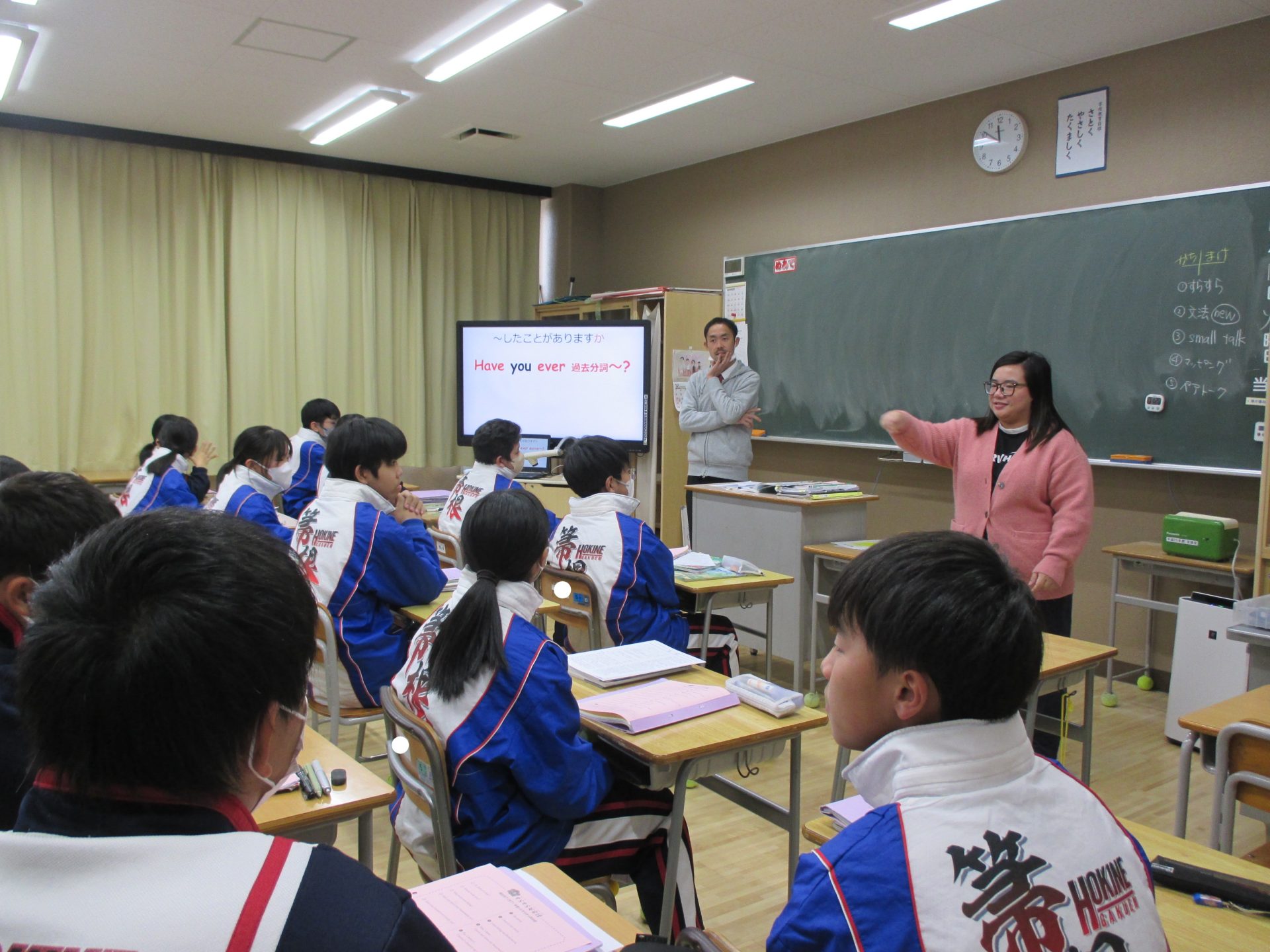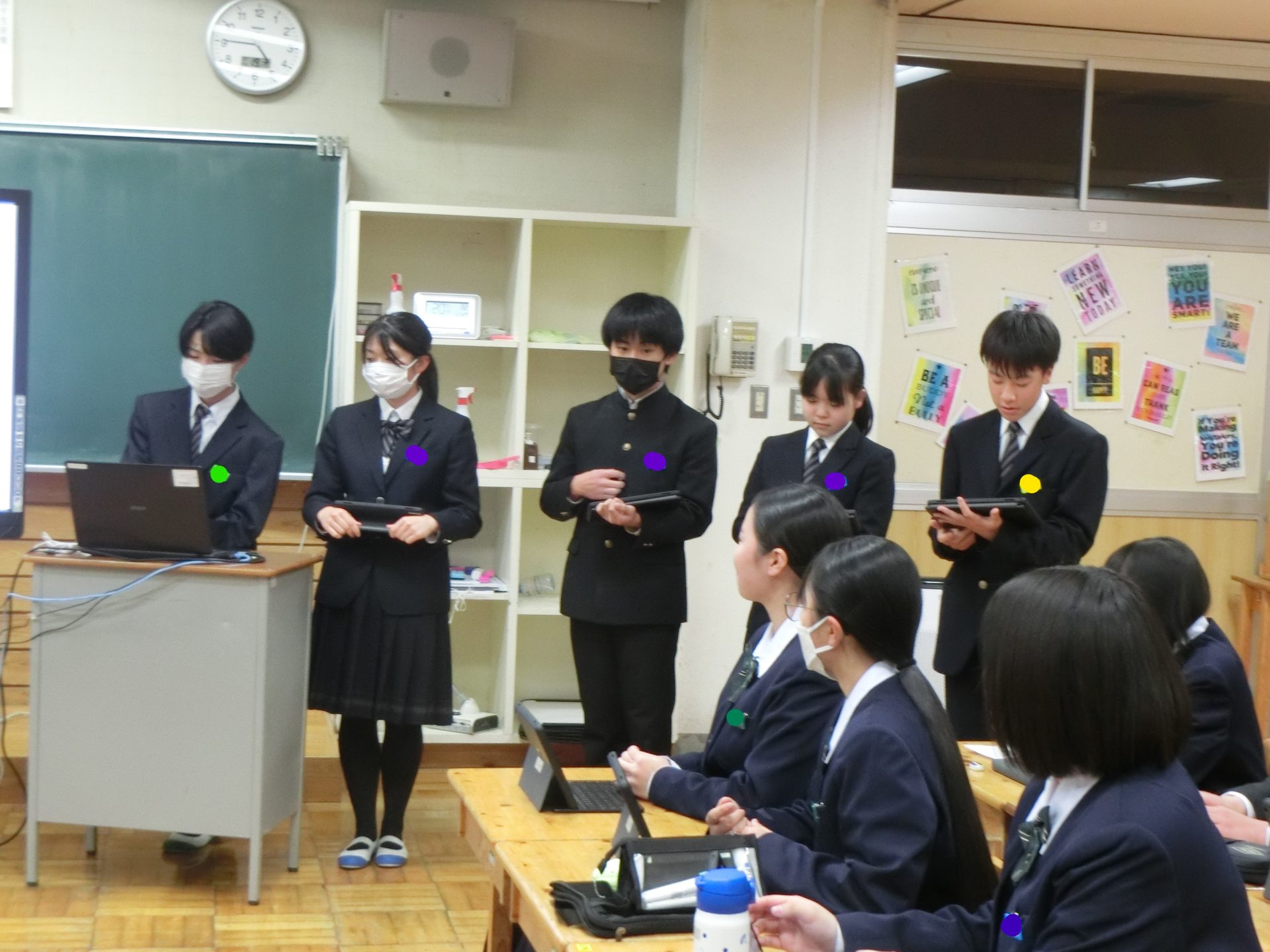 英語の授業では、市内のALTにおすすめのマンガを紹介するために、ペアで自分の考えや思いを一生懸命に英語で伝えることができました。