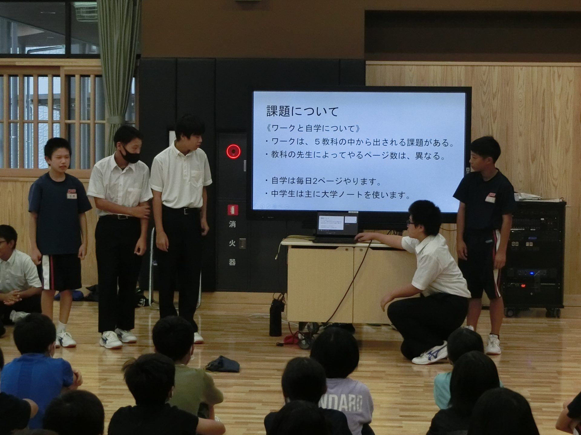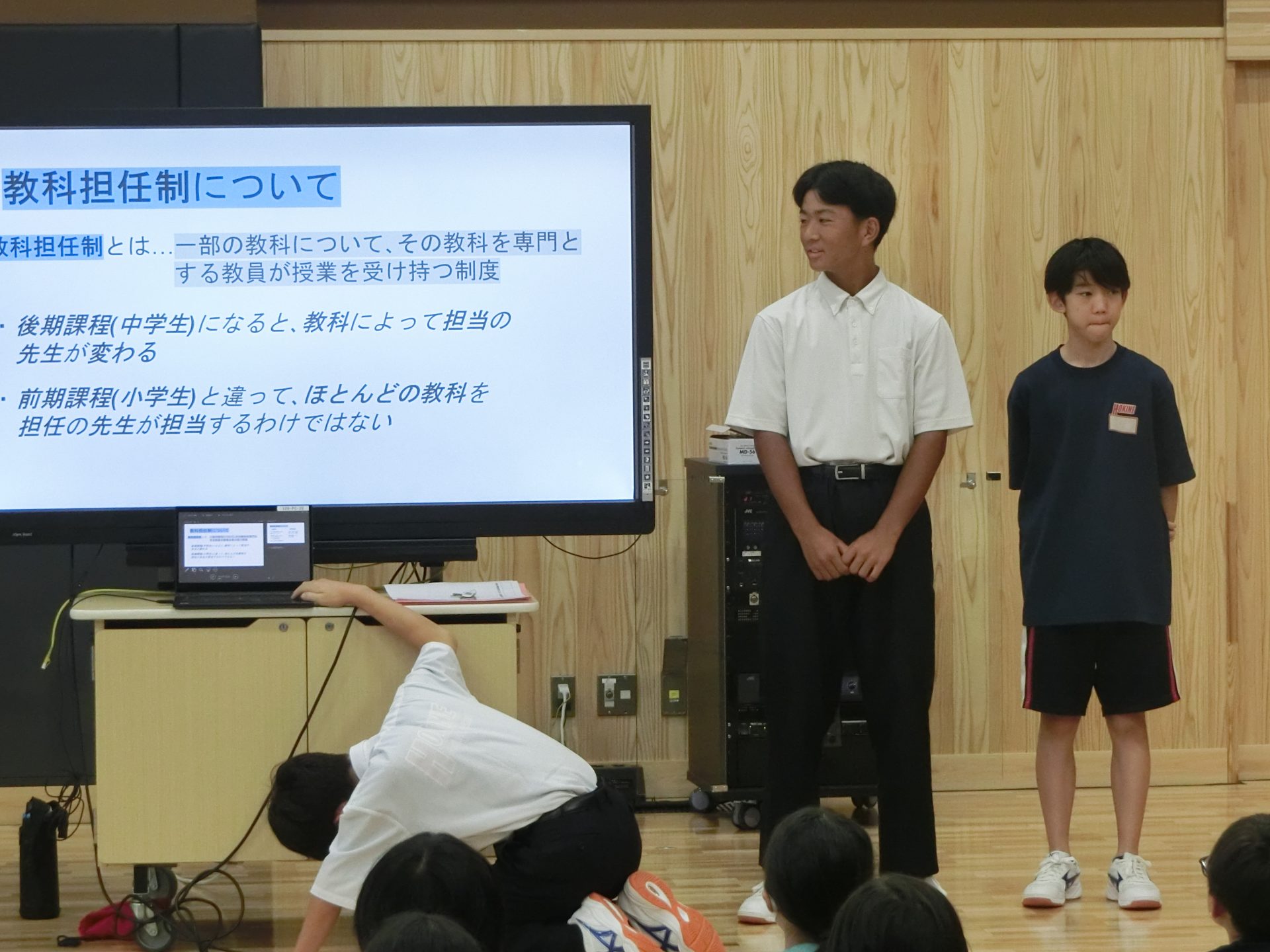 2024.09.20 7年生 Ⅱ期ブロック集会 管理者学校 9/19(木)のブロック集会のテーマは「後期課程の学習について」です。 7年生から5,6年生に向けて後期課程の学習についての紹介がありました。 7年生は後期課程になって、驚いたこと、大変だったことを5,6年生に伝えてあげようとよくまとめていました。 5,6年生は少し驚きながらも、7年生の話をしっかりと聞き、未来の学園生活を想像しているようでした。 Ⅱ期ブロックの集会は、義務教育学校ならではのものです。とてもよい時間でした。 #5年生#6年生#7年生