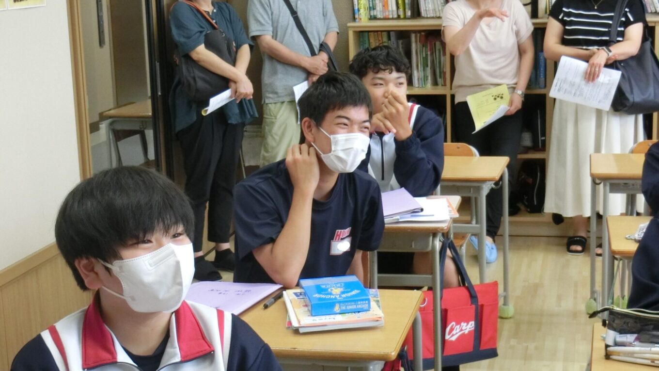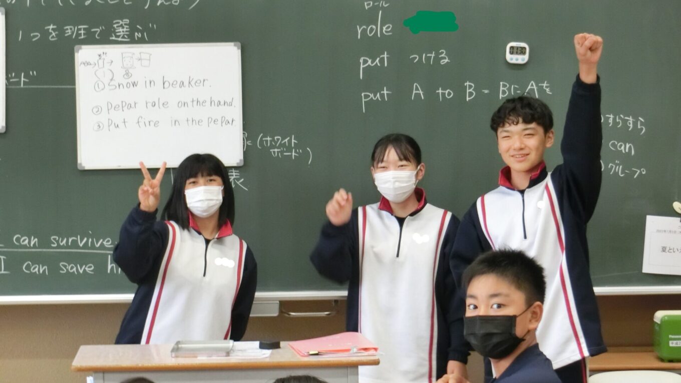 2023.07.06 7年生 授業参観・学年保護者会、お世話になりました。 管理者学校 先日は、お忙しい中、授業参観と保護者会にご参加いただき、大変ありがとうございました。 7年生は、英語の授業を行いました。 授業では、「困った状況の中で、自分ができることを考えよう」というねらいのもと、子どもたちは班のメンバーと協力しながら、何ができるかを一生懸命に考えられていました。それぞれがピンチの状況下で”can~できる”を使いながら、どうしたら生き残れるかアイディアを出し合うことができました。 最後は、堂々と発表することができました。 #7年生