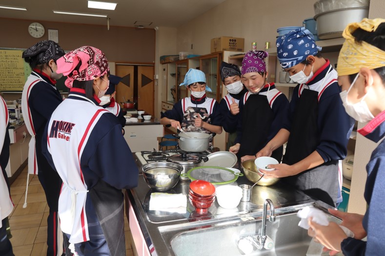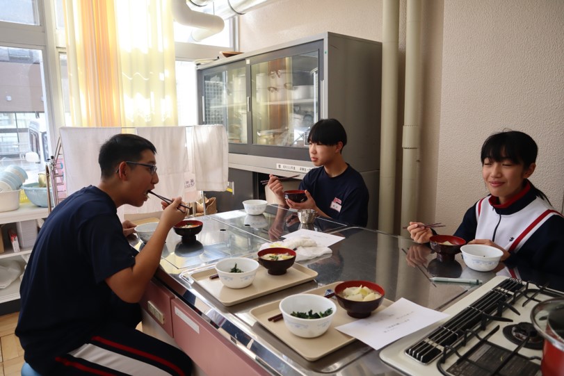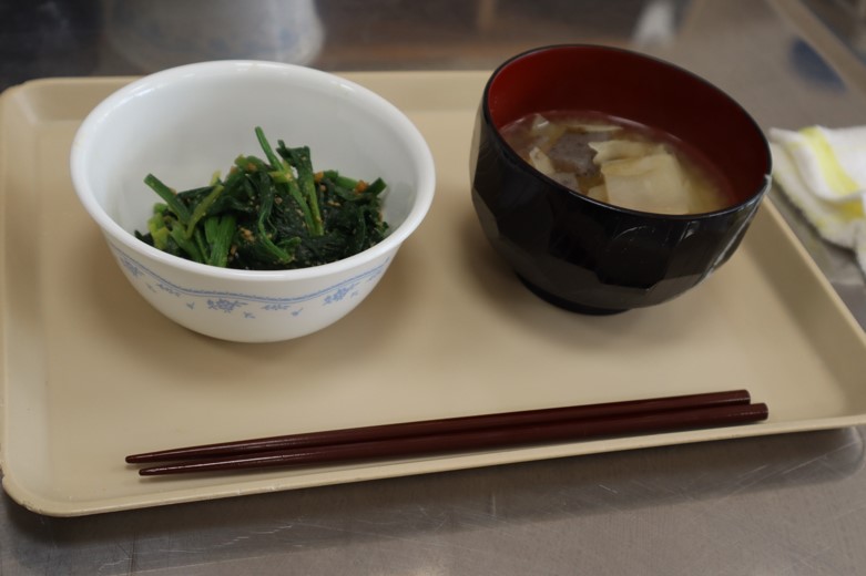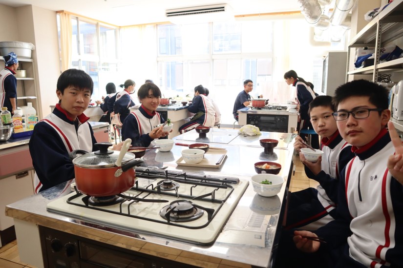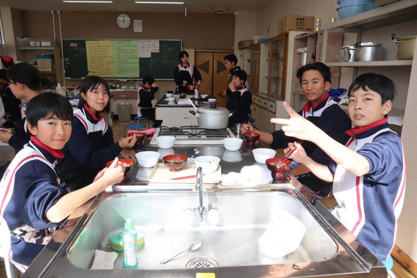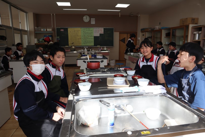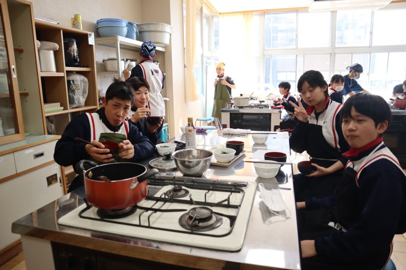2025.01.30 7年生 調理実習を行いました(7年生) 管理者学校 1月29日(水)の家庭科の授業で調理実習を行いました。「豚汁」と「ほうれん草のごま和え」を作りました。久しぶりの調理実習ということもあり、包丁やピーラーの使い方に慣れるまで少し時間がかかりましたが、スムーズに作業を進めることができました。出来栄えも味付けも良く、とてもおいしくいただきました。 #7年生