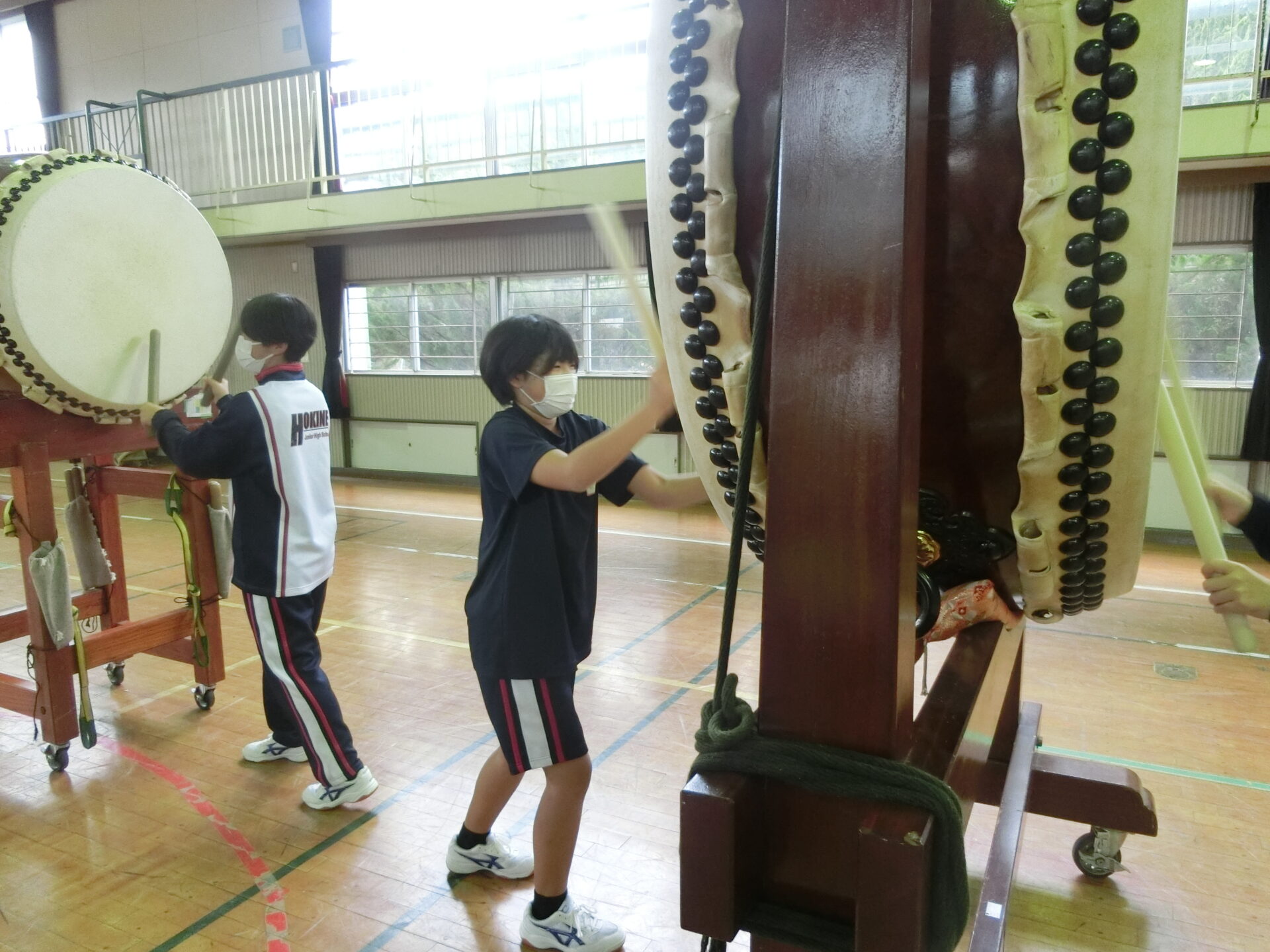 2023.11.06 2023.11.07 7年生 全校生 7年生*和太鼓体験 管理者学校 11月6日(月)の2,3校時に旧金沢小学校にて7年生の和太鼓講習が行われました。 講師の先生は、流響塩原太鼓の指導をしている方々です。 初めは、和太鼓のリズムに難しさを感じながらも、お二人のご指導の下、楽しく体験ができました。このように地域の伝統芸能に関われる機会に感謝です。本当にありがとうございました。 #7年生