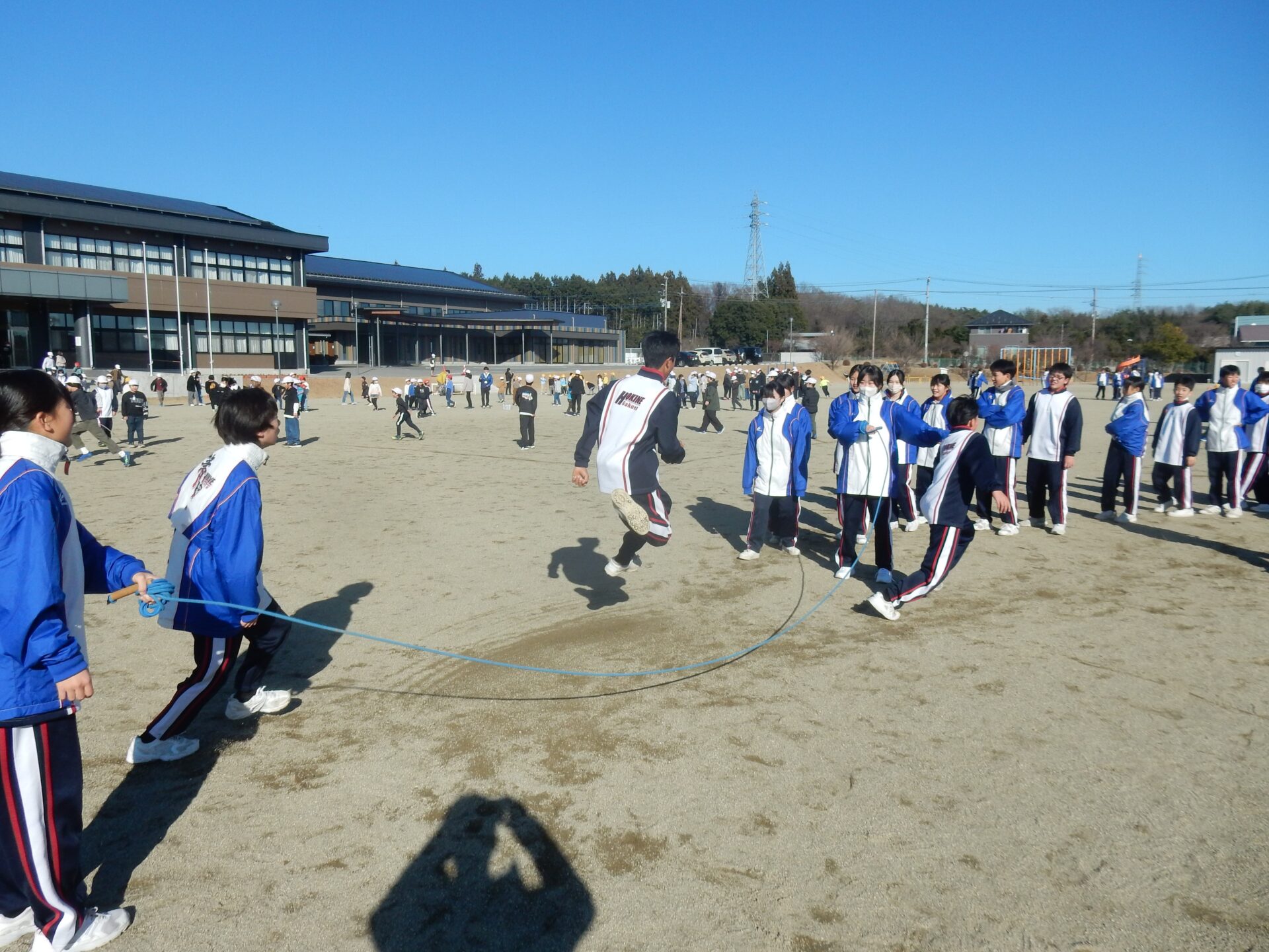 2025.12.19 7年生 7年生 体力づくり 大縄跳び大会にむけて 管理者学校 来週月曜日に行われる大縄跳び大会の練習が、18日、19日の昼休みに行われました。 7年生は優勝目指して気合十分といった様子で、早めに校庭に行き自主練習に励んでいました。 8の字跳びが得意な子も苦手な子も声を掛け合い、お互いにカバーしあいながら練習を進める姿にクラスの団結と仲間を思いやる気持ちを感じました。 本番は5分間で累計何回跳べるかで競います。どんな結果になってもみんなでやり切ったといえる大会になりそうです。 #7年生