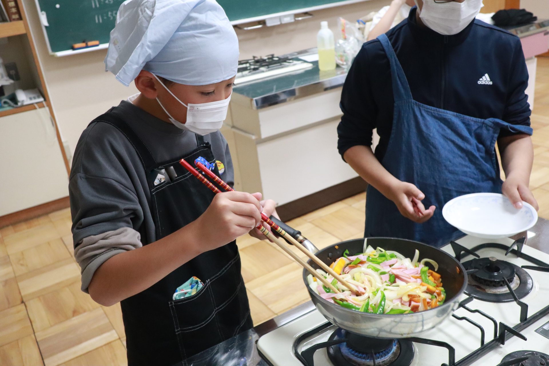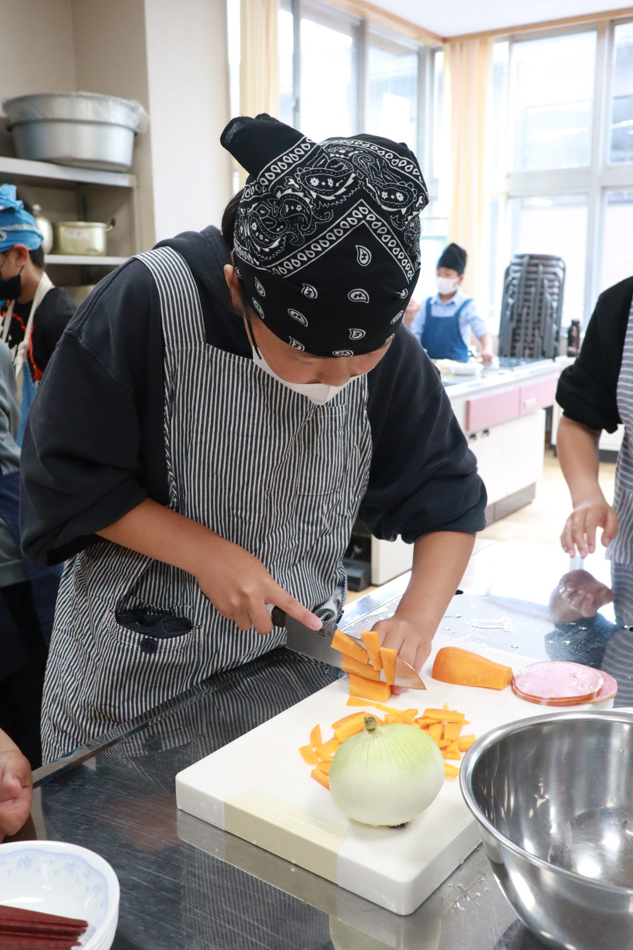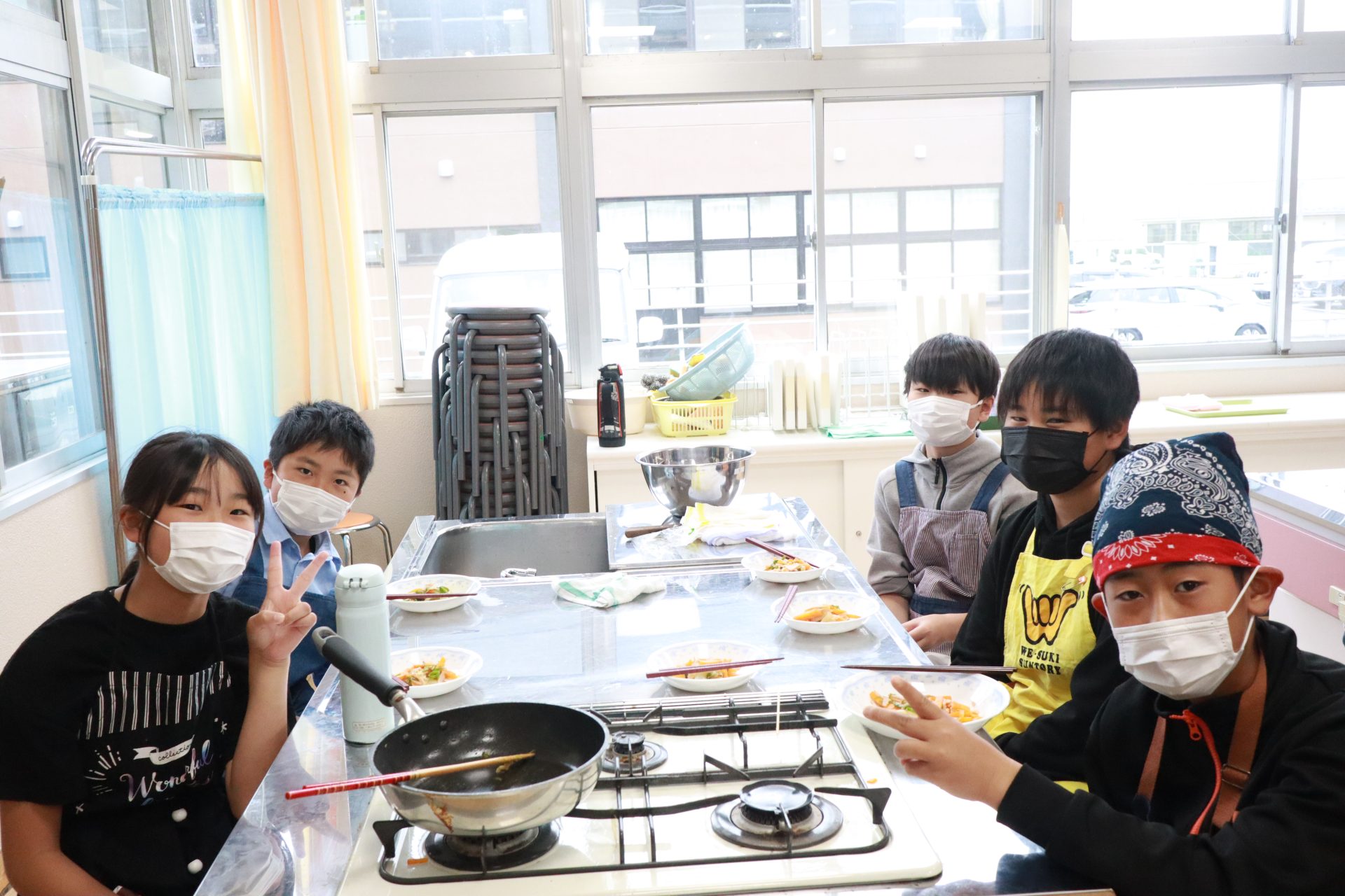 2025.05.30 6年生 今年初の調理実習 管理者学校 6年生になって初めての調理実習です。炒める調理で「いろどり野菜いため」を作りました。人参・ピーマン・玉ねぎ・ハムを炒め、塩こしょうで味付けをしました。一番時間がかかったのが、野菜を切る作業でした。特に人参の短冊切りが難しく、班によって様々な形になってしまいました。しかし、人参に火が通るまでしっかり炒めたことにより、とても美味しく出来上がりました。準備から片付けまで各班で協力して行い、楽しい調理実習になりました。 #6年生