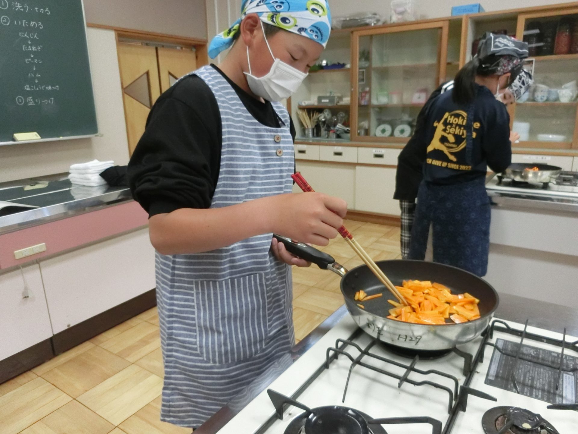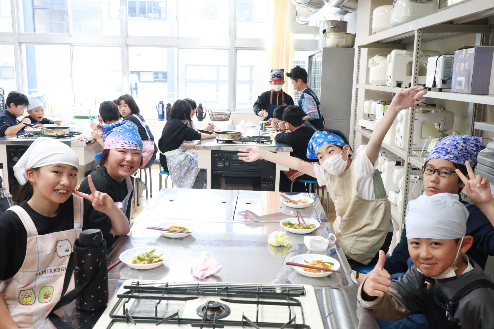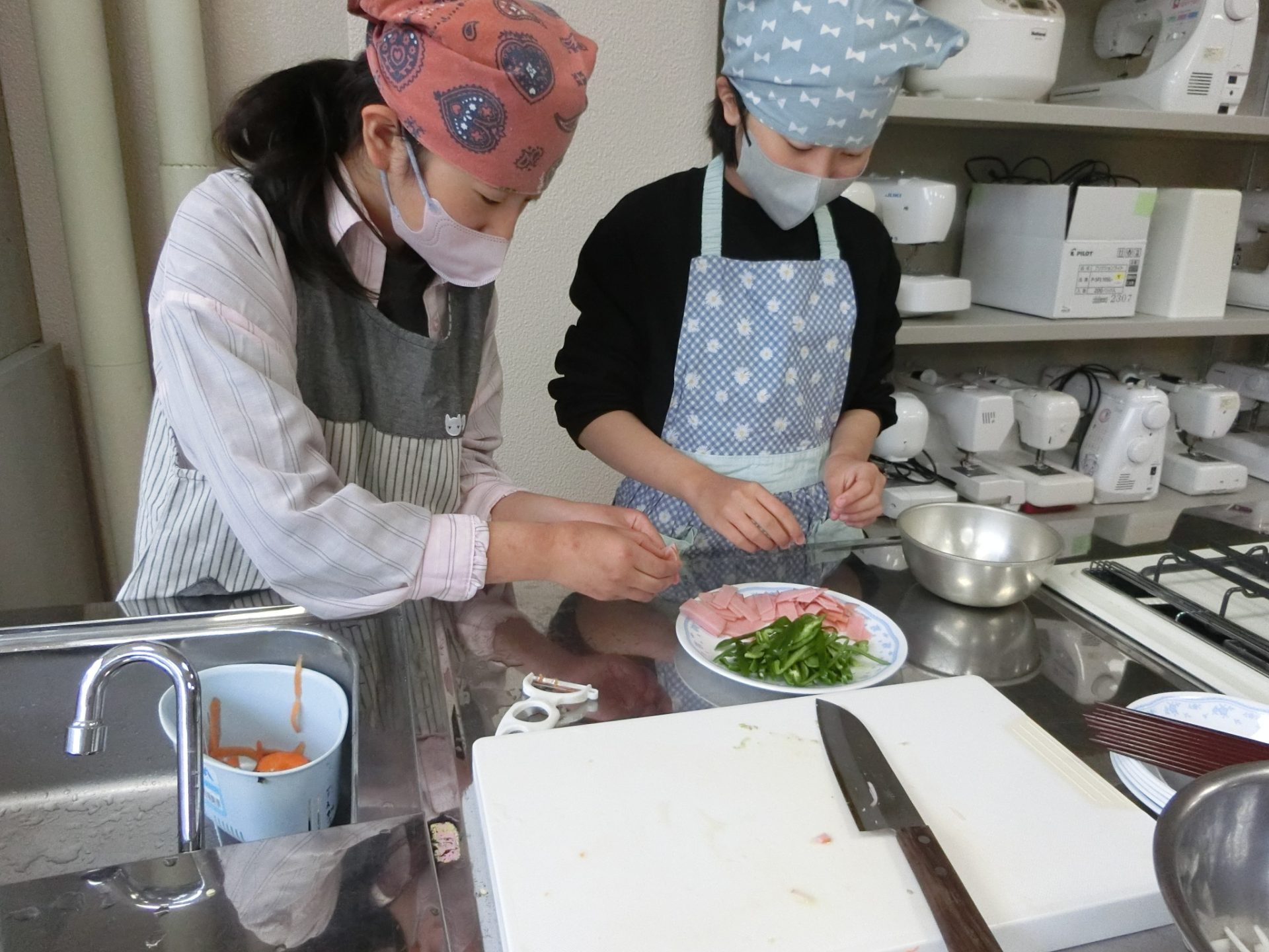 2025.05.30 6年生 今年初の調理実習 管理者学校 6年生になって初めての調理実習です。炒める調理で「いろどり野菜いため」を作りました。人参・ピーマン・玉ねぎ・ハムを炒め、塩こしょうで味付けをしました。一番時間がかかったのが、野菜を切る作業でした。特に人参の短冊切りが難しく、班によって様々な形になってしまいました。しかし、人参に火が通るまでしっかり炒めたことにより、とても美味しく出来上がりました。準備から片付けまで各班で協力して行い、楽しい調理実習になりました。 #6年生
