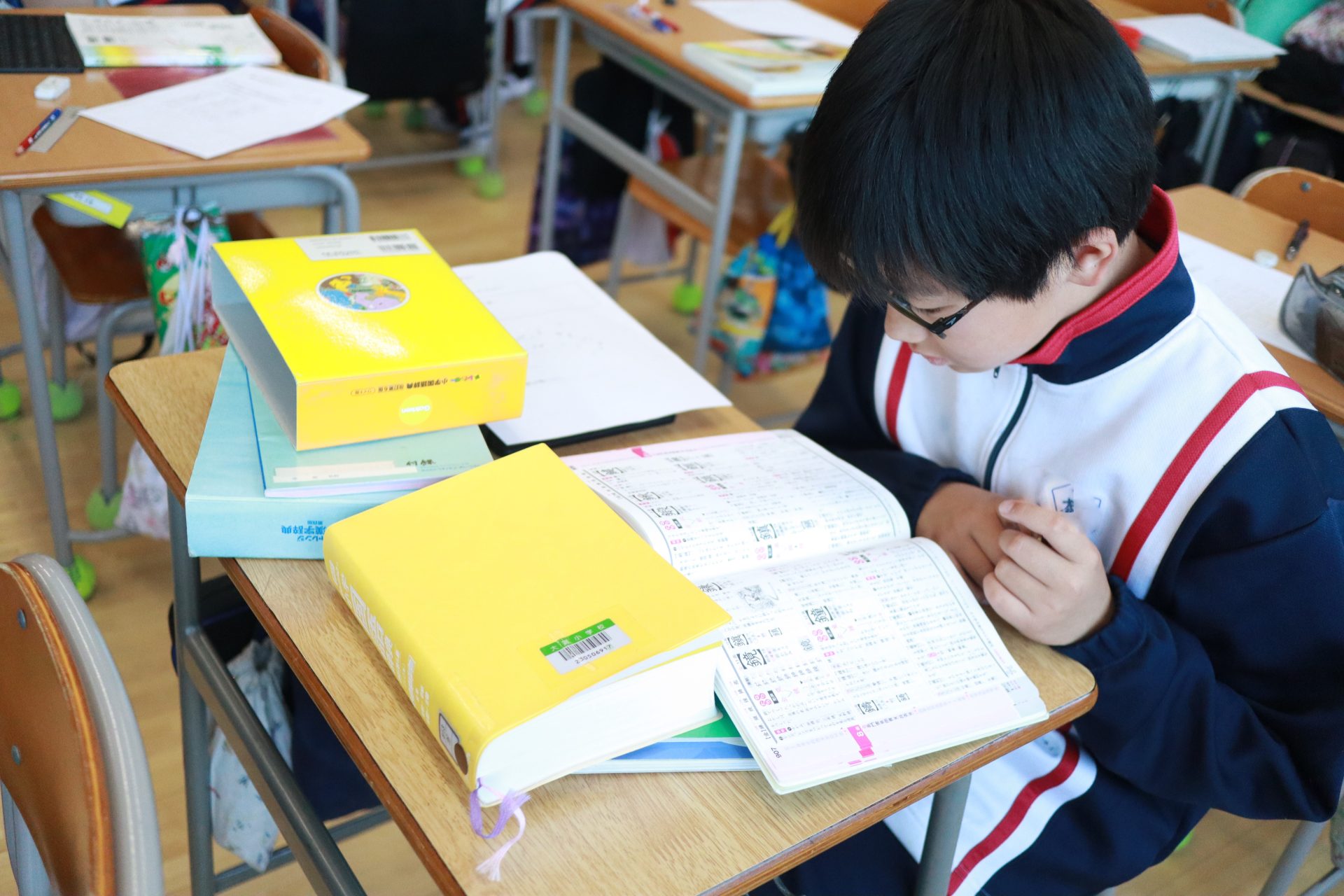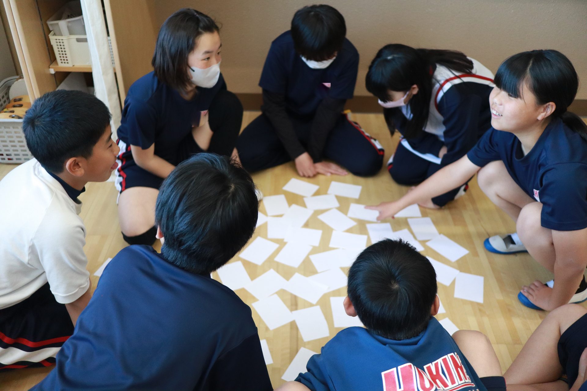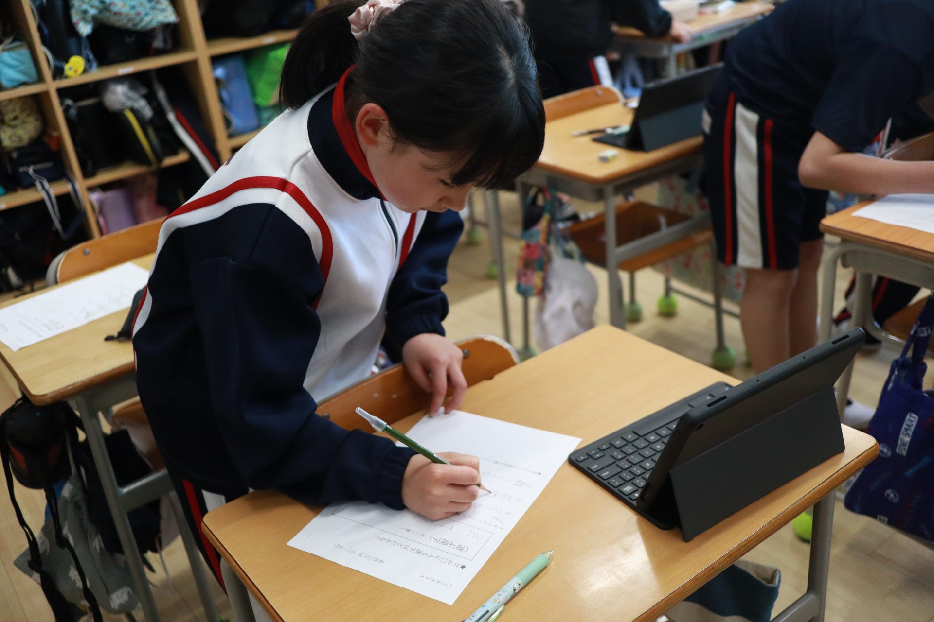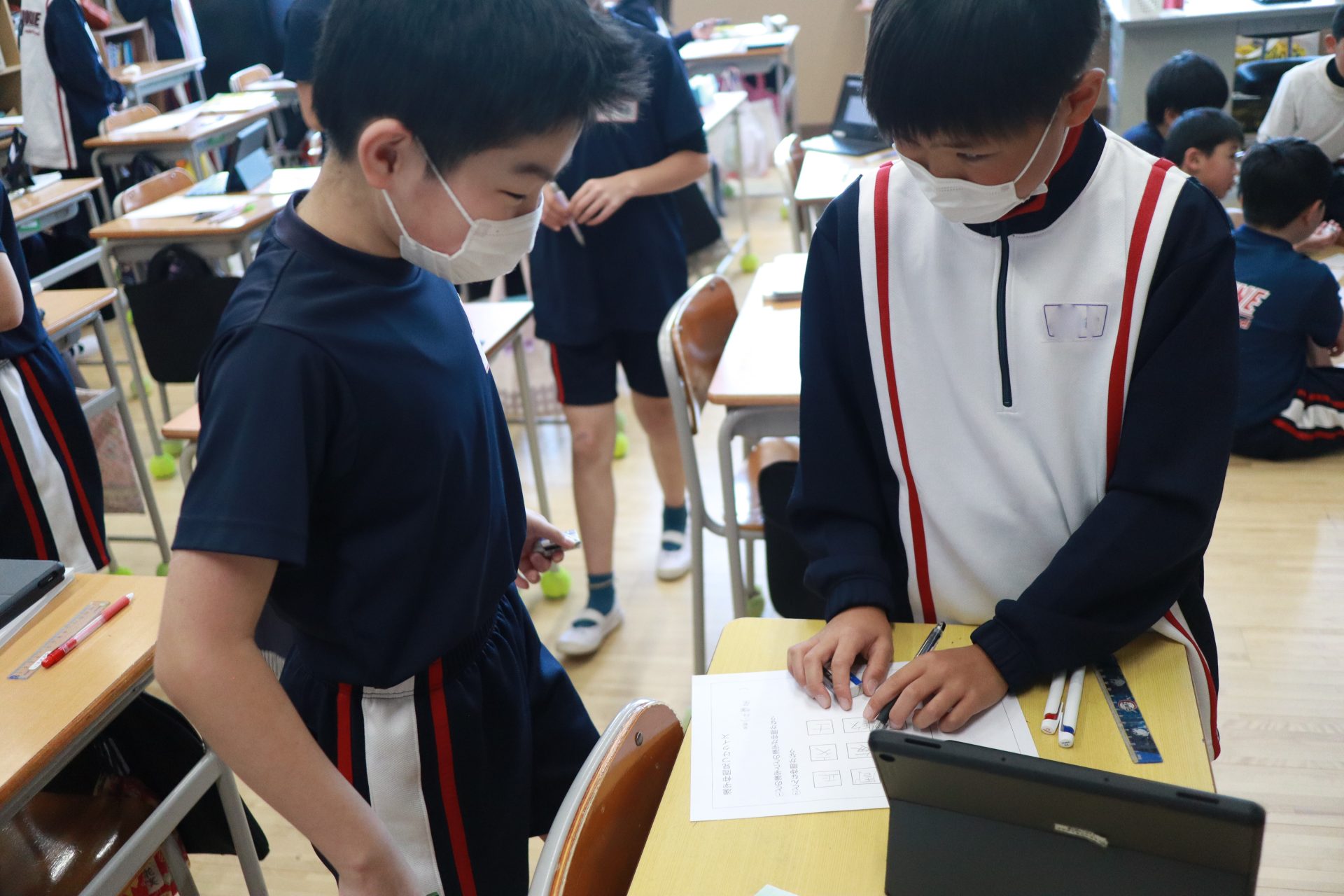 国語では「漢字の形と音・意味」という学習をしています。同じ形が入っていて同じ読み方をする漢字について調べてきました。今日はその調べてきた漢字を使って、「仲間見つけクイズ」や「▢うめクイズ」「漢字めくりゲーム」を行いました。それぞれのクイズやゲームを行う上で、自分たちで問題やカードを作りました。前時までの学習を生かし、問題作りに取り組みました。
