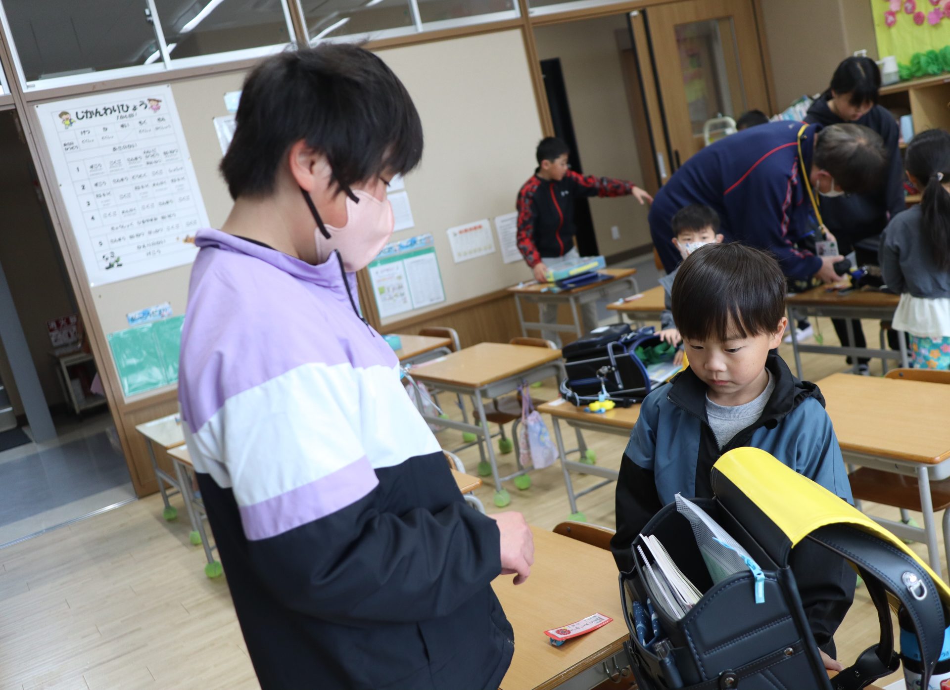 毎朝1年生の準備の手伝いをしています。最初は戸惑いながら活動をしていましたが、今では率先して手伝う姿が見られるようになってきました。