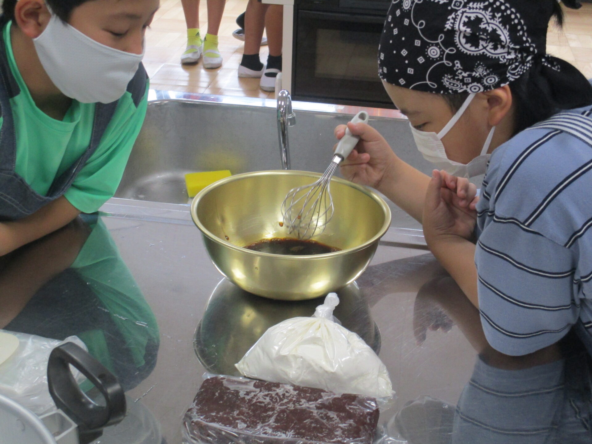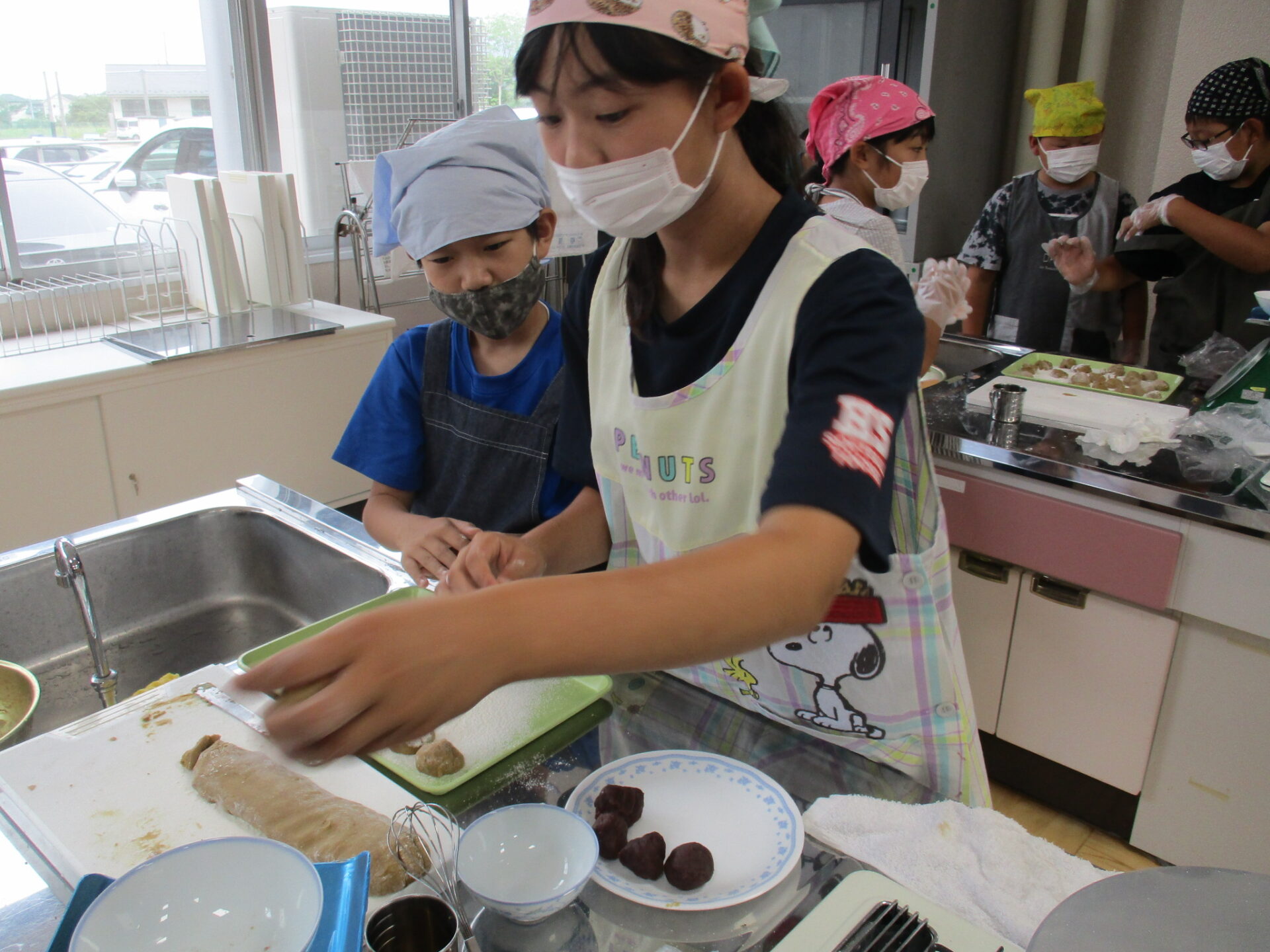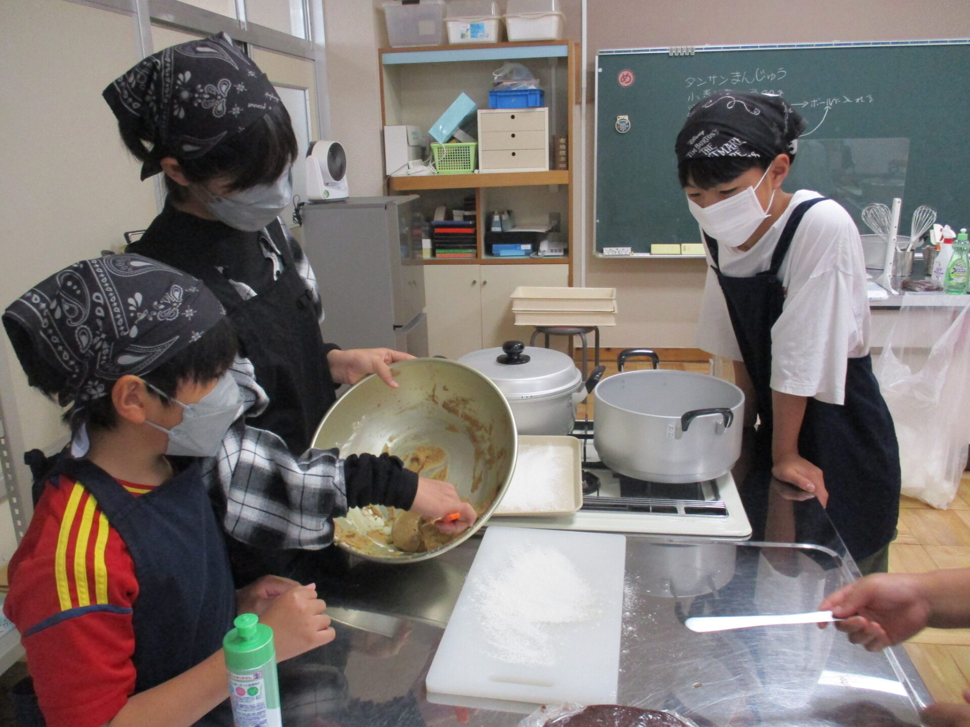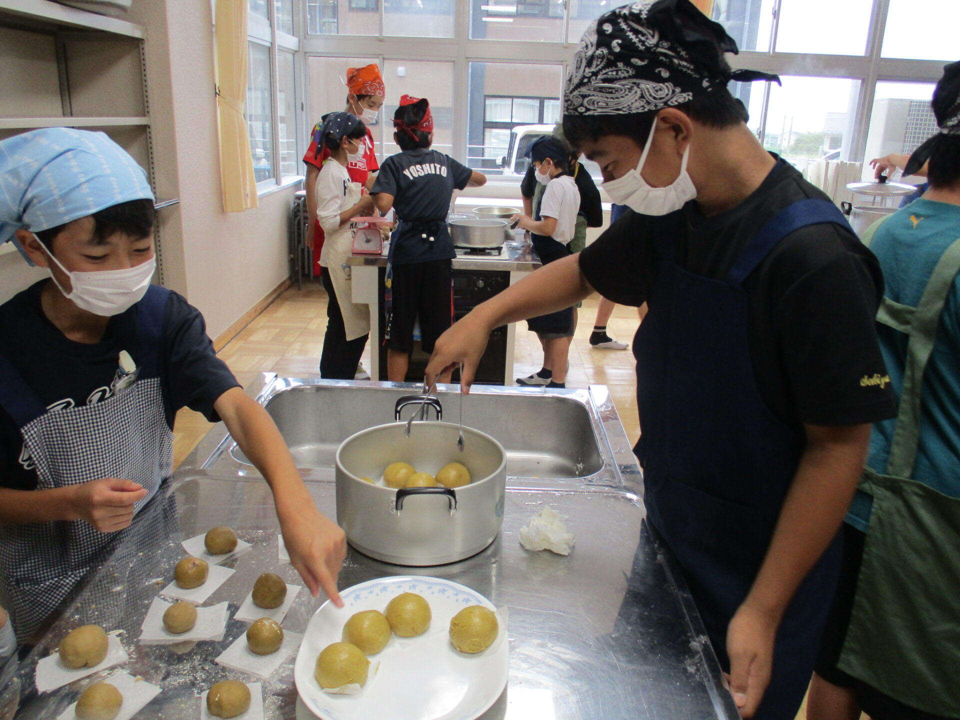 本日、総合的な学習の時間の一環として、釜の蓋まんじゅう(炭酸まんじゅう)を作りました。アグリパル塩原の方2名に講師として来て頂き、釜の蓋まんじゅうの由来や作り方を教えてもらいました。黒蜜を含んだ生地にあんこを詰めておいしくできあがりました。アグリパル塩原でも販売をしているということなので明日からの3連休や夏休みにぜひ、家族でも行って食べてみてください。
