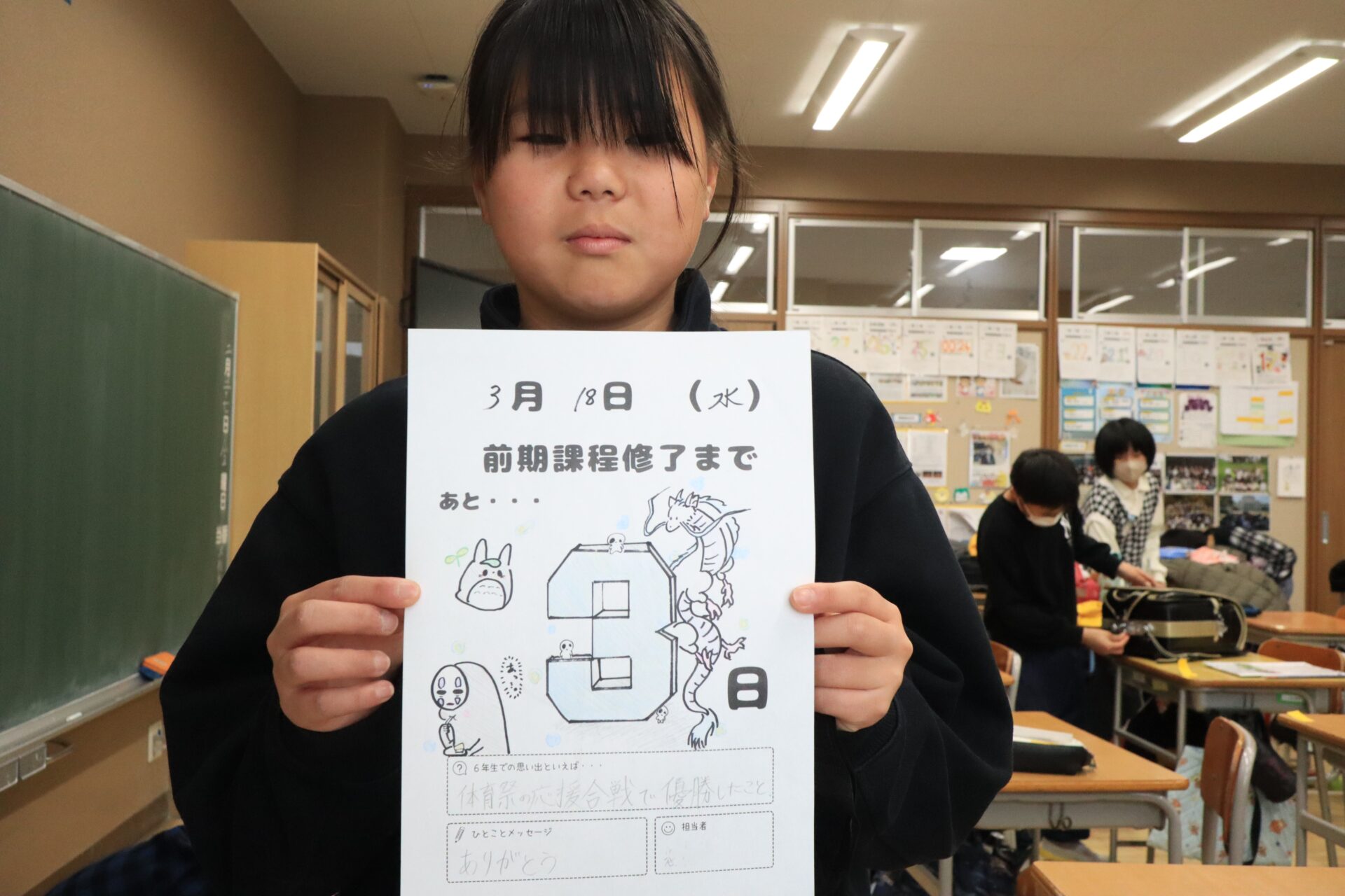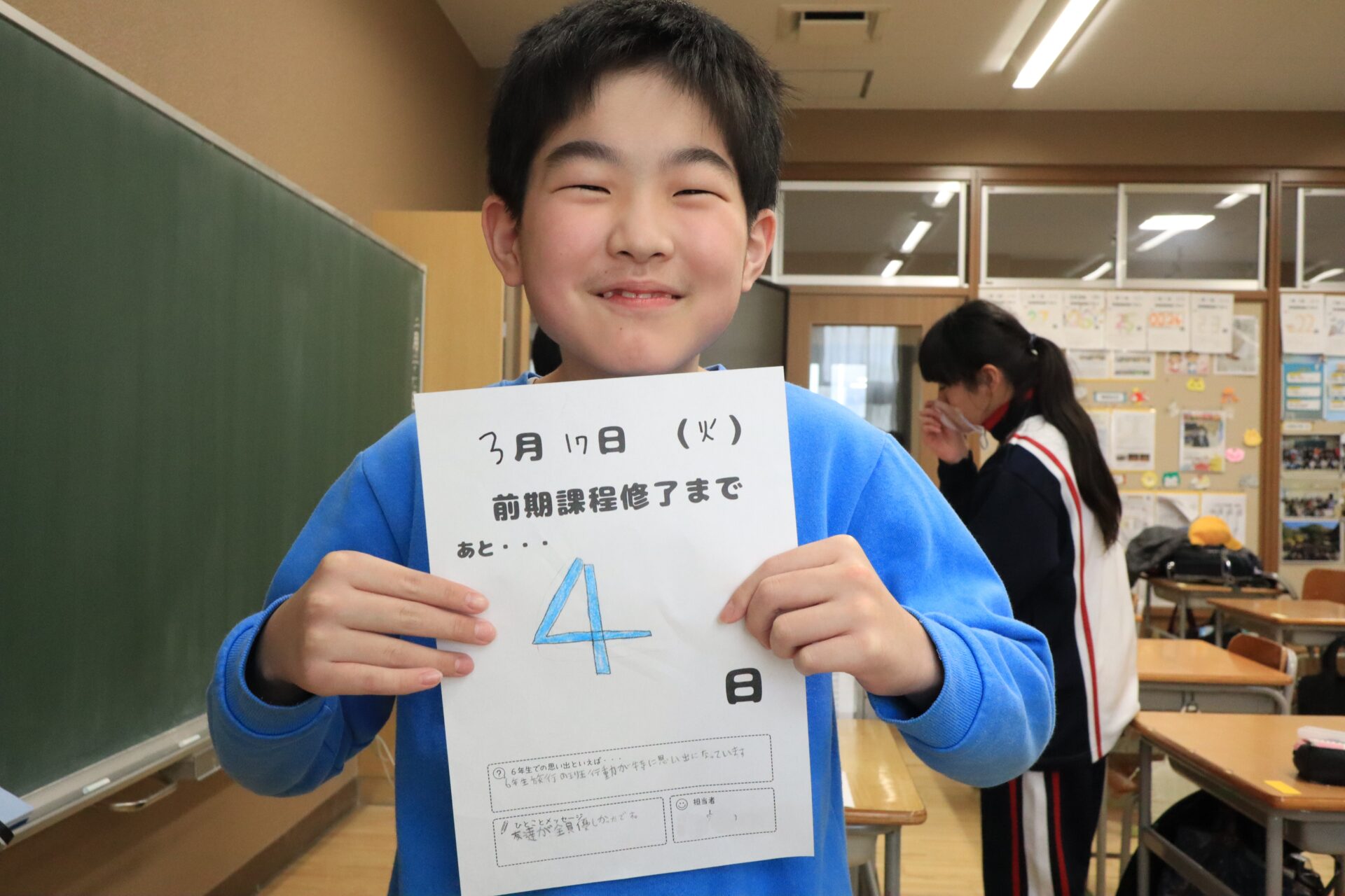 2026.03.18 6年生 前期課程修了式まであと3日! 管理者学校 前期課程修了式まで、あと3日となってしまいました。修了式の練習も一つ一つの動作を丁寧に行うことを意識しています。残りの登校日数も少ないですが、前期課程修了式で成長した姿を見せられるようにしたいと思います。 小学校生活の給食も残りわずかなので、今日はクラス全員で丸くなって給食を食べました。いつもとは違う雰囲気で楽しく食べることができました。 #6年生