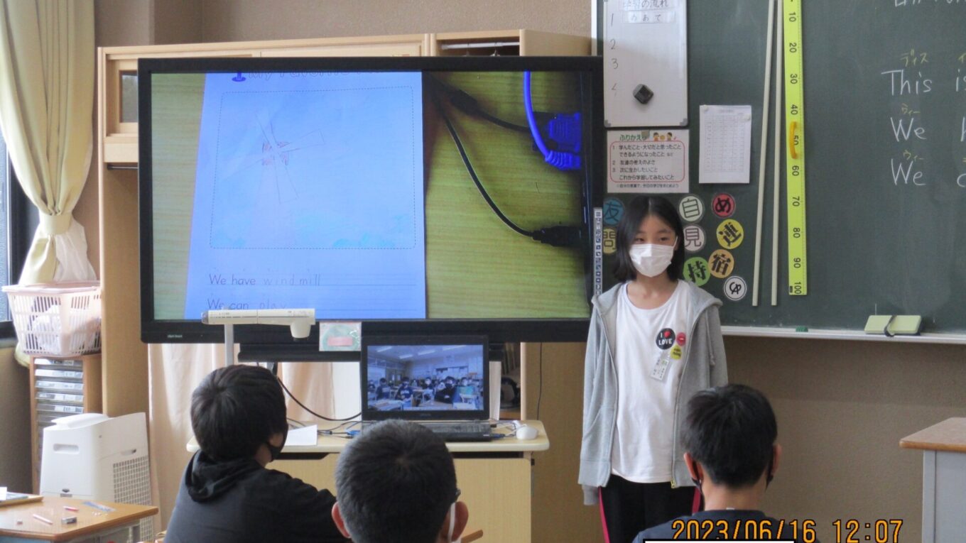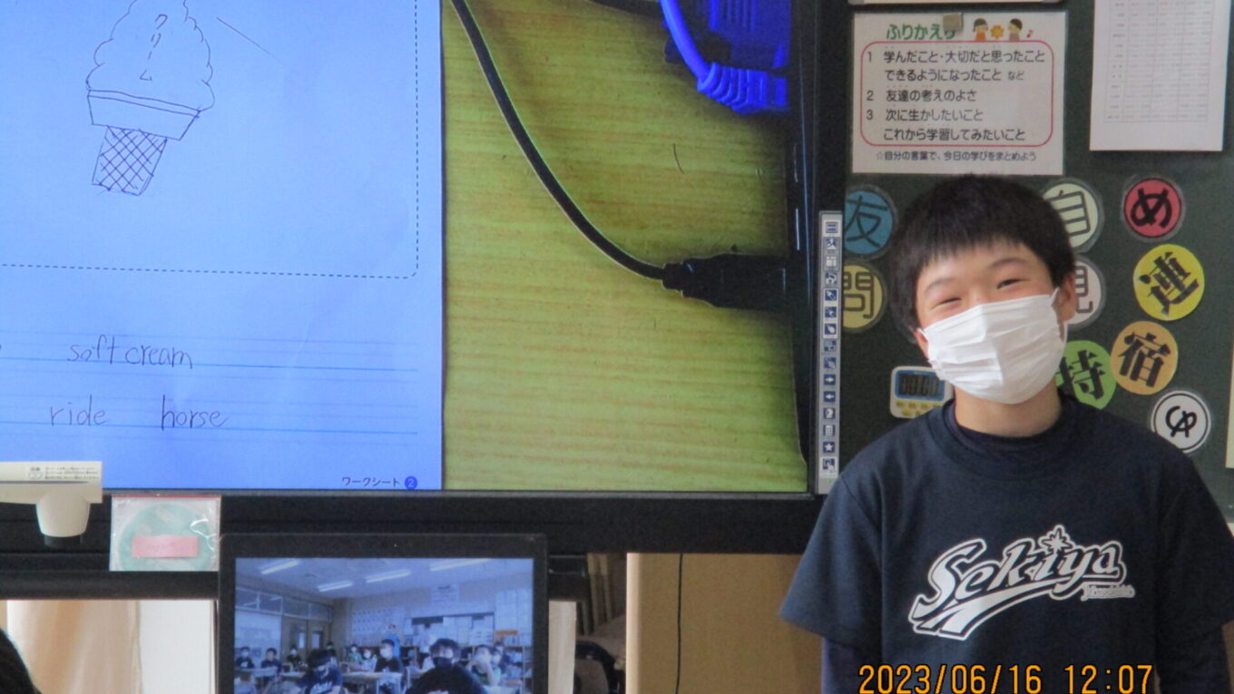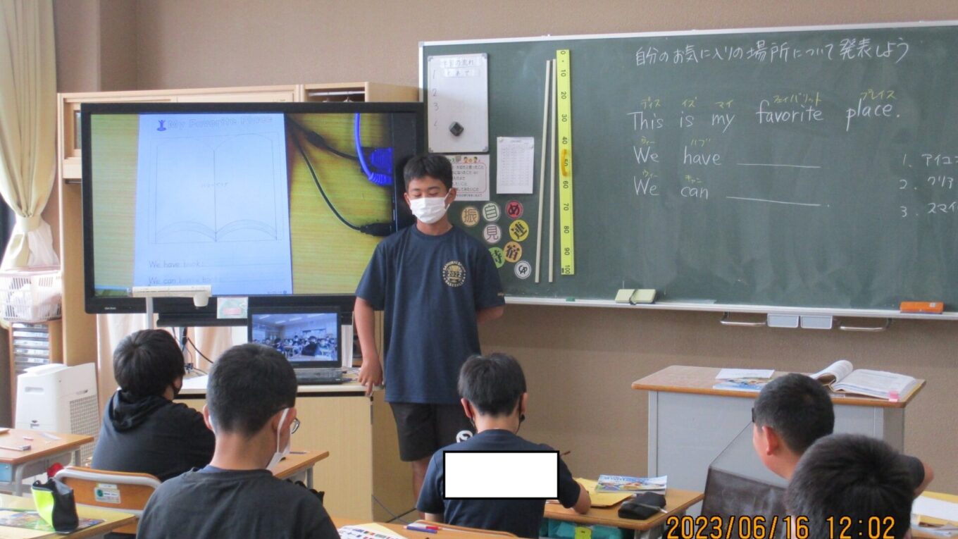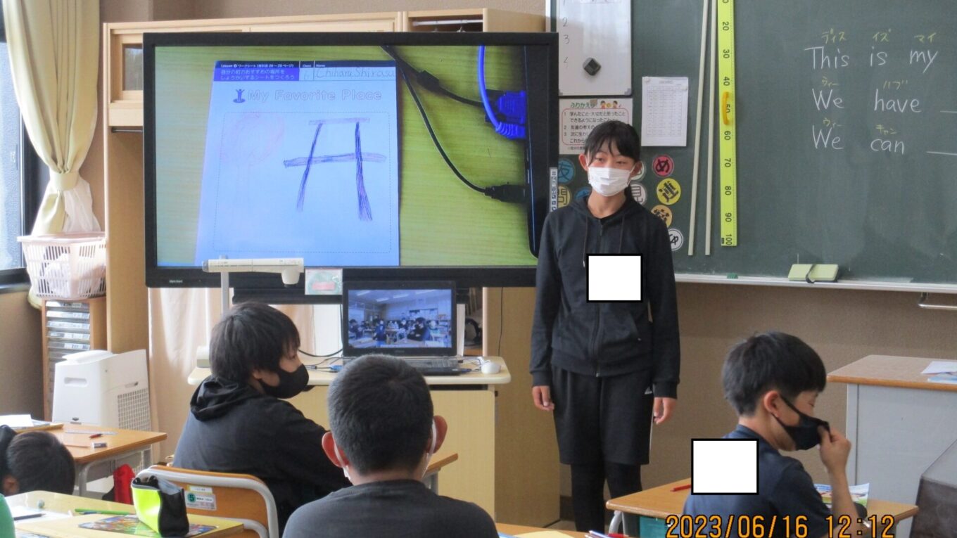 2023.06.16 6年生 外国語~お気に入りの場所を紹介しよう~ 管理者学校 外国語でALTの先生に、那須塩原市の中でお気に入りの場所を一人一人紹介しました。そこには何があり、何ができるのかイラストもかいて伝えました。本校のALTの先生は、週末に子ども達が紹介した場所へ実際に行くこともあるようで子どもたちも喜んでいました。これからもみんなで外国語の授業を頑張っていきたいですね♪ #6年生