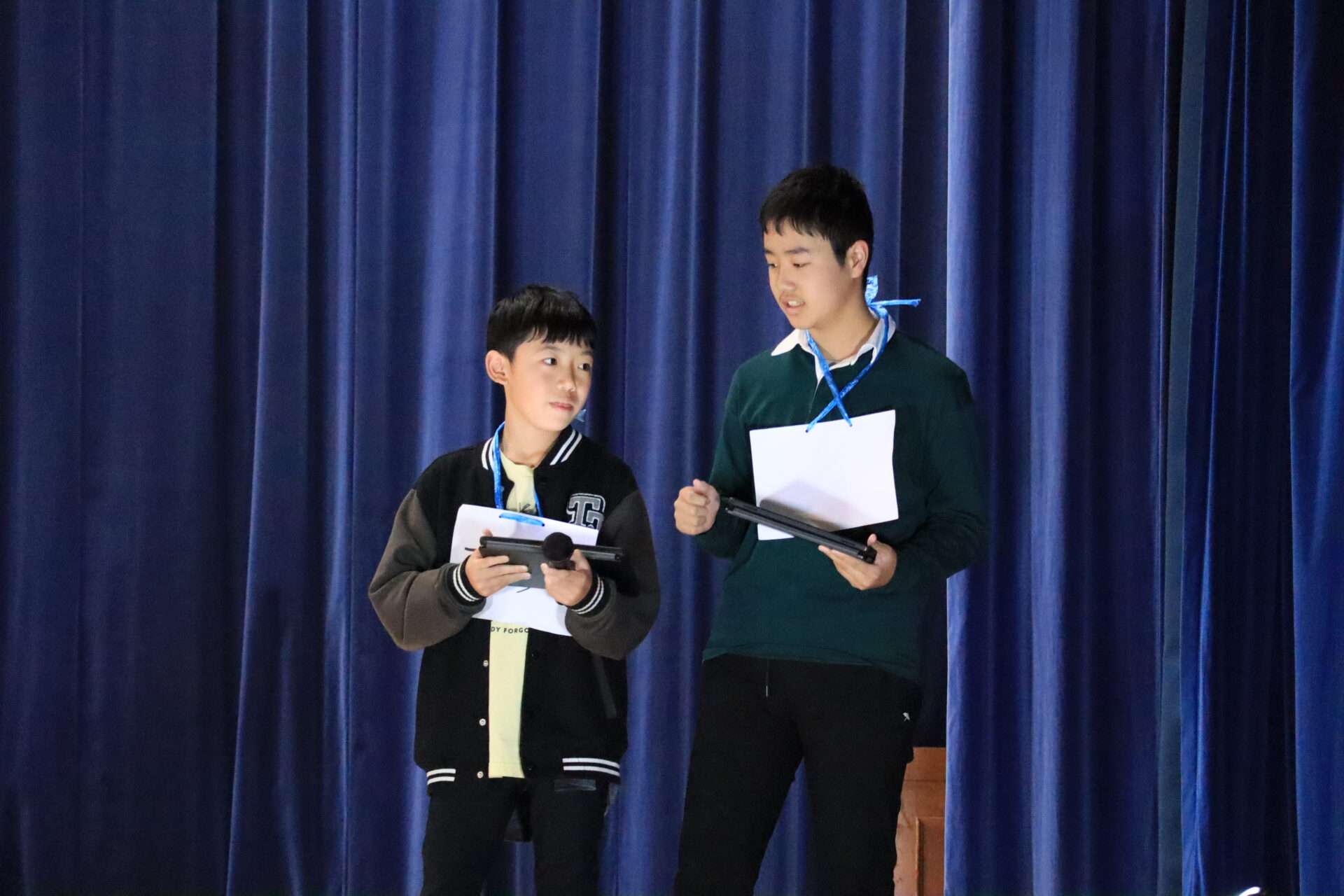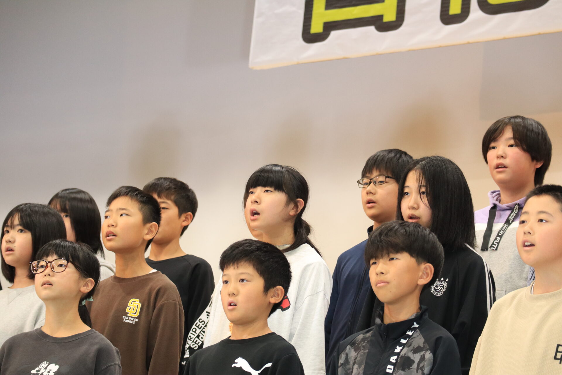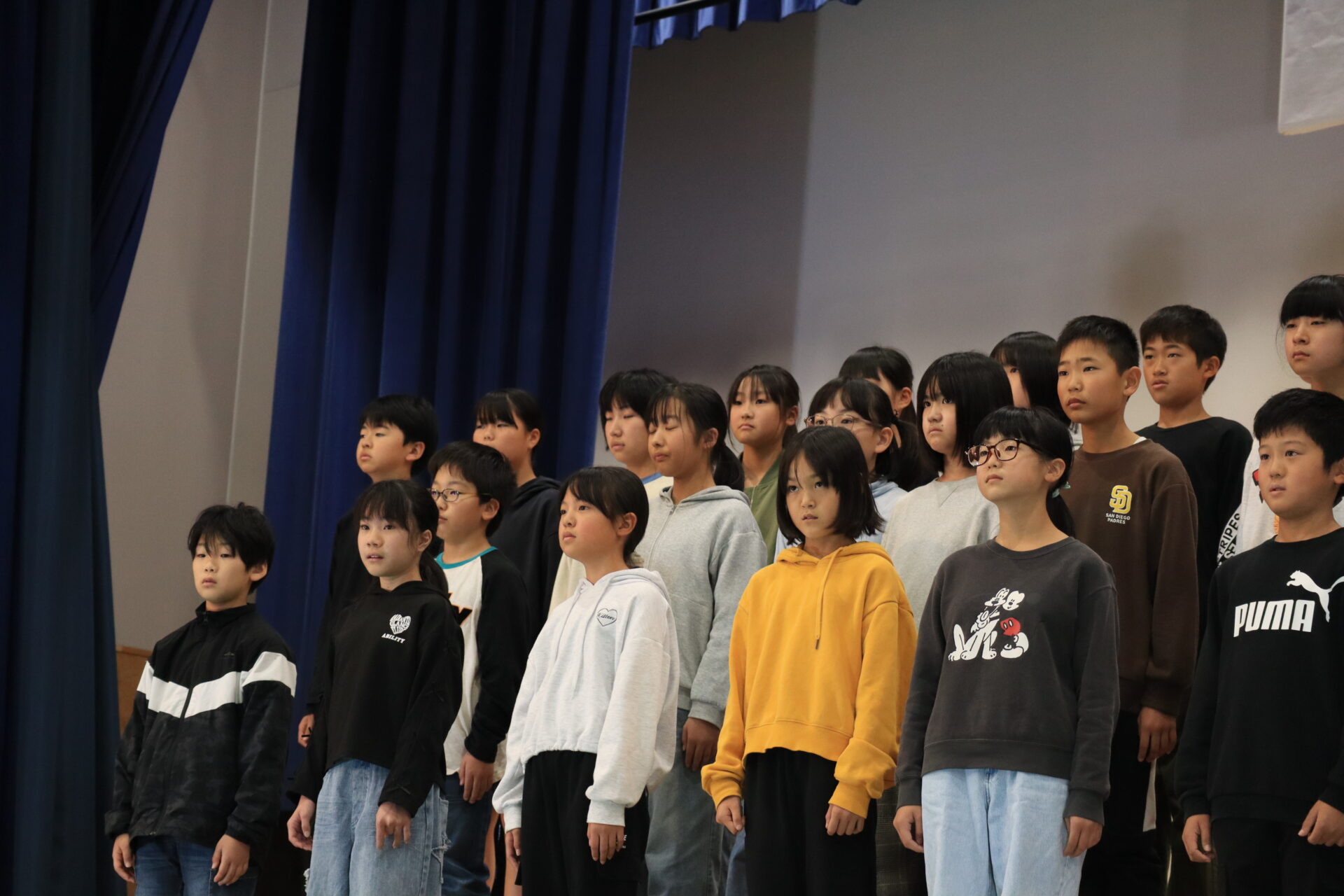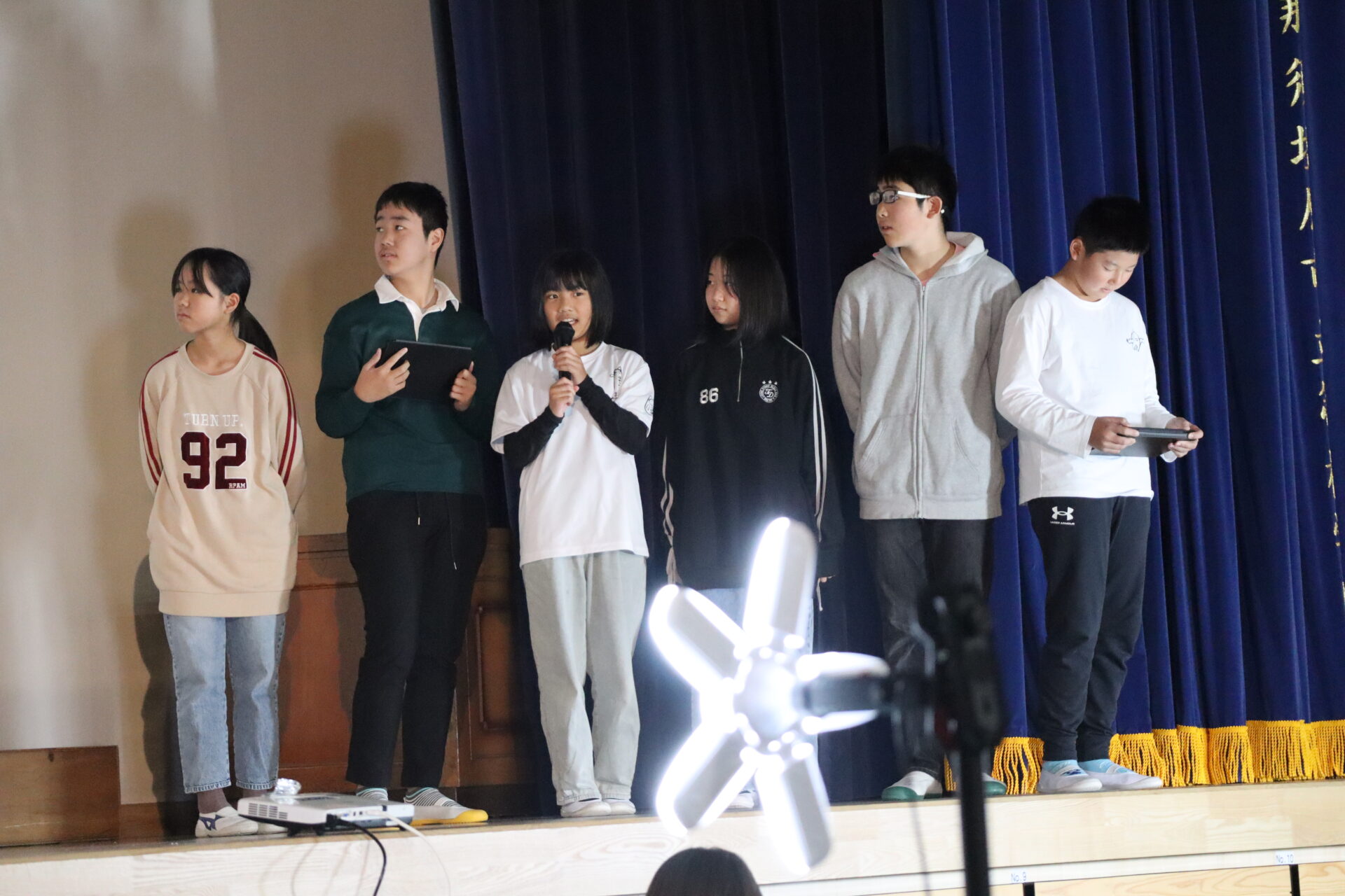 合唱発表では、音楽発表会に続き「次の空へ」を5・6年生で歌いました。音楽発表会で一度舞台を経験しているため、しっかりと歌い上げられたのではないかと思います。また、6年生女子は7~9年生と共に合唱に参加しました。6年生の歌声もしっかりと聞こえ、ライトを使った演出もとても素敵でした。