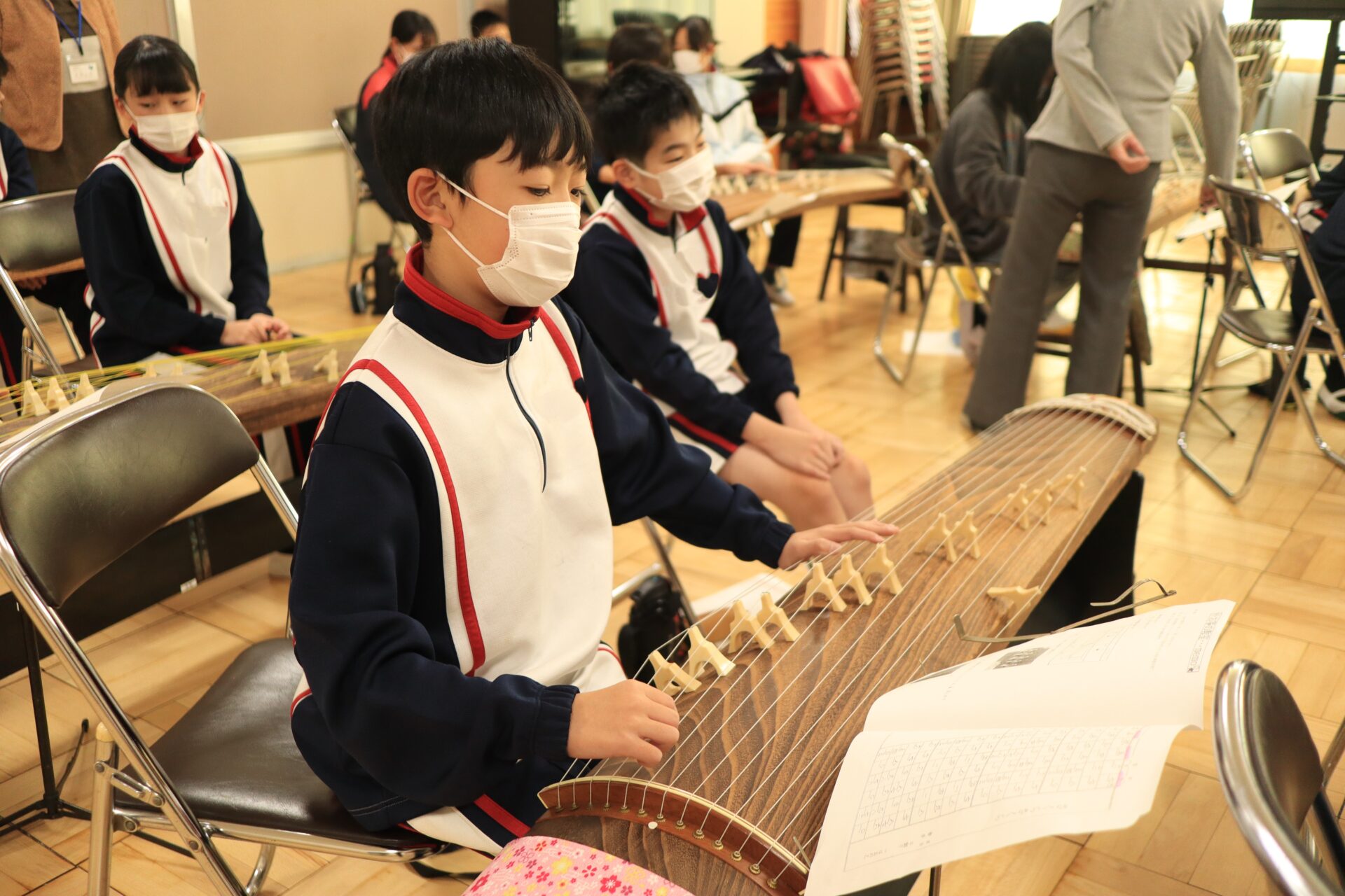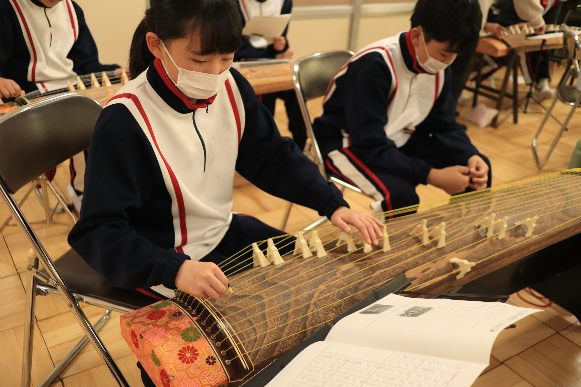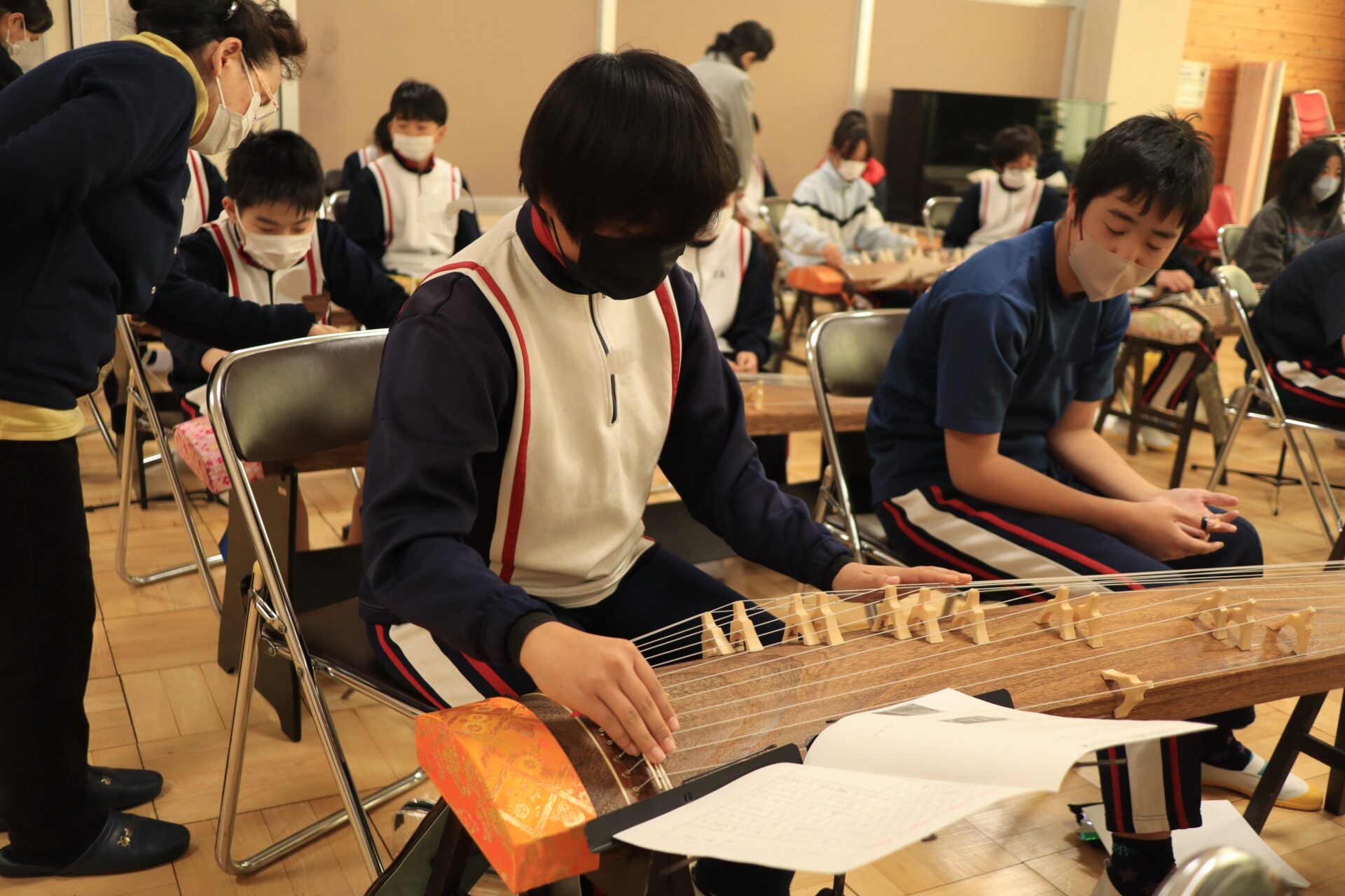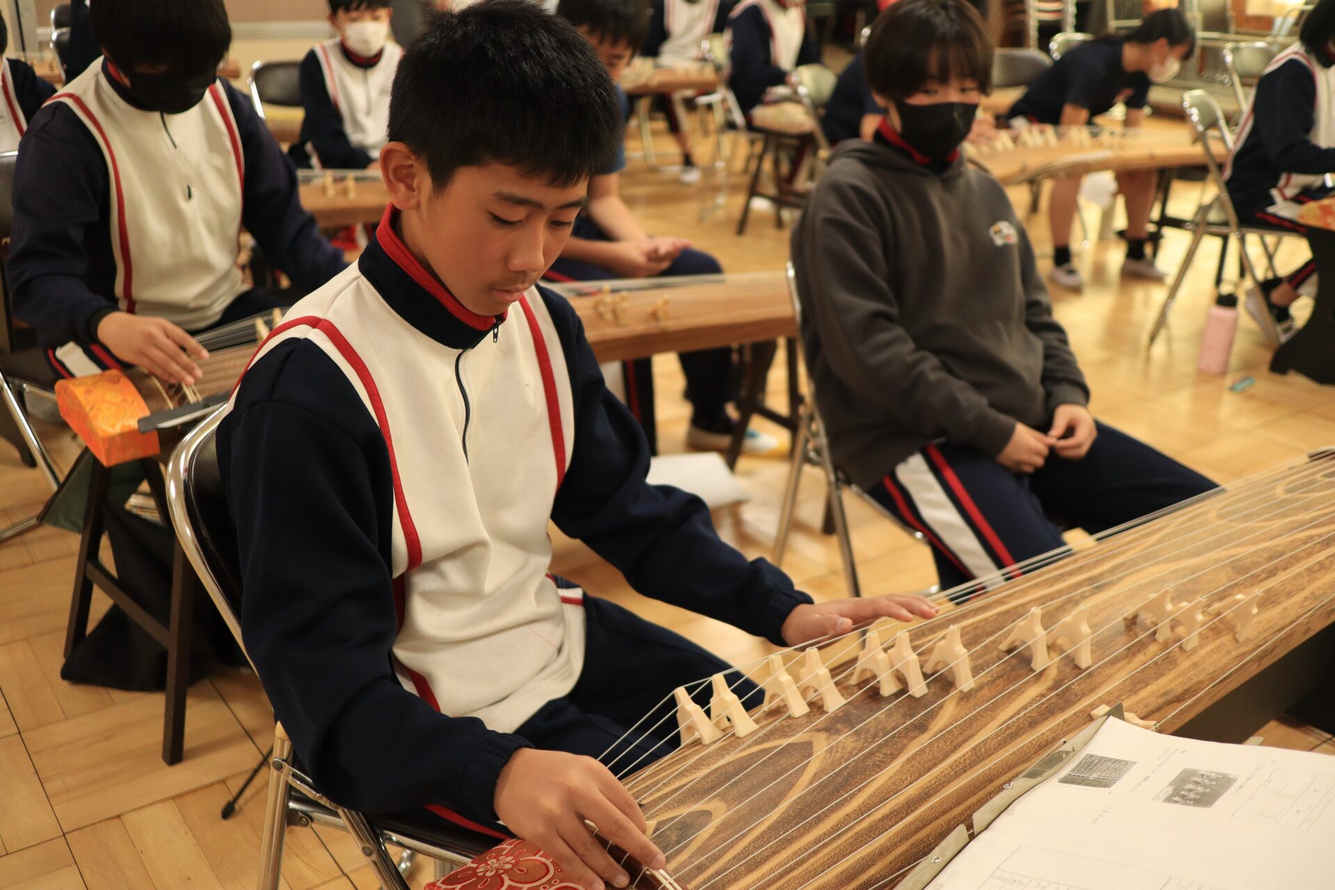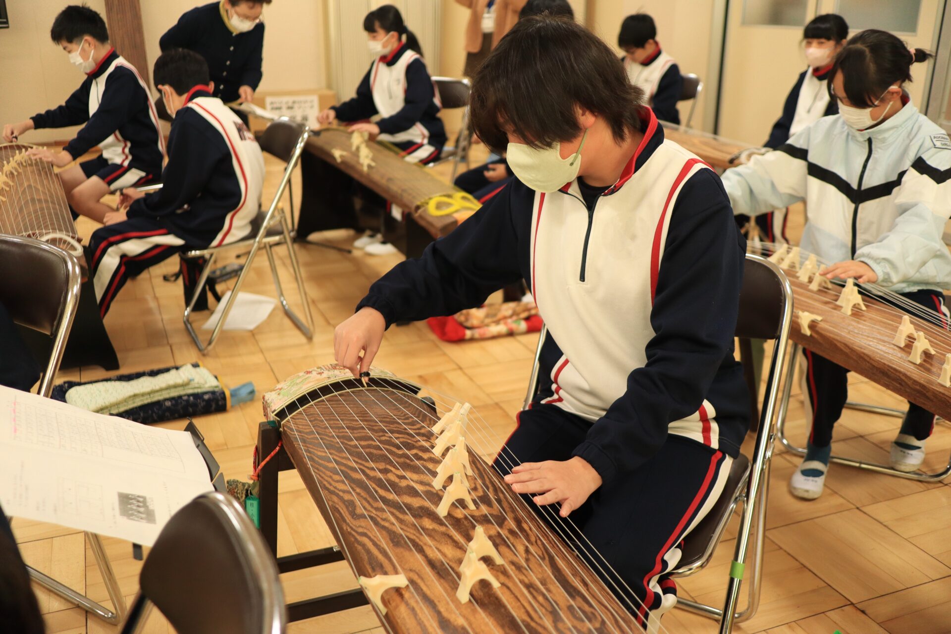 2025.12.11 6年生 琴教室 管理者学校 今日は琴教室がありました。 琴は、いつも見ている音符と違って数字であらわしているため、弦の場所と数字を合致させるのが難しかったようです。しかし、時間も限られている中、一生懸命に指を動かして練習していました。何度も何度も繰り返し練習していくと、だんだん音も合ってきました。授業の最後には「さくらさくら」を演奏することができました。 #6年生