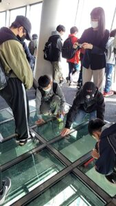 2023.11.09 6年生 6年生旅行その2 管理者学校 11月9日(木) バスは順調に都内へ向けて走り、8時には羽生パーキングエリアに到着しました。 その後都内に入り、予定通りにスカイツリーに到着。子供たちはかなりテンション高めです。初めて東京の街並みを目にする子供たちにとっては、驚きと感激が一杯なのではないかと思います。 ガラスの床から見下ろす風景は、どんな風に目に映ったでしょうか。スカイツリーはもうクリスマスの装いです。 #6年生