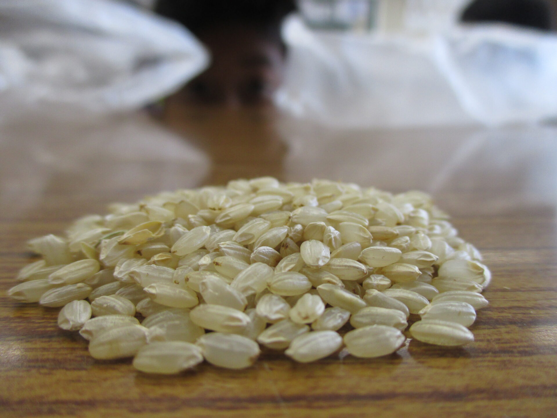 そして、数えた後にはお米の籾殻を手作業で取り除いてみました。