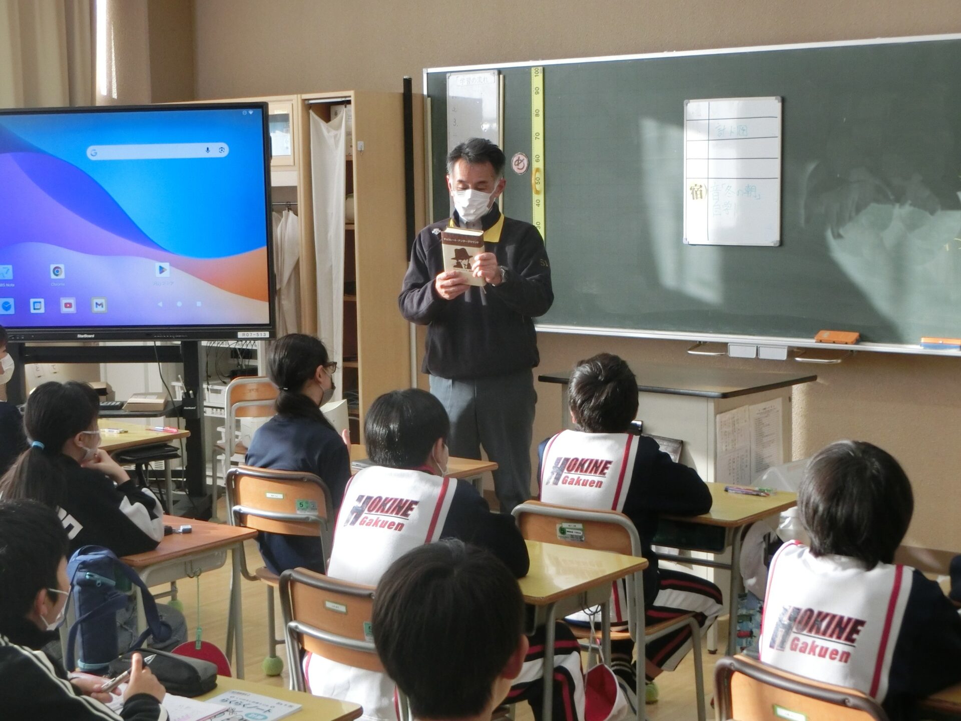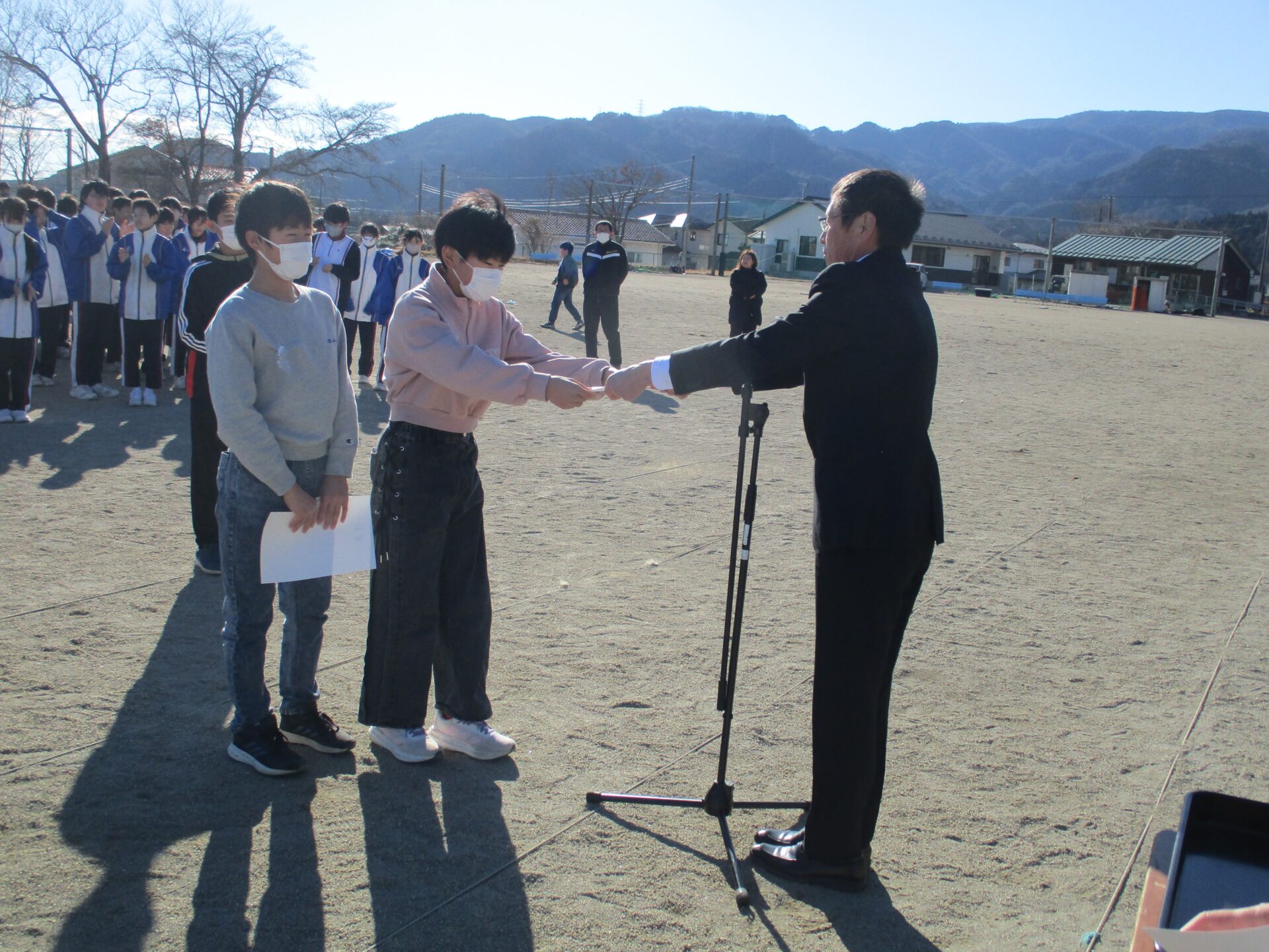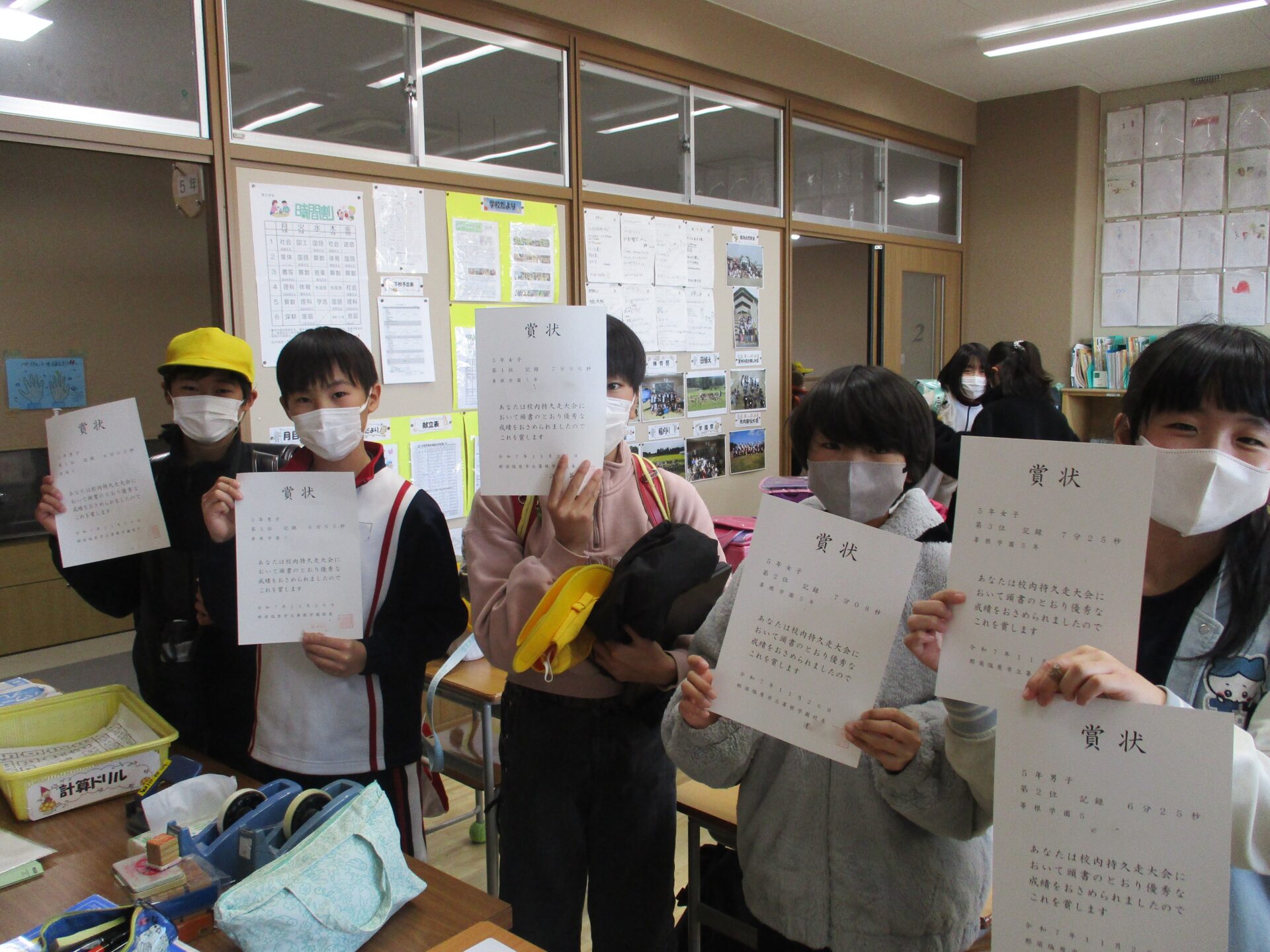 2025.12.18 5年生 シャッフル読み聞かせ&冬季体力作りスタート!! 管理者学校 今日は、読書旬間の一環として先生方によるシャッフル読み聞かせが行われました。5年生は、後期課程の教務主任の先生、教頭先生が読み聞かせをしてくれました。9年生もお手伝いとして来てくれてとても楽しかったようです。また、今日の昼休みから冬季体力作りとして長縄(8の字跳び)が始まりました。練習前には、11月の持久走大会の表彰もありました。来週の月曜日の本番に向けて練習を頑張っていきましょう。 #5年生