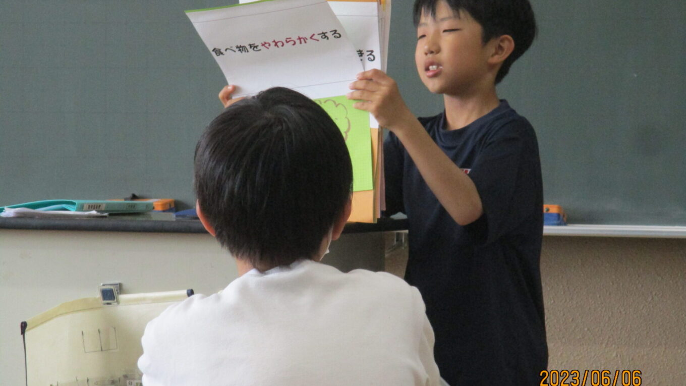 5年生には、H.Sさんが唾液の大切さについて紙芝居で説明してくれました。