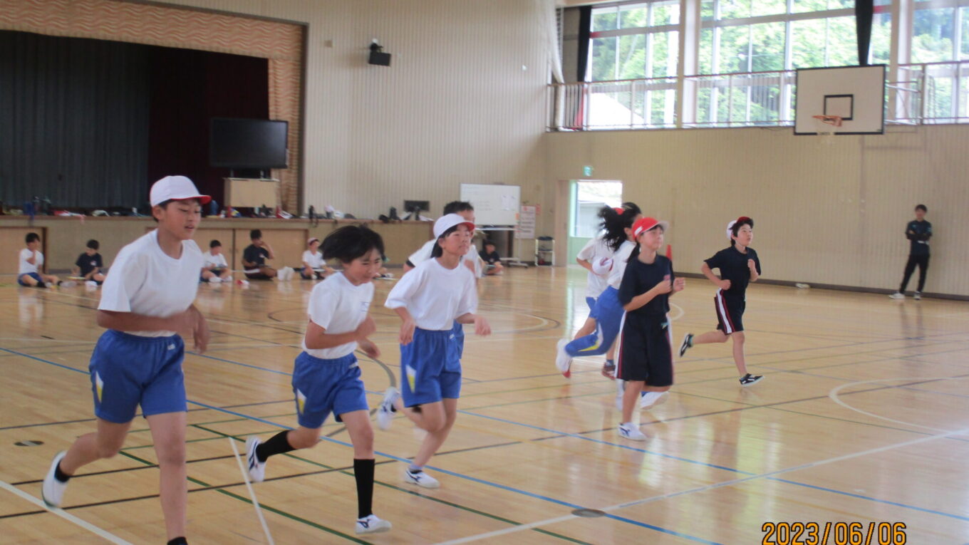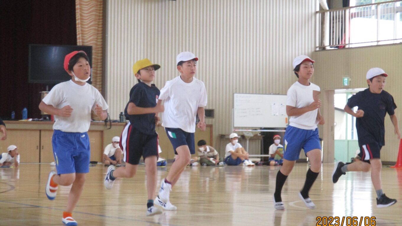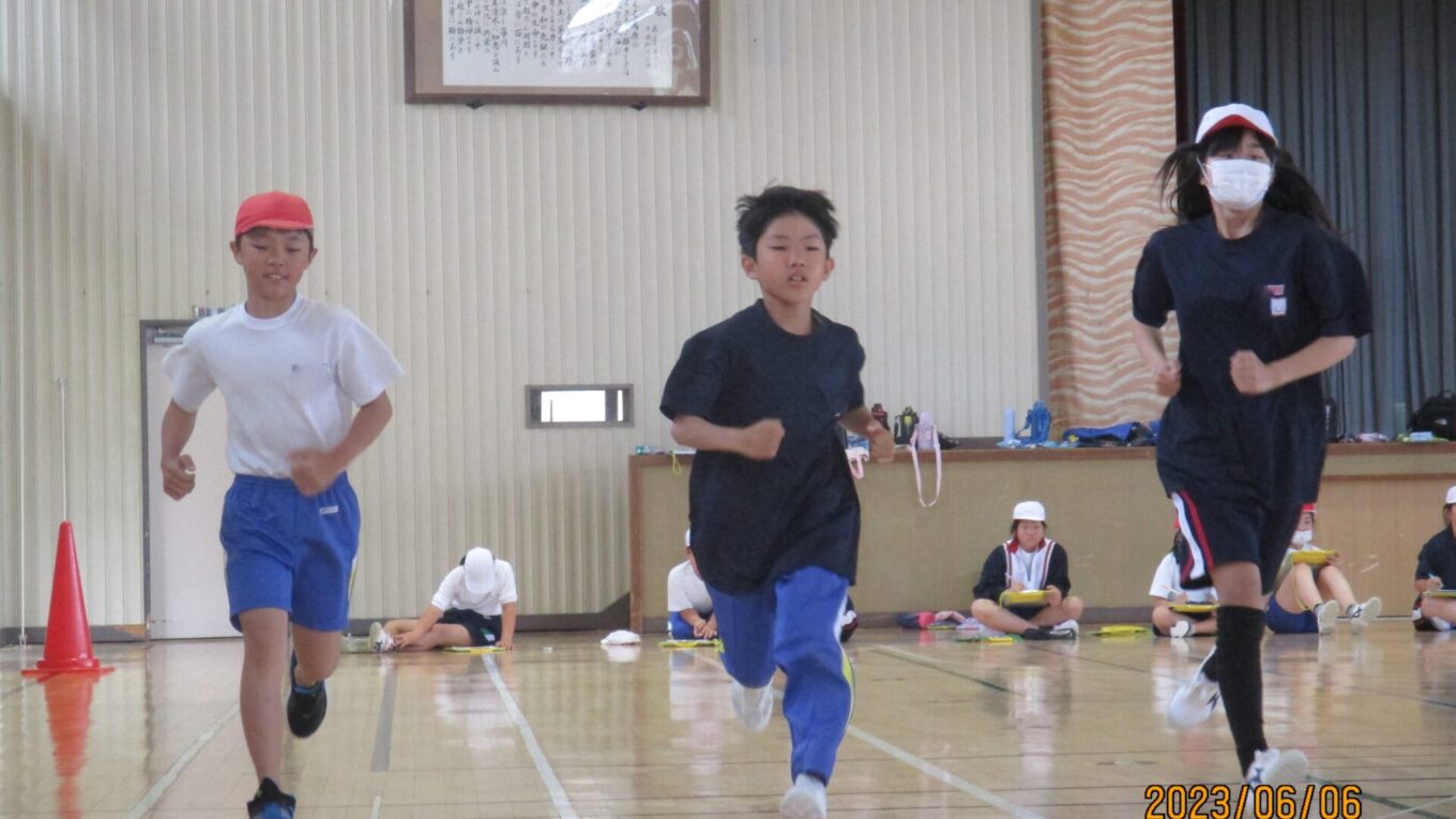 体力的にも精神的にもつらいシャトルランですが、終わってみると児童の顔には笑顔が浮かんでいました。