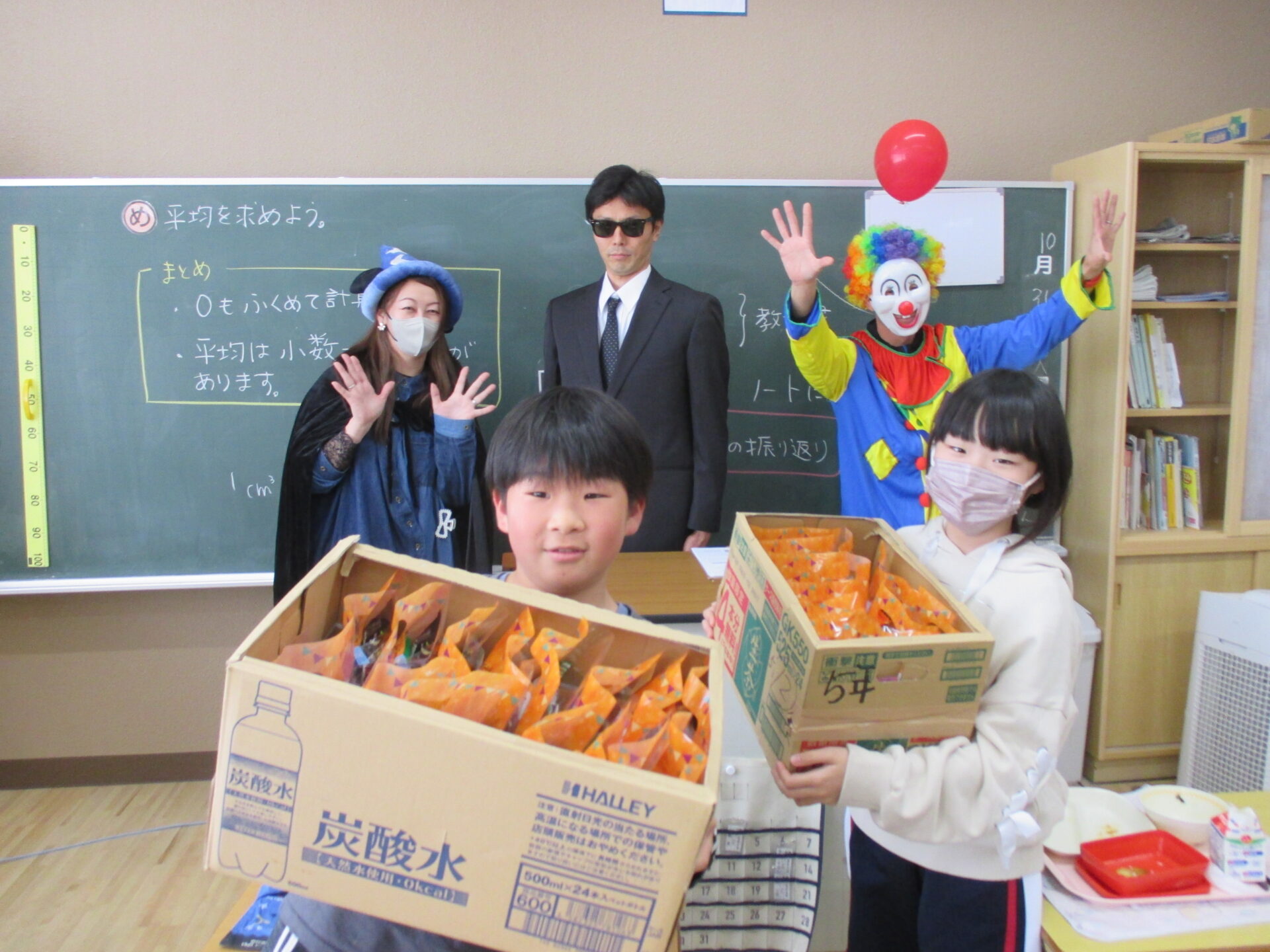 給食の時間には、愉快なお化け達から素敵なプレゼントをいただきました。