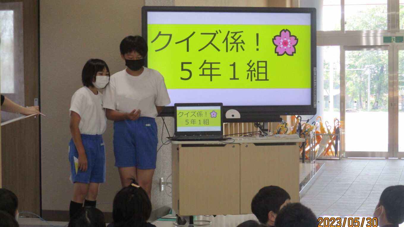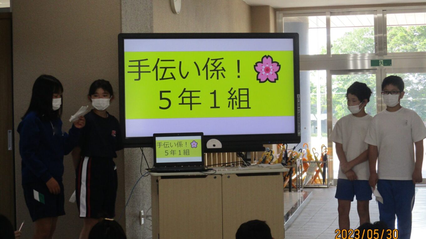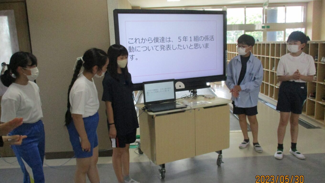 2023.05.30 5年生 ブロック集会 管理者学校 今日は、567年生によるブロック集会がありました。今回は初めてのブロック集会だったこともあり、各学年の紹介をしました。 5年生は話合いの結果、学級の特徴がよくでる係について発表しました。 学級をさらによくするために、一生懸命考え運営している係活動。これからもたくさん工夫して、みんなが楽しく生活できるようなクラスを作りましょう! #5年生