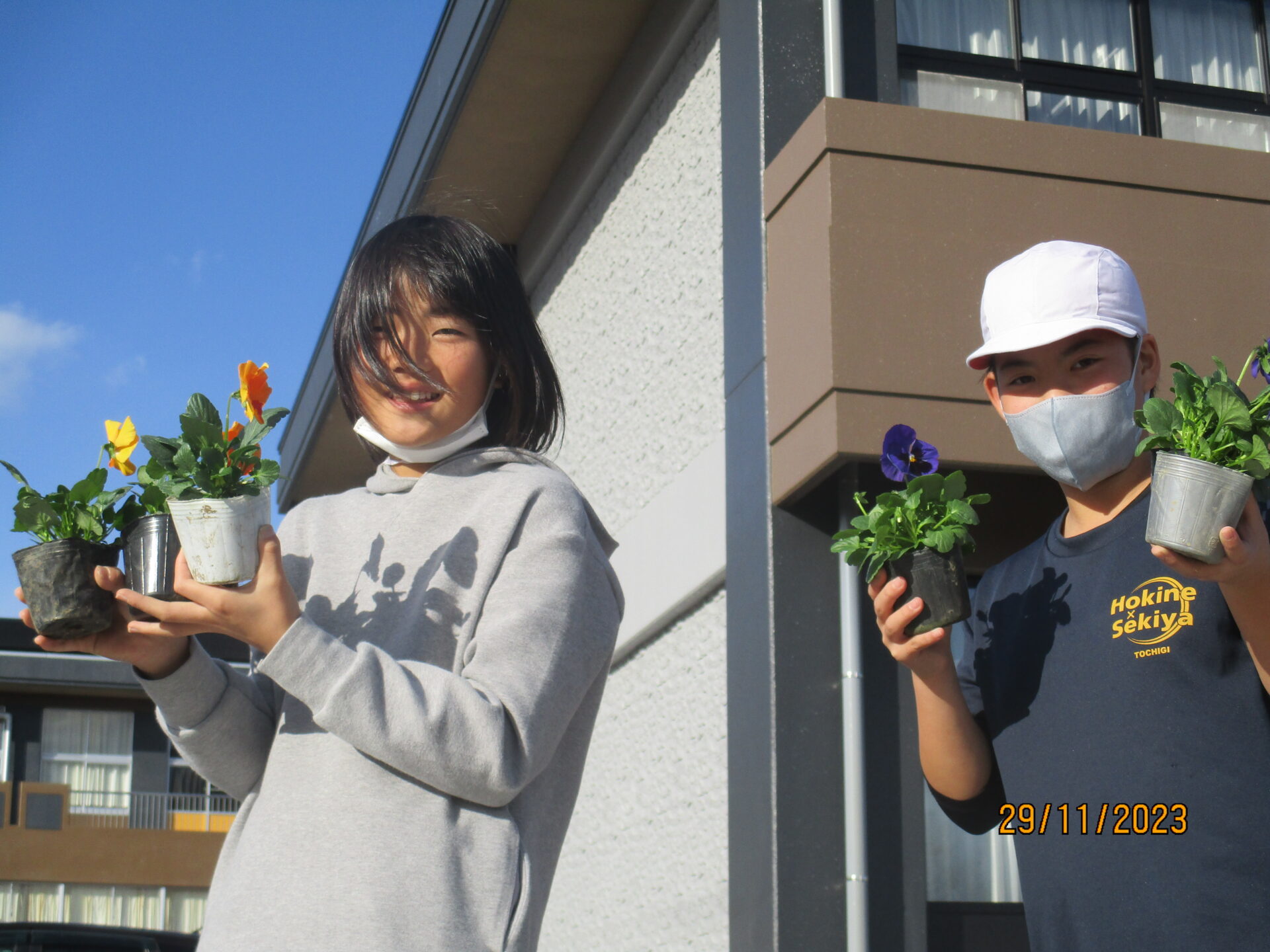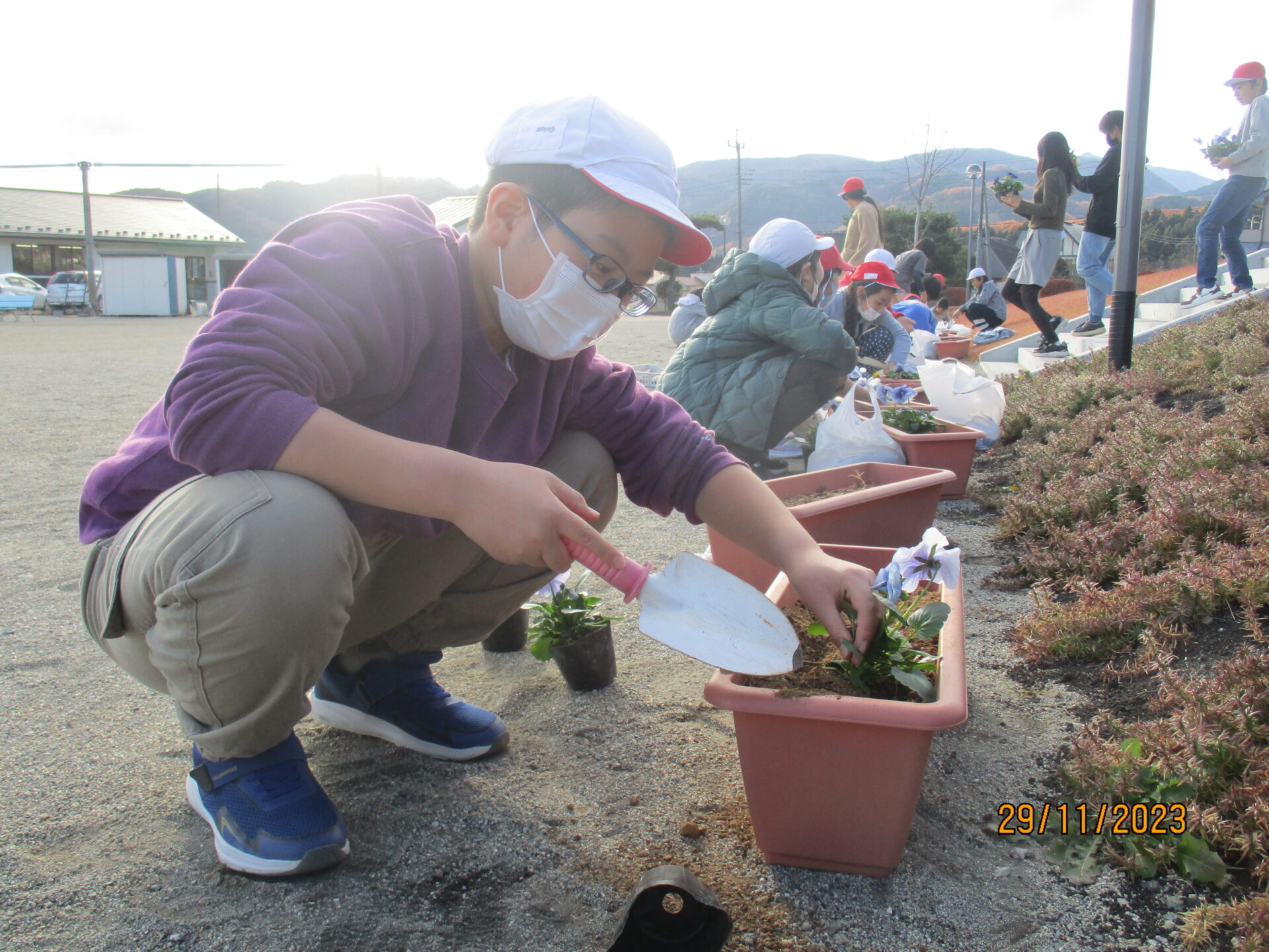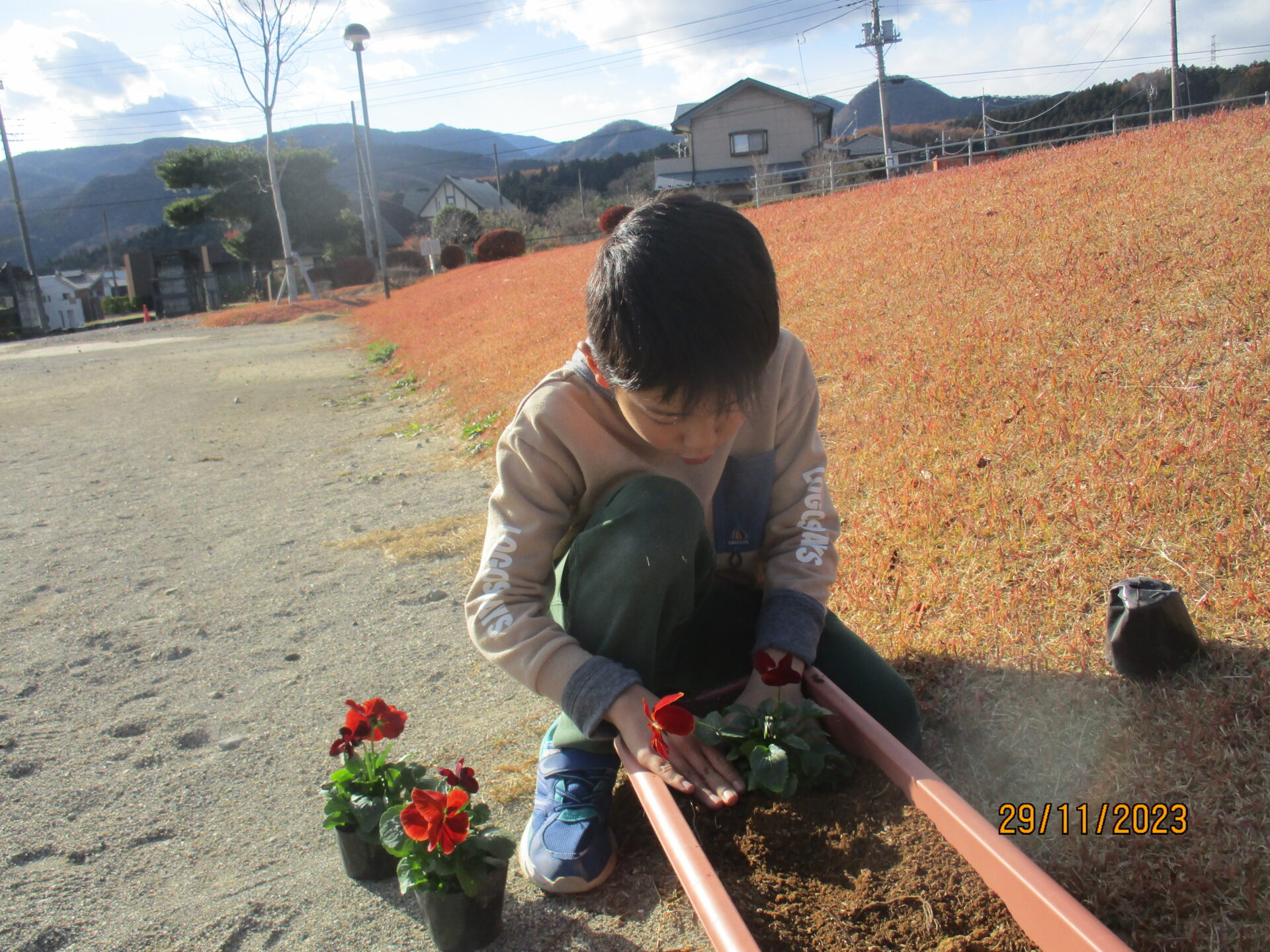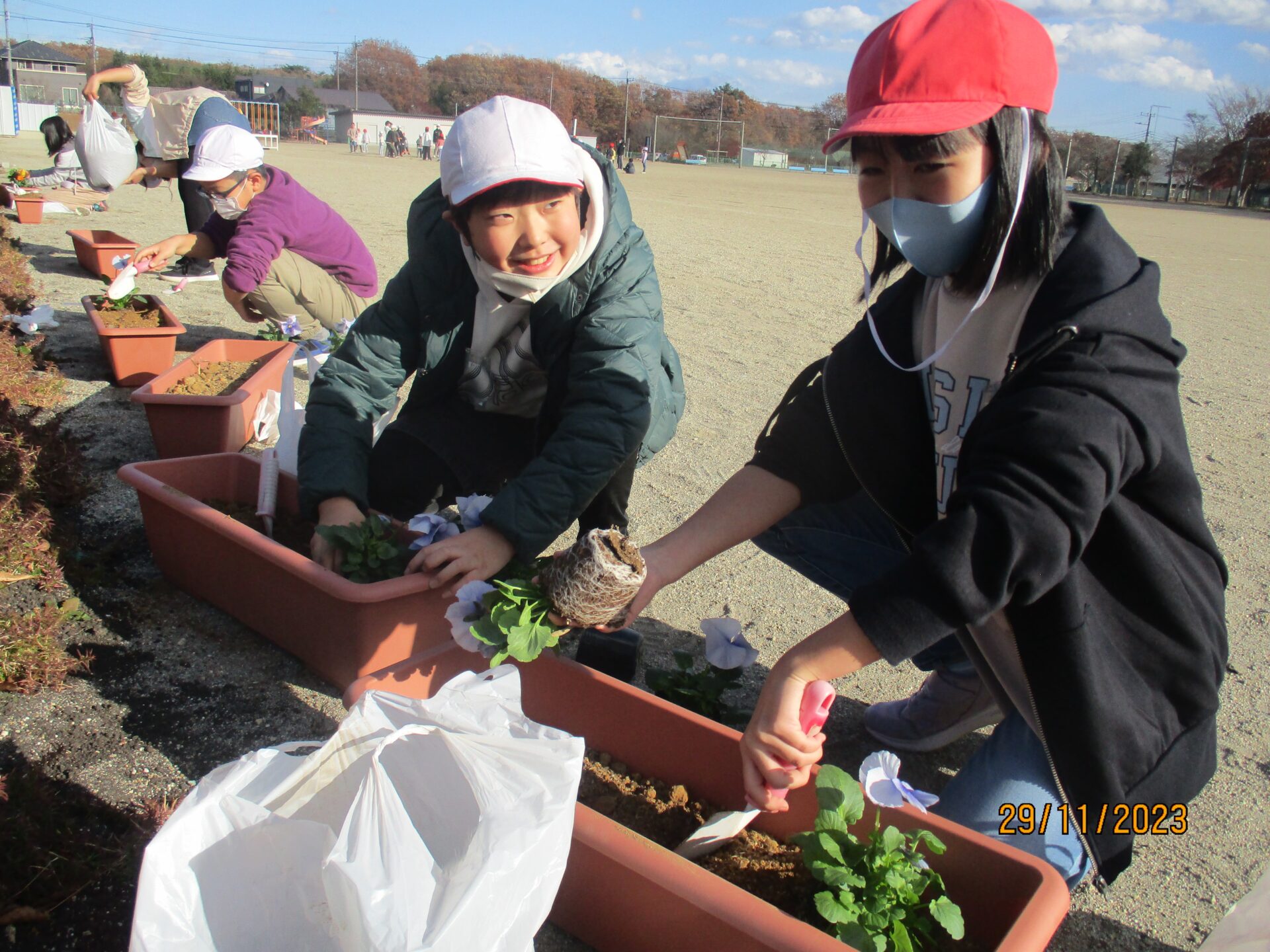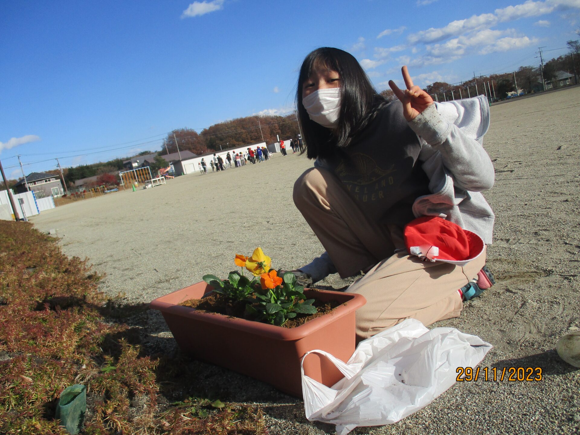 今日は、花いっぱい運動がありました。楽しそうにパンジーを植える5年生の姿を見ると、心が温かくなりました。