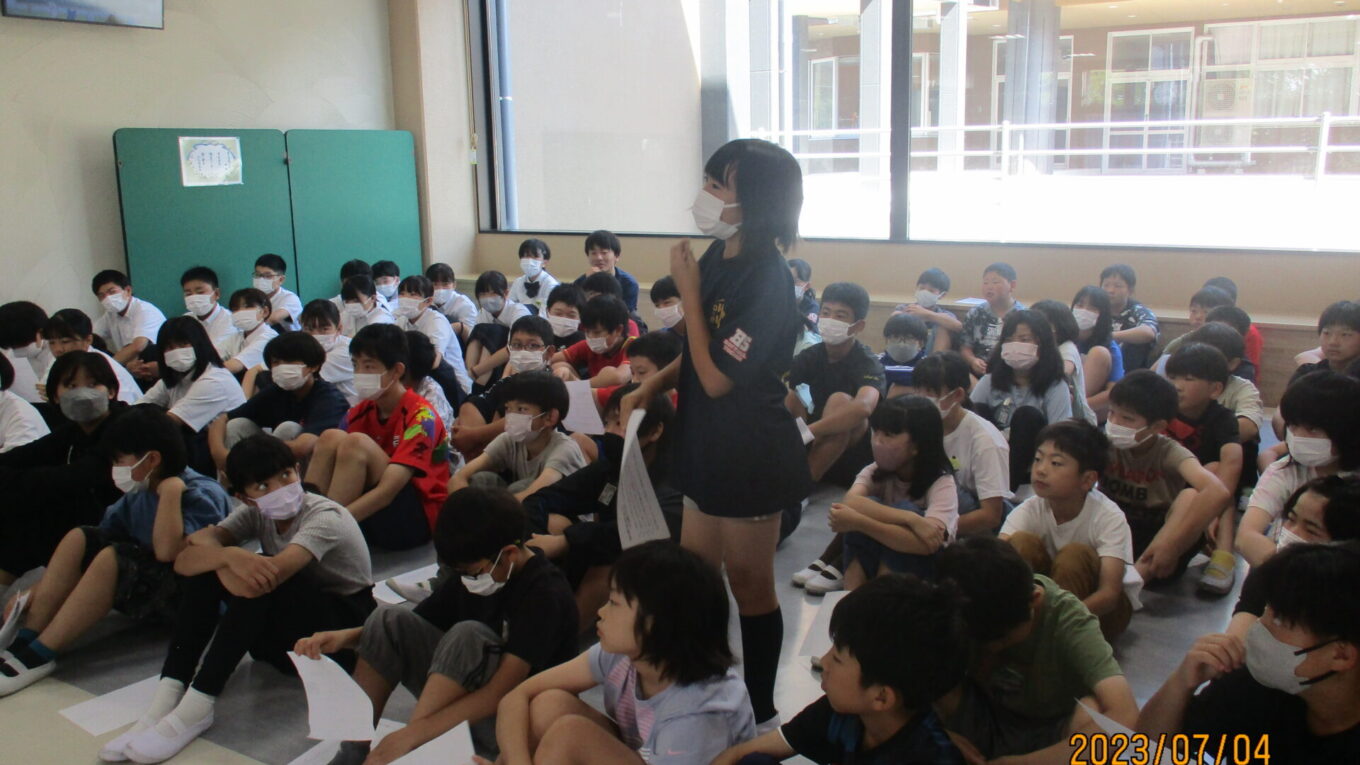 「未来とは」「幸せに生きるとは」いざ問いかけられるとなかなか答えられない難しい問いでしたが、子供たちは自分なりに考え、一生懸命発表していました。