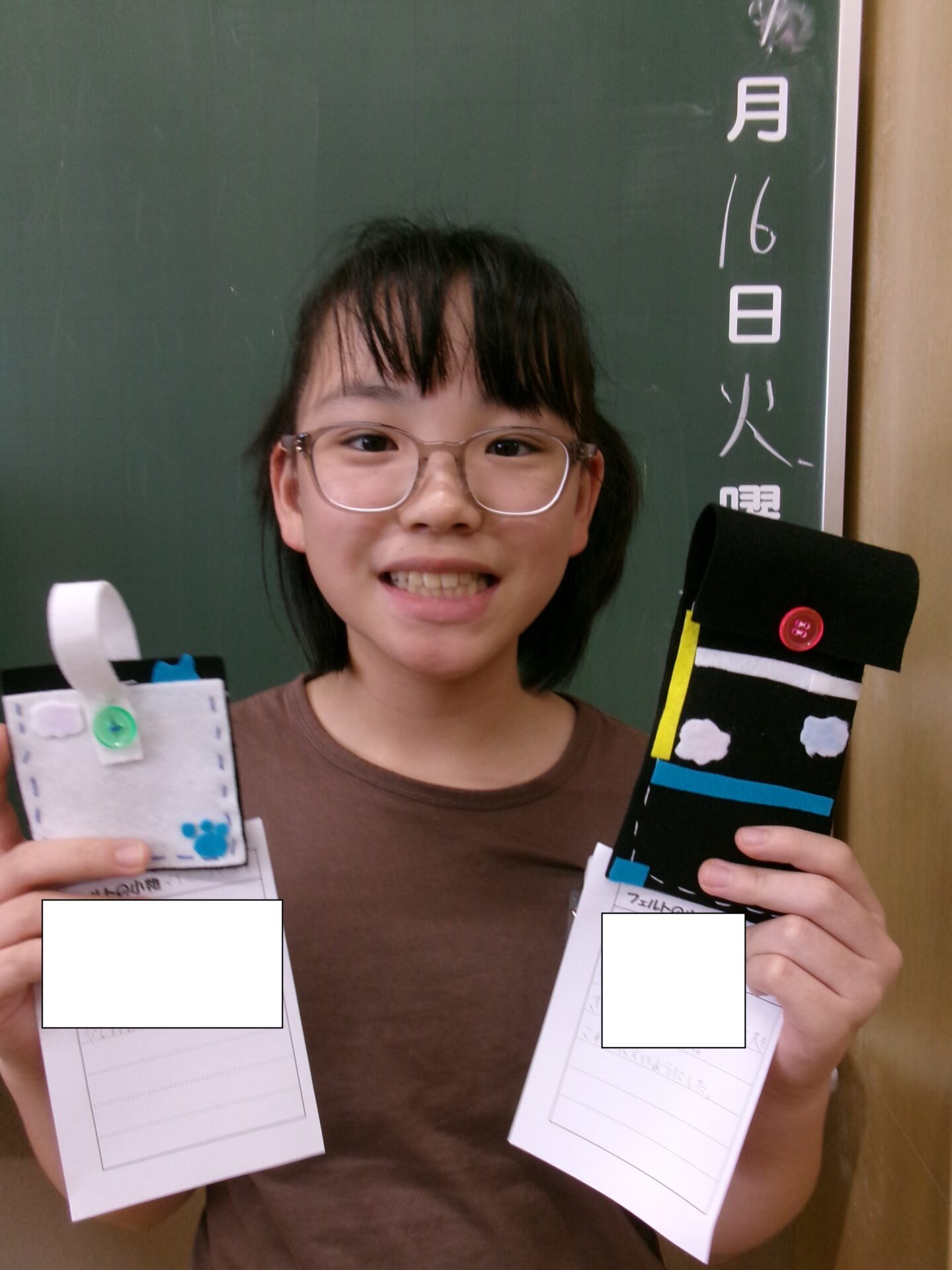 今週、ついに家庭科の小物バッグが完成しました。初めての手縫いでしたがみんながんばりました。御協力頂きました保護者の皆様ありがとうございました。
