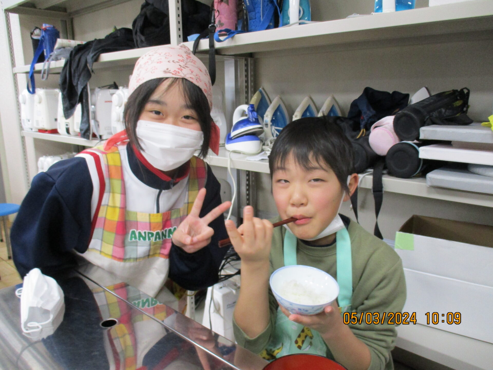 調理実習がありました。自分作ったお味噌汁と鍋で炊いたご飯は絶品でしたね。