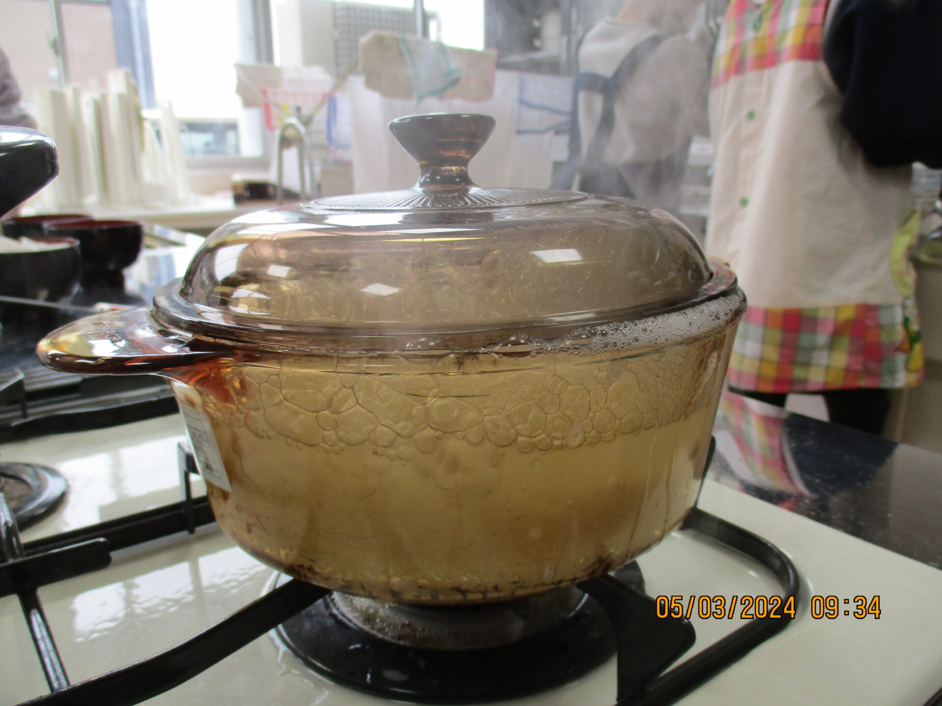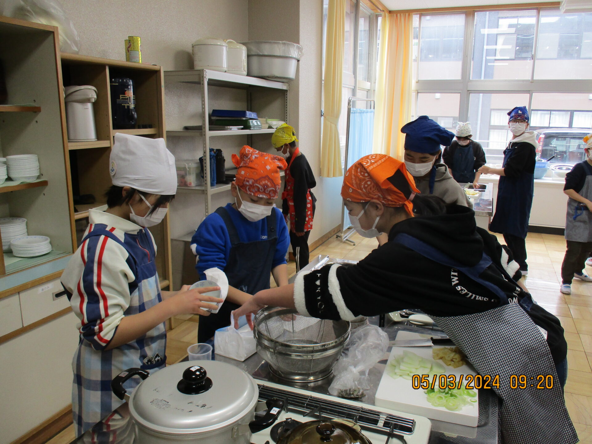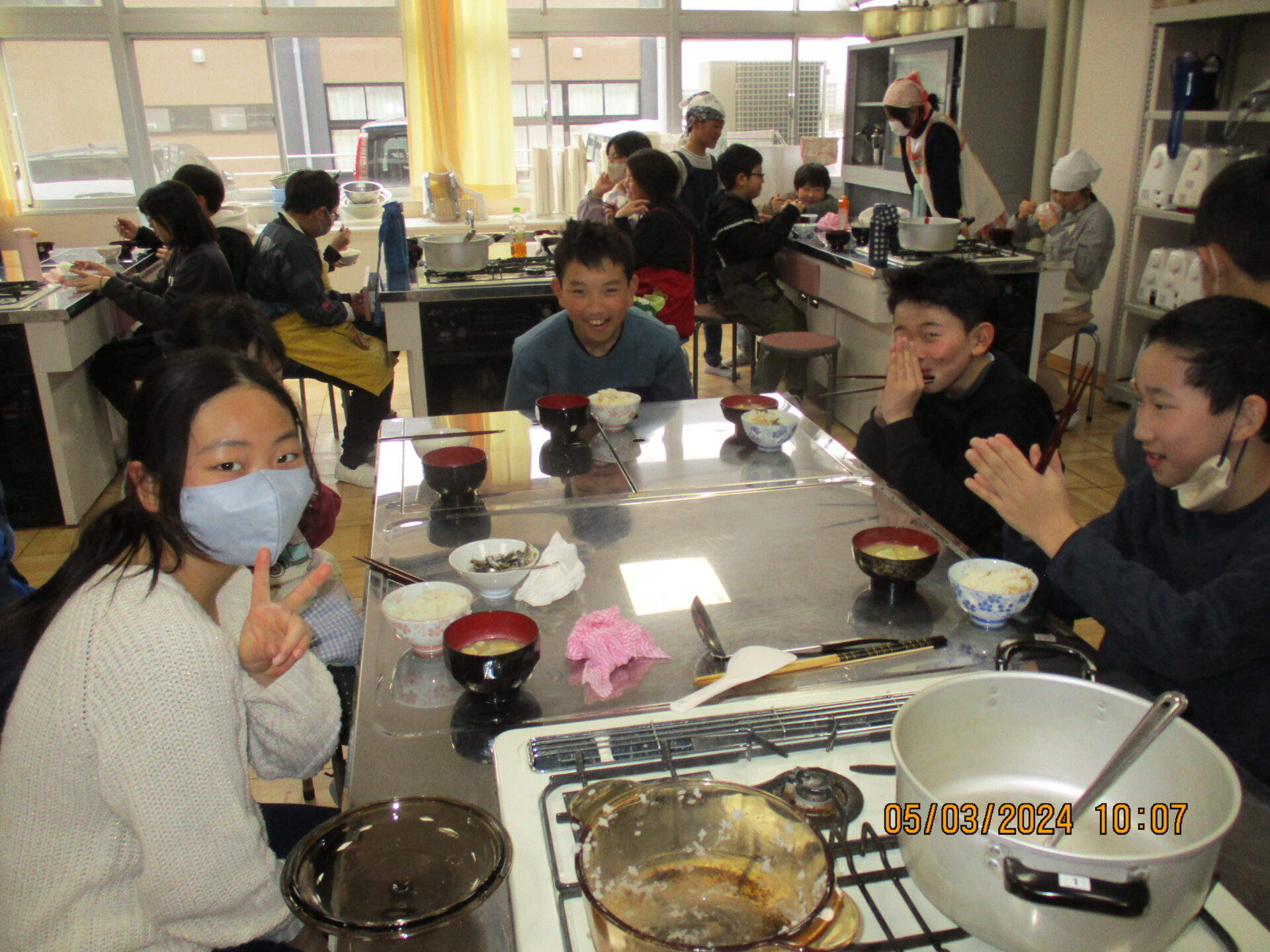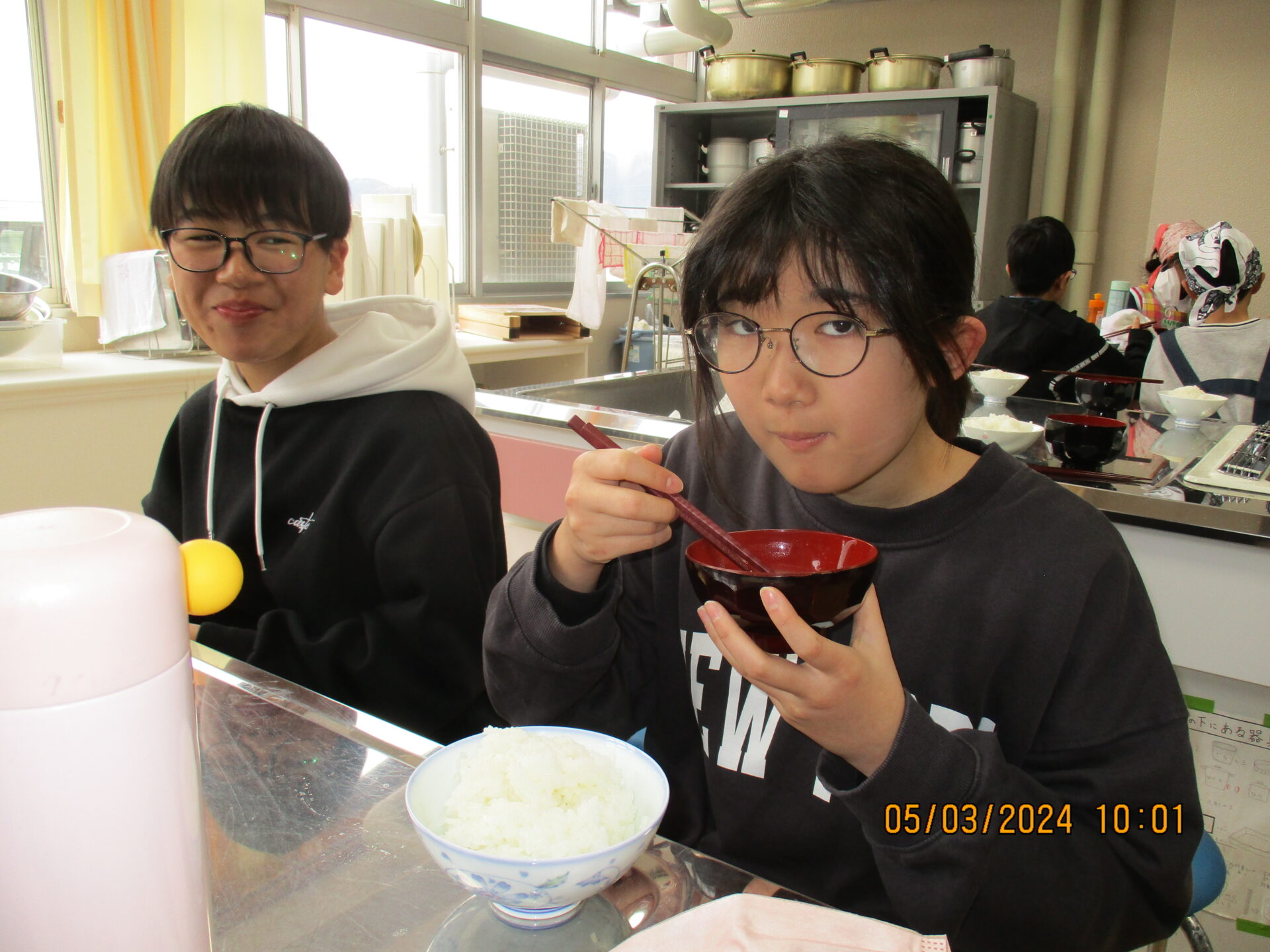 調理実習がありました。自分作ったお味噌汁と鍋で炊いたご飯は絶品でしたね。