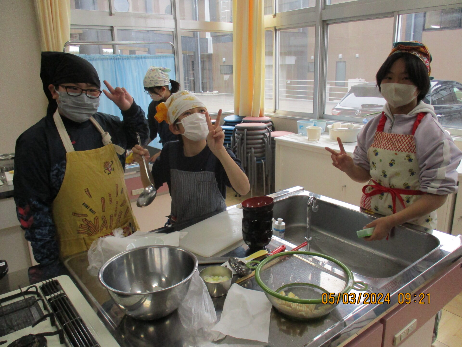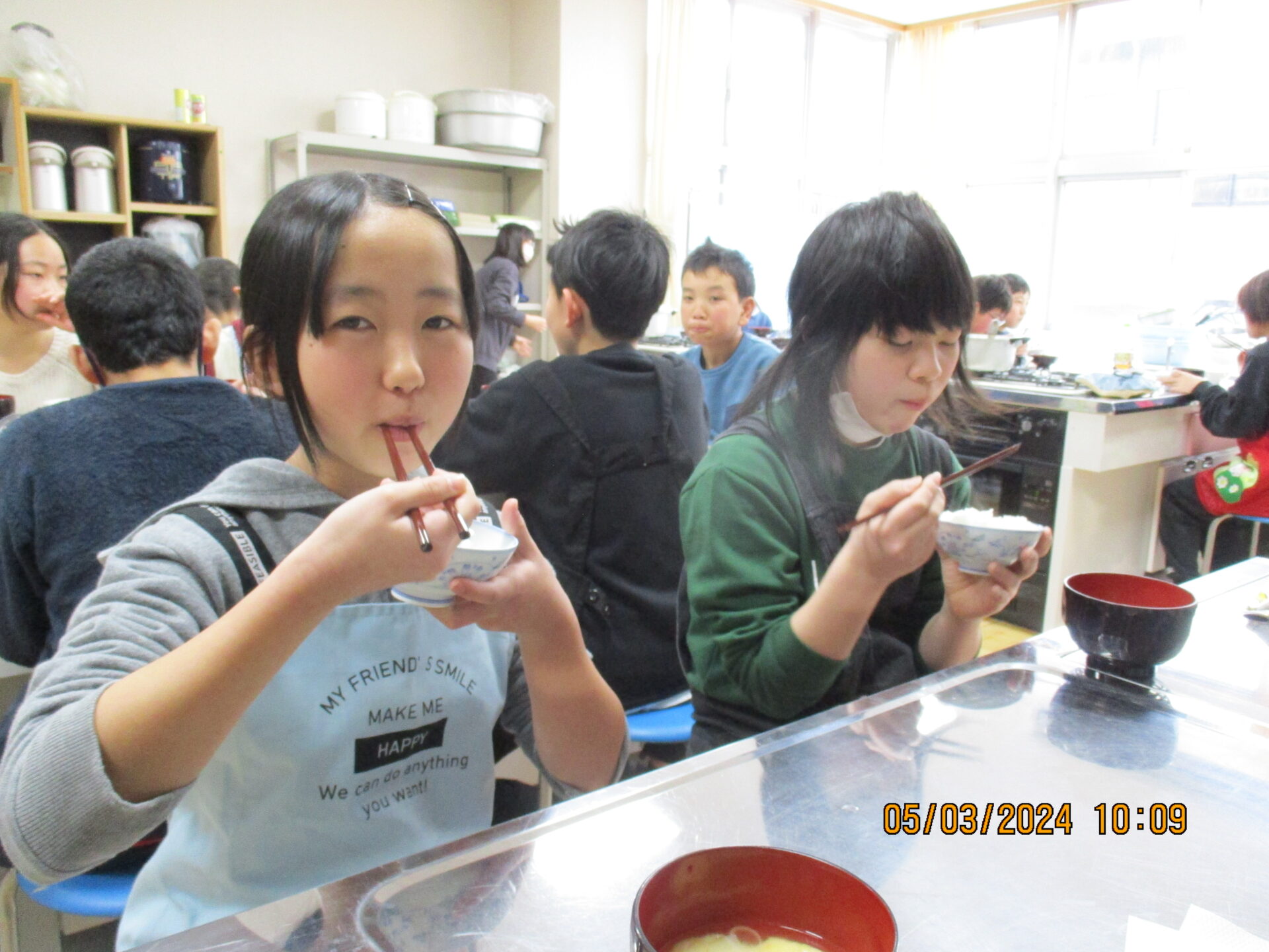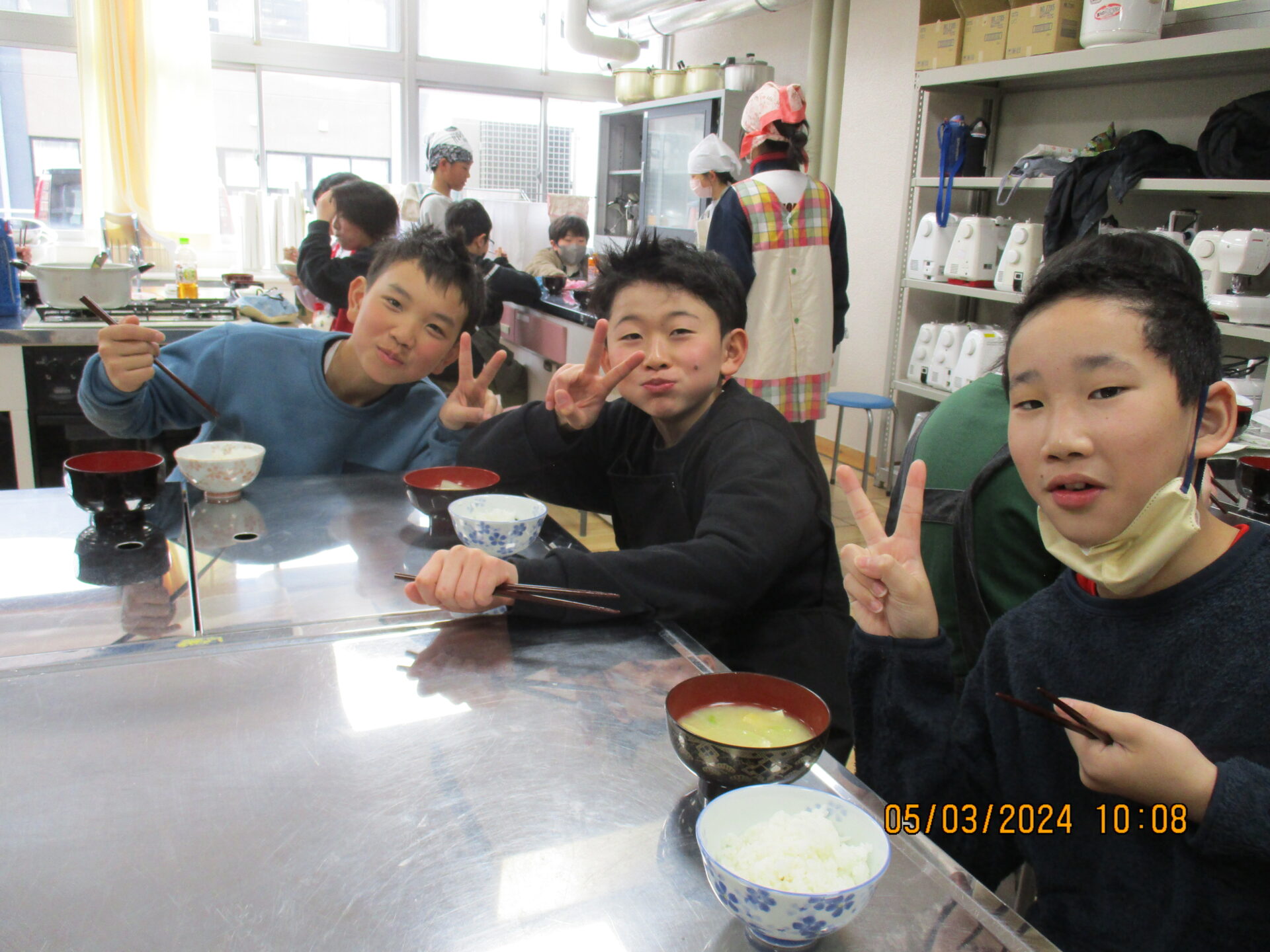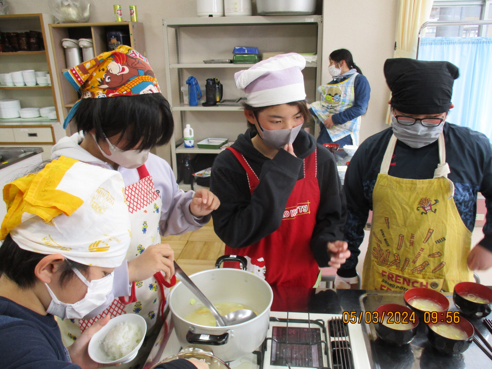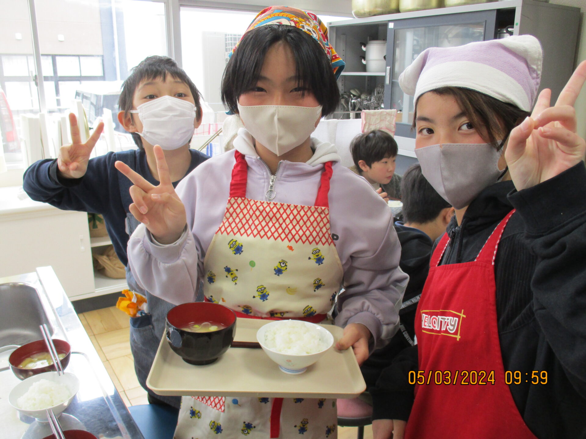 調理実習がありました。自分作ったお味噌汁と鍋で炊いたご飯は絶品でしたね。