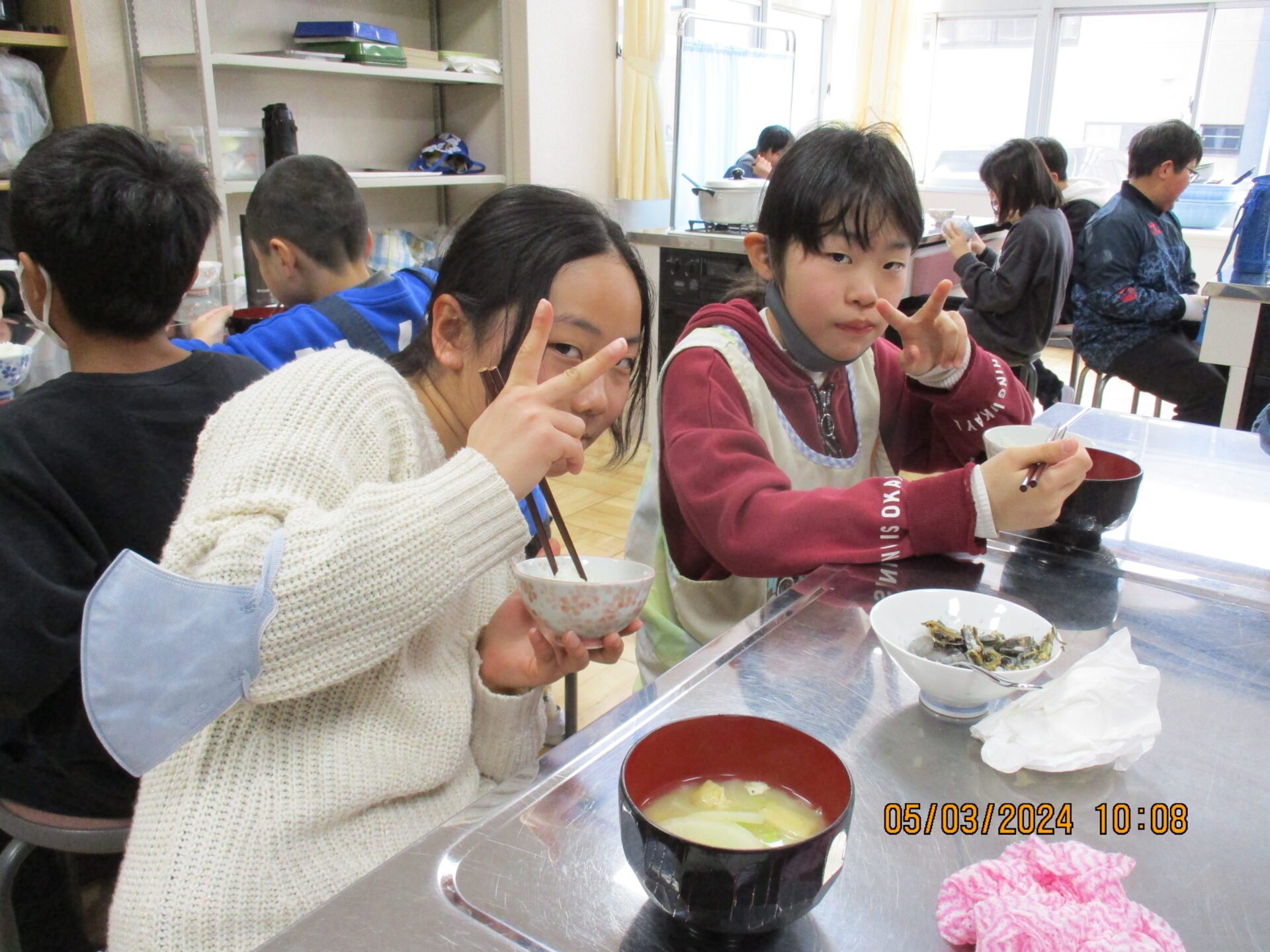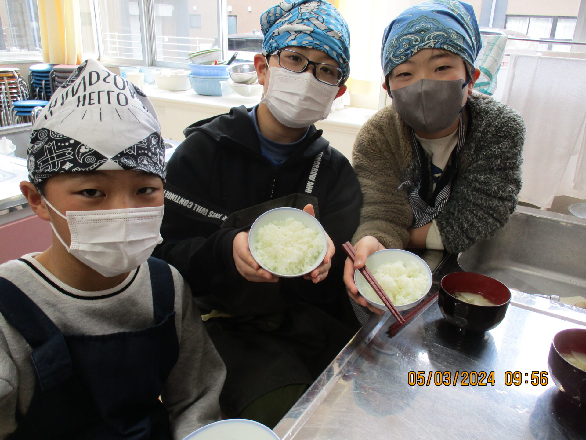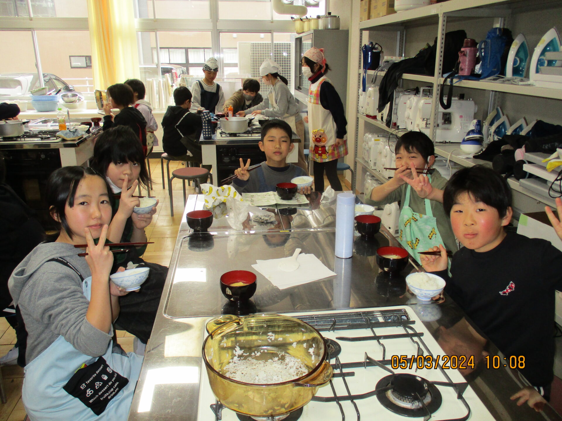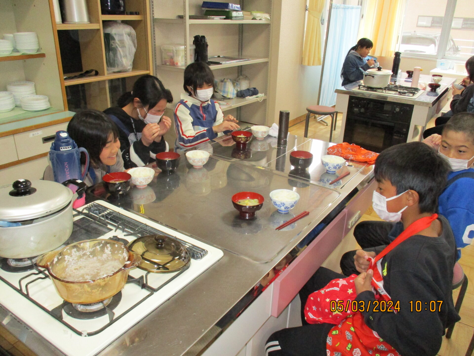 調理実習がありました。自分作ったお味噌汁と鍋で炊いたご飯は絶品でしたね。