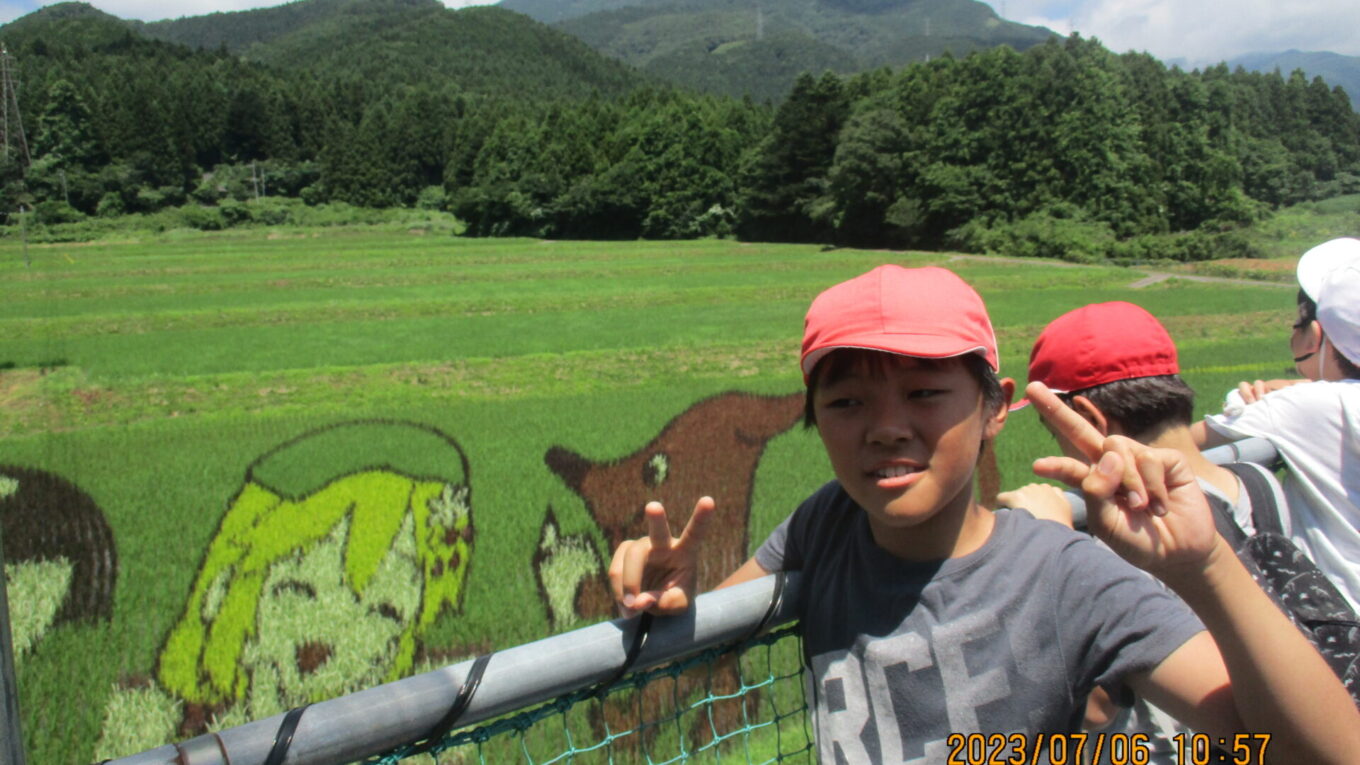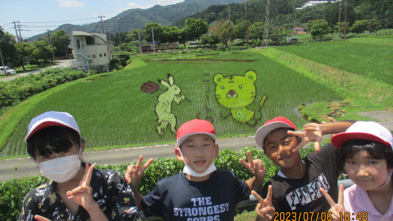 2023.07.06 5年生 生き物調査 管理者学校 今日は総合的な学習の時間校外学習で、生き物調査に行きました。 火曜日に引き続き、K.A先生ご指導の下、子供たちは楽しそうに生き物を探していました。 自然やそこにすむ生き物たちとふれあう子供たちは、とてもいきいきしていました。 豊かな自然は那須塩原市の大切な宝物です。子供たちも一人一人ができる活動で守っていって欲しいと思います。 生き物調査の後で、田んぼアートを見せていただきました。田んぼアートは初めて見ましたがとても迫力がありました。 皆さんも是非見に行ってみてください! #5年生