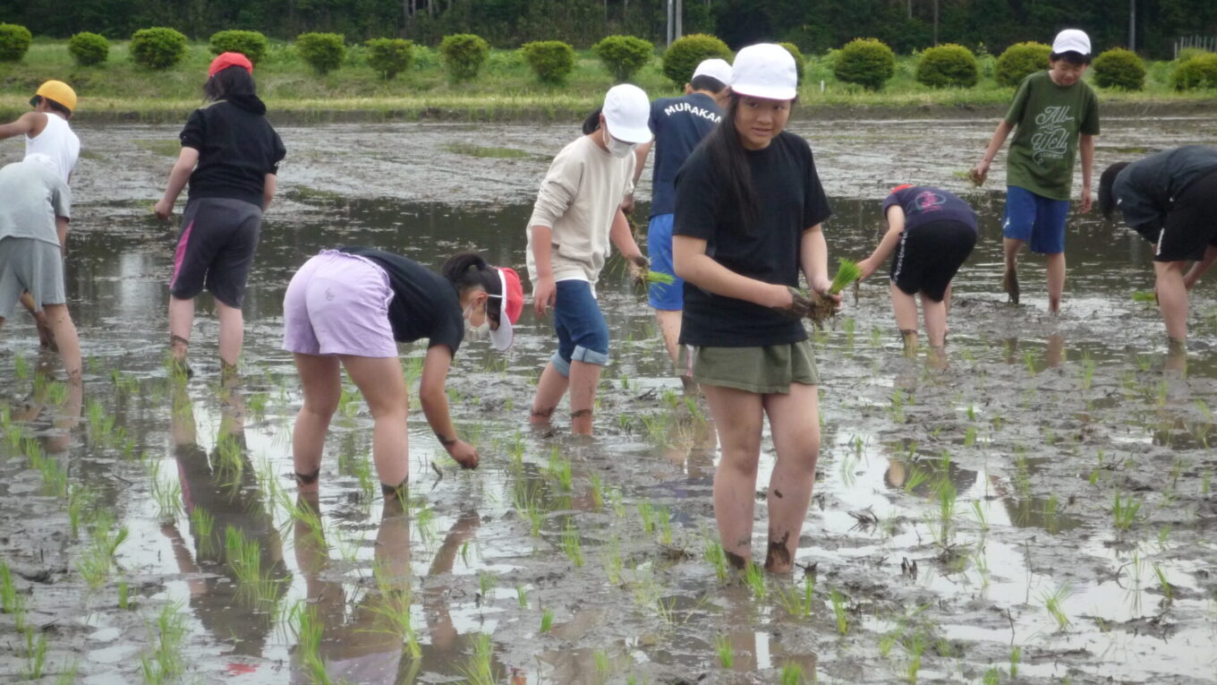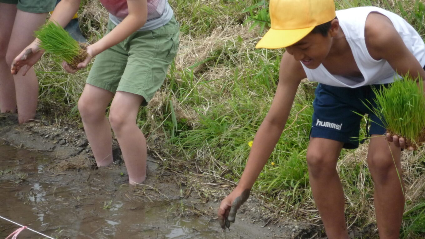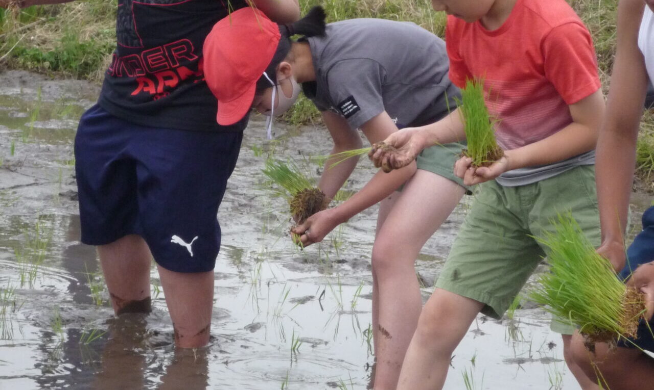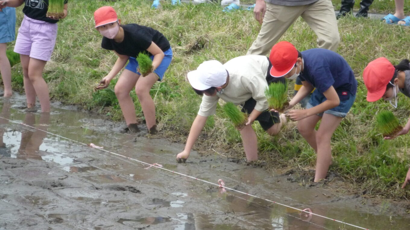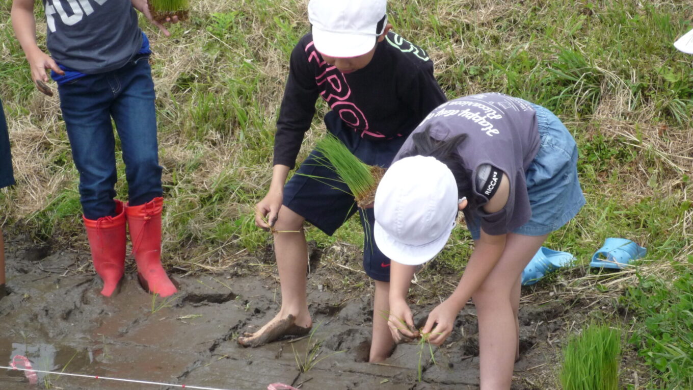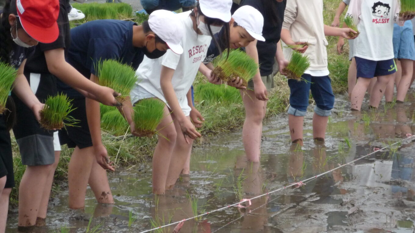 子供たちは、貴重な体験にとても楽しそうに田植えに取り組んでいました。