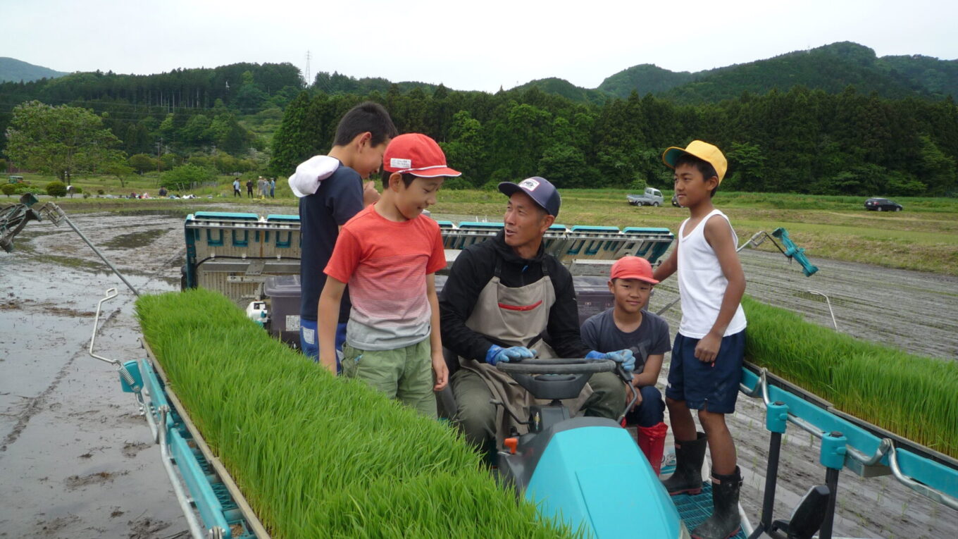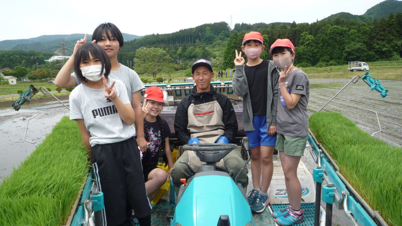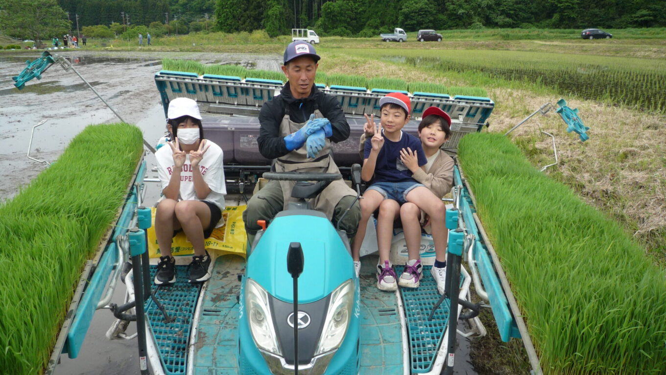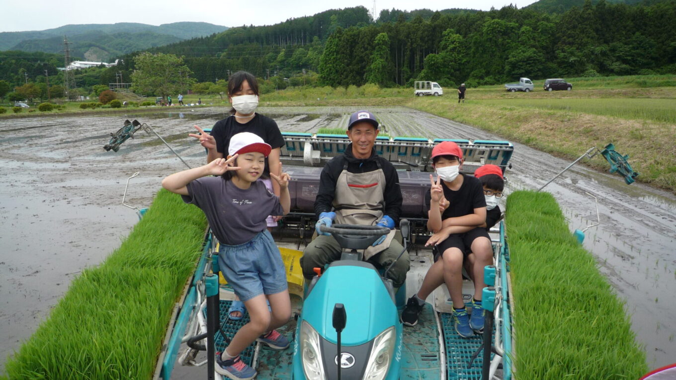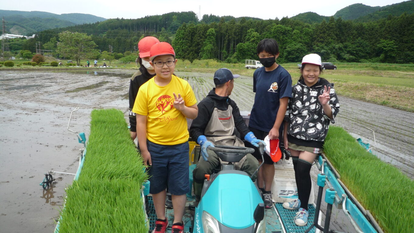 田植えの後は、総務のHさんに田植機に乗せていただきました。子供たちは初めて乗る田植機とまっすぐきれいに植わった稲に大喜びでした。みんなの植えた稲も味があって素敵ですよ!