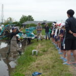 田植えの後は、総務のHさんに田植機に乗せていただきました。子供たちは初めて乗る田植機とまっすぐきれいに植わった稲に大喜びでした。みんなの植えた稲も味があって素敵ですよ!